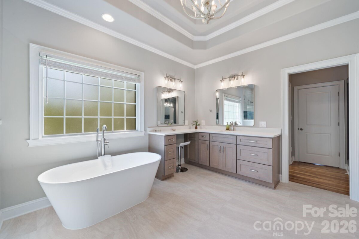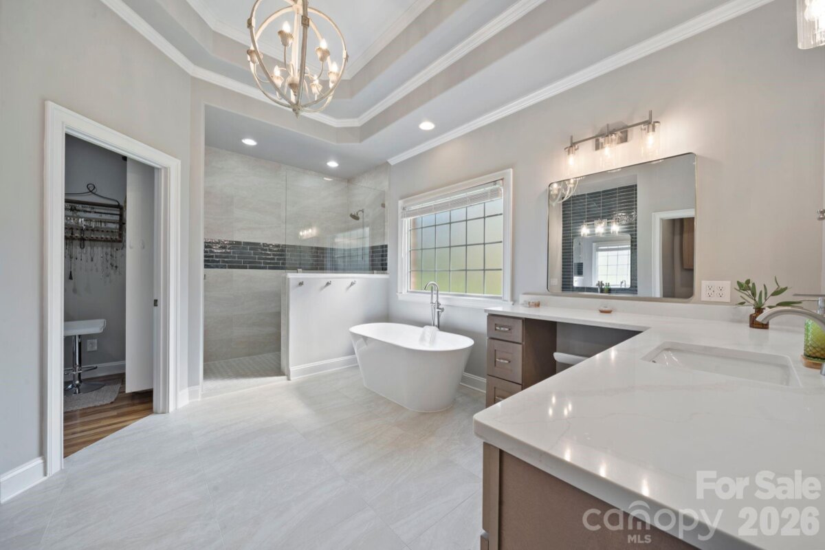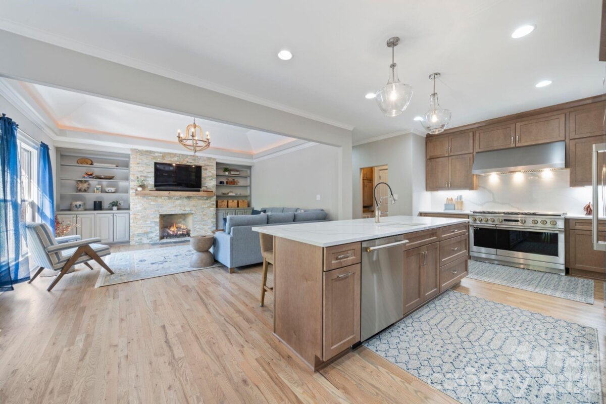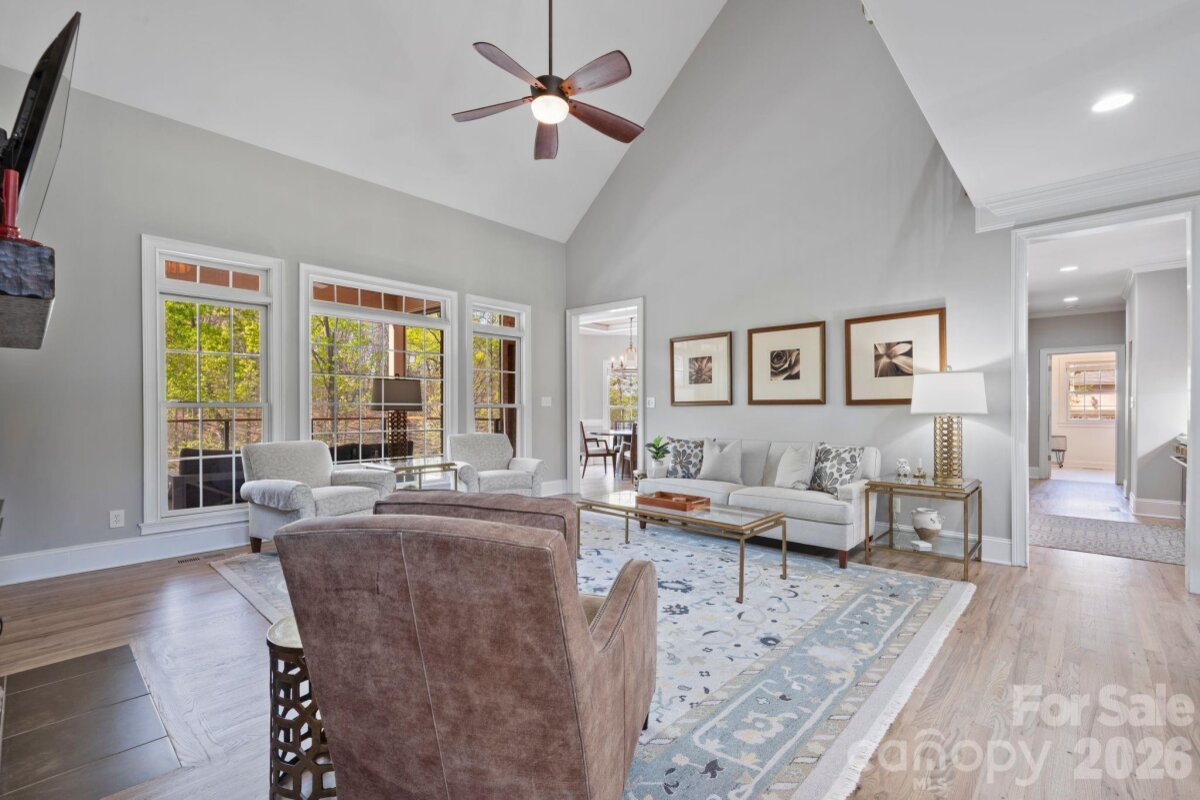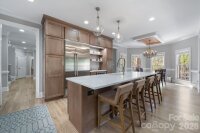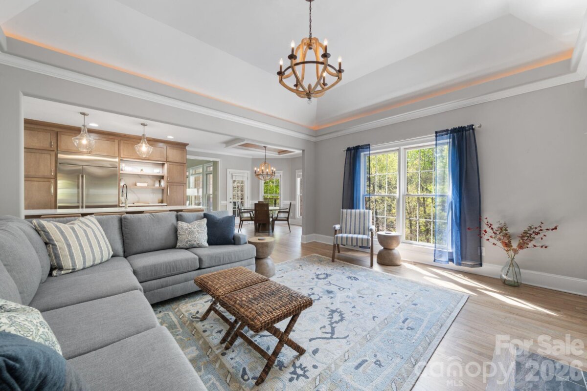 Welcome to this stunning full brick luxury home nestled on .85 acres and offering 4 bedrooms, 5.5 bathrooms, and 5,696 square feet of beautifully updated living space. Designed to balance luxury, privacy, and lifestyle, this move-in ready 2-story home with a fully finished walk-out basement combines timeless design with modern updates and exceptional indoor-outdoor living. A breathtaking two-story living room welcomes you with soaring ceilings, an open balcony overlook, and a floor-to-ceiling stone fireplace that anchors the space. Custom built-in shelving adds both function and architectural interest, while abundant natural light highlights the refined finishes. The open layout flows seamlessly into the 2025 updated kitchen, complete with new cabinetry, countertops, refinished natural wood floors, and new appliances. Pendant lighting adds warmth and style, while a statement Monogram gas range with double oven and range hood, elevates the space. Designed with function in mind, this kitchen offers ample storage, prep space, and a natural flow into adjacent living areas, making it the true heart of the home. A breakfast nook and adjacent family room adds additional space to gather around a second fireplace and lake views. Retreat to your main-level primary suite offering a true retreat with a tray ceiling, ambient lighting, a dedicated sitting area, and direct access to the covered balcony deck. The updated primary bathroom features a soaking tub, walk-in shower, and dual vanities, along with generous his and hers walk-in closets. Additional main level features, formal dining with buffet behind custom barn doors, updated laundry room, redone half bathroom, and elevator lift access to both the basement and second floor. Upstairs, all bedrooms feature new carpet, and each bedroom includes its own private en-suite bathroom, providing comfort and privacy for guests. Walk-in attic storage adds additional functionality. The finished walk-out basement is designed for entertaining, offering a large recreation room, media area, and a bar area with seating, sink, beverage fridge, and additional refrigerator. A full bathroom and office/flex room offer additional convenience, while two seating areas overlook your backyard retreat. Outdoor living is where this home truly shines. Enjoy a covered patio with wood-paneled ceiling and fans, a built-in BBQ with refrigerator, and a beautifully designed backyard featuring a heated pool with new liner, and expansive patio space. A custom stone wood-burning fireplace creates the perfect setting for year-round enjoyment. The fenced pool area enhances both privacy and functionality. Make your way to the lake down the concrete path to your newly refinished Trex dock with boat lift and enjoy year round Lake Norman water. Additional features include a dog run, 3-car garage with epoxy floors, two hot water heaters, an oversized well tank supporting the home’s filtration system, water softener, heated and non heated storage, and Generac generator. This Troutman location taps into the larger Lake Norman lifestyle, with boating, fishing, trails, public lake access, and the shops and dining of downtown Troutman are all part of the appeal for those seeking a private lakeside retreat.