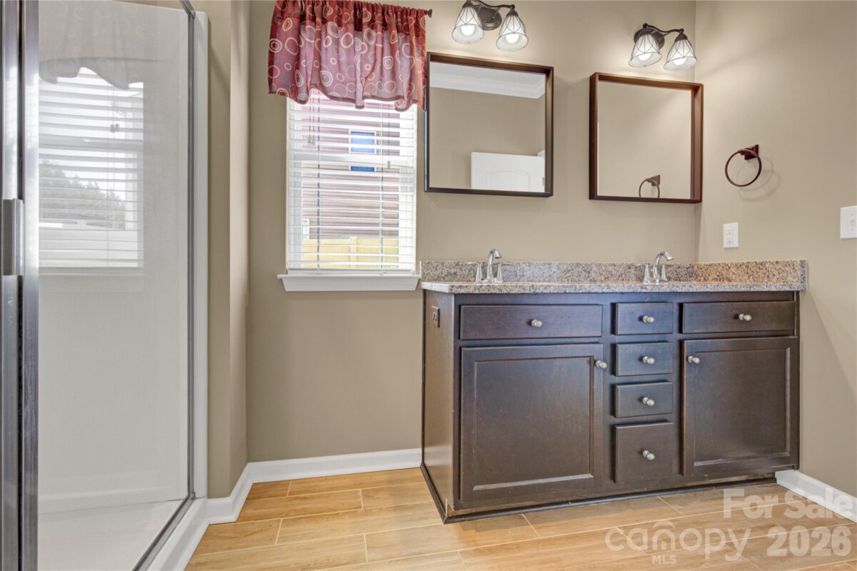 Welcome to this well maintained home in the South Iredell High School district, conveniently located close to everything Troutman has to offer! This beautiful property features an open floor plan with a spacious living room, wood burning fireplace, mohawk hardwood flooring, updated light fixtures, fresh paint and crown molding throughout the main level. The chef’s kitchen includes granite countertops, stainless steel appliances, a butlers pantry and a walk in pantry, along with a large island and a breakfast area. Primary suite on the main level with a walk in closet. Upstairs you’ll find two additional bedrooms, each with their own en-suite bathroom and walk in closet, plus a large bonus room perfect for a game room, office, or even a 4th bedroom. Additional highlights include ample closet space throughout, a built in drop zone & a main level laundry room. Step outside to the expanded back patio featuring a custom powered sunshade and a fully fenced backyard. Two car garage with a 4ft bump out and cargo storage. Located in the desirable Hidden Lakes Community, residents enjoy access to the clubhouse, community pool, playground and sidewalks. This home truly offers the perfect blend of comfort, convenience and community - ready for you to move in and make it your own! **Seller is offering a $3,000 seller concession with an acceptable offer**