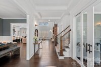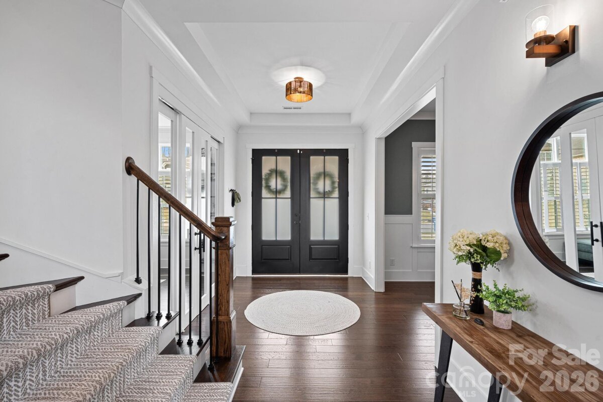 Welcome home to Beverly in Cornelius, an exclusive neighborhood nestled in lush landscapes and a scenic Greenway. Conveniently located near schools off Bailey Road, this stunning home features 4 bedrooms, a dedicated office, and a versatile flex room on the main floor that can serve as a guest bedroom. The two-story great room, with a floor-to-ceiling custom stone fireplace, is the heart of the home and opens to the fully equipped chef's kitchen. On the main floor, a large, bright office with custom doors and an accent wall is complemented by a bed/flex room that could serve as a second office, play area, or guest bedroom. The primary suite, laundry room, and 3 additional bedrooms are on the upper level. Plantation shutters throughout the home, a sound system, a security system, new seamless gutters with guards, a wall-mounted storage system in the garage, and more. Space for all, with 3.5 baths and a spacious, oversized 3-car garage, this residence also includes a drop zone and a walk-in pantry, providing ample storage and functionality. The outdoor living space is ideal for entertaining, featuring a screened porch, patio, and ample space for play or a future pool. Enjoy breathtaking views of the Carolina sky and forest, enhancing your sense of tranquility. Situated on a dead-end street, this home ensures added privacy in a serene setting. Experience the perfect blend of luxury and convenience at Doves Crest, this modern farmhouse in Beverly.