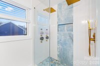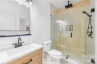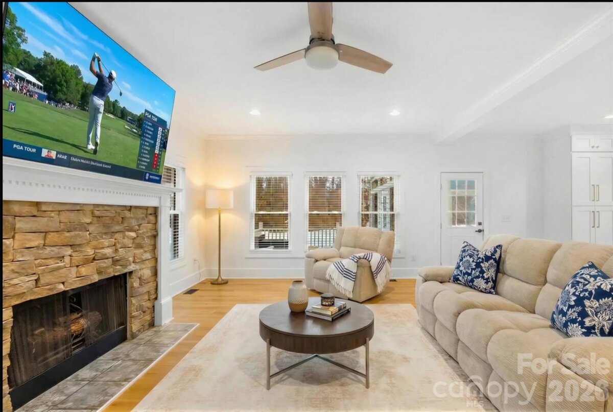 Completely Reimagined. Meticulously Crafted. The result is something you don't find often in your search for a home in sought-after Davidson, NC. Over the past year, the owners created a stunning, top-to-bottom transformation. Davidson doesn't do ordinary, and neither does this home that catches your eye just driving down the road. The white painted brick exterior, bold black trim, arched windows, and manicured landscaping set a tone that carries through every room. Wide-plank floors run through the main level. The great room features stone fireplace, opening into the FOUR SEASONS SUNROOM with vaulted bead board ceiling, floor-to-ceiling black-framed windows on three sides, and a direct view of the SALT WATER POOL and fenced backyard. It's the kind of room you'll use every single day. The kitchen was fully rebuilt. Custom two-tone cabinetry, a wood range hood over a FORNO professional gas range, QUARTZ WATERFALL ISLAND with built-in microwave drawer, POT FILLER, farmhouse sink, gold hardware, and stone tile backsplash. The dining room flows naturally off the kitchen with the dramatic, sleek staircase with oak treads, white risers, black iron balusters as its backdrop. A dedicated office is located on the main level for added convenience. A private MAIN LEVEL GUEST BEDROOM and fully renovated full bath make this floor plan work beautifully for multigenerational living or long-term guests. The guest bath features a wood vanity, black matte accents, and a frameless glass shower with floor-to-ceiling textured tile and ceiling-mounted rain head. The primary suite features a tray ceiling, custom walk-in closet system with automated light system as you enter and walk around, and a bathroom that stops people mid-sentence. A full-length fluted wood double vanity with white quartz, dual sinks, and brushed gold fixtures anchors one wall. On the other, a frameless glass enclosure holds both a FREE STANDING SOAKING TUB and a walk-in rain shower wrapped in floor-to-ceiling DESIGNER TILE. A glass block wall floods the space with natural light while keeping it completely private. Three additional bedrooms; all well-sized with ample closet space. Upper level full bath that features a wood vanity, gold accents, and a FRAMELESS GLASS RAIN SHOWER with designer tile. A bonus room adds flexible space for a media room, playroom, or home office. Upper level laundry completes the floor plan. New 30x16 SALTWATER POOL, stone paver surround, patio lighting, privacy fence, and wooded backdrop. The finished two-car garage with epoxy floors and honeycomb LED lighting currently doubles as a HOME GYM. New roof, HVAC, gutters, windows, plumbing, electrical upgrades, solar backup generator, irrigation, drainage, and full security system. This home won't ask anything of its next owner for years. NO HOA. TOP RATED SCHOOLS. Under 10 minutes to downtown Davidson, Cornelius and Huntersville. Easy access to I-77, I-85, Birkdale Village, Lake Norman. The renovation you've been waiting for someone else to finish. They nailed it.