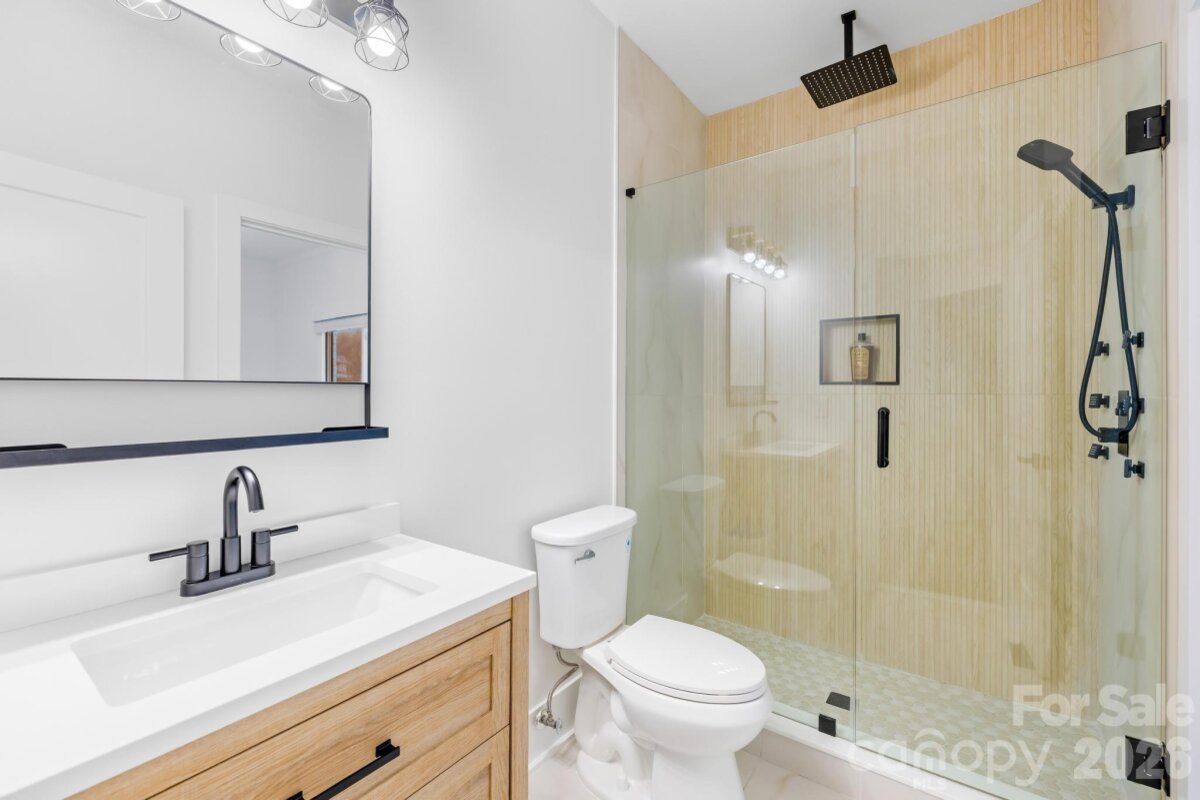 Completely Reimagined. Meticulously Crafted. This is what happens when someone pours over $400K and a full year into transforming a home from top to bottom in sought-after Davidson, NC. Step into the four-season sunroom first, because that's where this home makes its case. Vaulted bead board ceiling, floor-to-ceiling black-framed windows on three sides, and a direct view of the brand new 30x16 saltwater pool and fully fenced backyard. It's the kind of room you'll use every single day and the reason most people stop comparing other homes after walking through this one. The kitchen was fully rebuilt and it shows. Custom two-tone cabinetry, a golden wood range hood over a Forno professional gas range, quartz waterfall island with built-in microwave drawer, pot filler, farmhouse sink, brushed gold hardware, and stone tile backsplash. This isn't a renovation. This is a reinvention. The great room features a stone fireplace and flows naturally into the sunroom, creating a main level that lives wide open. The dining room sits just off the kitchen with the home's dramatic staircase as its backdrop: oak treads, white risers, and sleek black iron balusters. A dedicated main level office provides workspace without compromise. The main level also features a private guest bedroom and fully renovated full bath with wood vanity, matte black accents, frameless glass shower, floor-to-ceiling textured tile, and ceiling-mounted rain head. This floor plan offers genuine single-level living flexibility while the upper level primary suite serves as a private retreat above it all. And that primary suite delivers. Tray ceiling, custom walk-in closet with automated lighting, and a bathroom that stops people mid-sentence. A full-length fluted wood double vanity with white quartz and brushed gold fixtures anchors one wall. Across from it, a frameless glass enclosure holds both a freestanding soaking tub and a walk-in rain shower wrapped in floor-to-ceiling designer tile. A glass block wall floods the space with natural light while keeping it completely private. Three additional bedrooms upstairs, all well-sized with generous closet space. The upper level full bath features a wood vanity, gold accents, and frameless glass rain shower with designer tile. A spacious bonus room adds flexible space for media, guests, or a home office. Upper level laundry completes the layout. Outside: the new saltwater pool with stone paver surround, patio lighting, privacy fence, and mature tree backdrop. The finished two-car garage with epoxy floors and honeycomb LED ceiling currently doubles as a home gym but could be anything you want it to be. New roof, HVAC, gutters, windows, plumbing, electrical upgrades, solar backup generator, irrigation, drainage, and full security system. This home won't ask anything of its next owner for years. No HOA. Top-rated schools. Under 10 minutes to downtown Davidson, Cornelius, Huntersville, Birkdale Village, and Lake Norman. Easy access to I-77 and I-85. The renovation you've been waiting for someone else to finish. They nailed it.