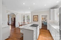 Nestled on a picturesque corner lot in the Mayfair neighborhood (commonly referred to as Myers Park), this classic 1940 home offers timeless architecture, gracious living spaces, and wonderful indoor-outdoor flow. The welcoming foyer opens to elegant formal and informal rooms highlighted by beautiful moldings and arched entryways. The kitchen features marble countertops and backsplash, under cabinet lighting, a Wolf 5-burner cooktop and Dacor double ovens and warming drawer. The inviting family room just off the kitchen opens to the backyard and the stunning stone patio. A charming den provides a quiet retreat, while the sunlit enclosed side porch with wet bar offers a wonderful place for relaxing or entertaining. The upper level features a spacious primary suite with two large walk-in closets and a generous bath, offering excellent potential for future customization. The secondary bedrooms are well-sized. The rec room provides excellent versatile space, ideal for a playroom or gym. The storage room, located in the basement, provides additional flexible space and could be used for wine storage, wrapping room or general storage space. Enjoy outdoor living and entertaining on the beautiful stone patio with fireplace equipped with a gas line starter. This special home offers classic character and charm in a most beloved neighborhood.