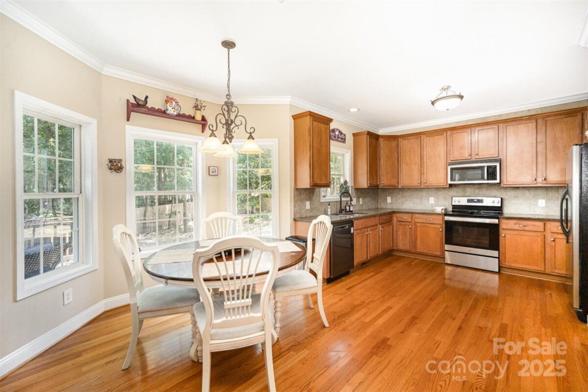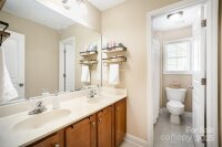 Welcome to this inviting Sutton Place home, tucked away on a cul-de-sac in the top-rated Fort Mill School District. Step into a bright two-story foyer that opens to a formal dining room and a spacious great room with soaring ceilings and a cozy gas fireplace. The kitchen features granite counters, stainless appliances (newer stove and dishwasher), and all major appliances—including the fridge, washer, and dryer—stay. The main-level primary suite offers a peaceful retreat, while upstairs you’ll find three additional bedrooms and a full bath with dual vanities. Enjoy the outdoors on your large deck with a gas line ready for grilling! Deck overlooks a fenced backyard with a wooded buffer. Other highlights include updated tile in the laundry and upstairs bath, newer main-level HVAC, and a welcoming copper-roofed front porch. Perfect location - close to Baxter Village, I-77, Catawba Park, and Lake Wylie boat ramps.
