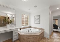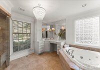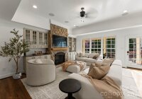 Elegant home with lovely curb appeal situated on one of Charlotte’s most desired streets, in the heart of Myers Park! This home showcases exceptional craftsmanship and timeless style throughout. This beautiful and welcoming home features newly refinished hardwood floors across the main level and an open, light-filled floor plan designed for both everyday living and entertaining. The chef’s kitchen is beautifully appointed with Thermador appliances, including a gas range, newly refinished and painted cabinetry, updated hardware, granite countertops, and a large island with a butcher block top. The kitchen flows seamlessly into the spacious great room, highlighted by a stunning stone fireplace, custom built-ins, and French doors that open to an expansive covered porch spanning the width of the home. The porch, complete with Trex decking, overlooks an entertainer’s dream backyard featuring an outdoor kitchen, pizza oven, fireplace, and firepit—perfect for relaxing with a morning coffee or hosting evening gatherings. The primary suite is conveniently located on the main level and features French doors opening to the covered porch. The spa-like primary bath with steam shower includes newly refinished vanities and elegant quartz countertops. Upstairs, a spacious bonus room with built-ins serves as the central focal point, and is ideal as a media room or playroom. The second level also includes two bedrooms connected by a Jack-and-Jill bathroom with double sinks, an additional bedroom with bonus space, a fourth spacious bedroom, and a second full bathroom. A detached garage with second living quarters above features a private bedroom/bonus suite and full bath with a steam shower, offering the perfect space for guests, a home office, or studio, or an au pair.