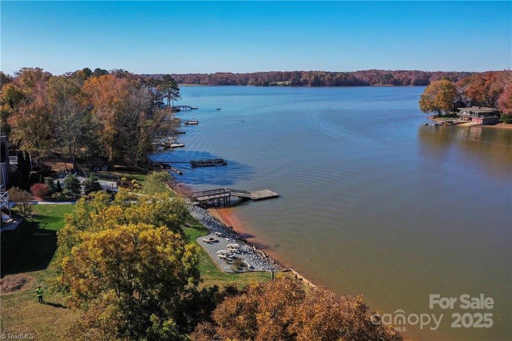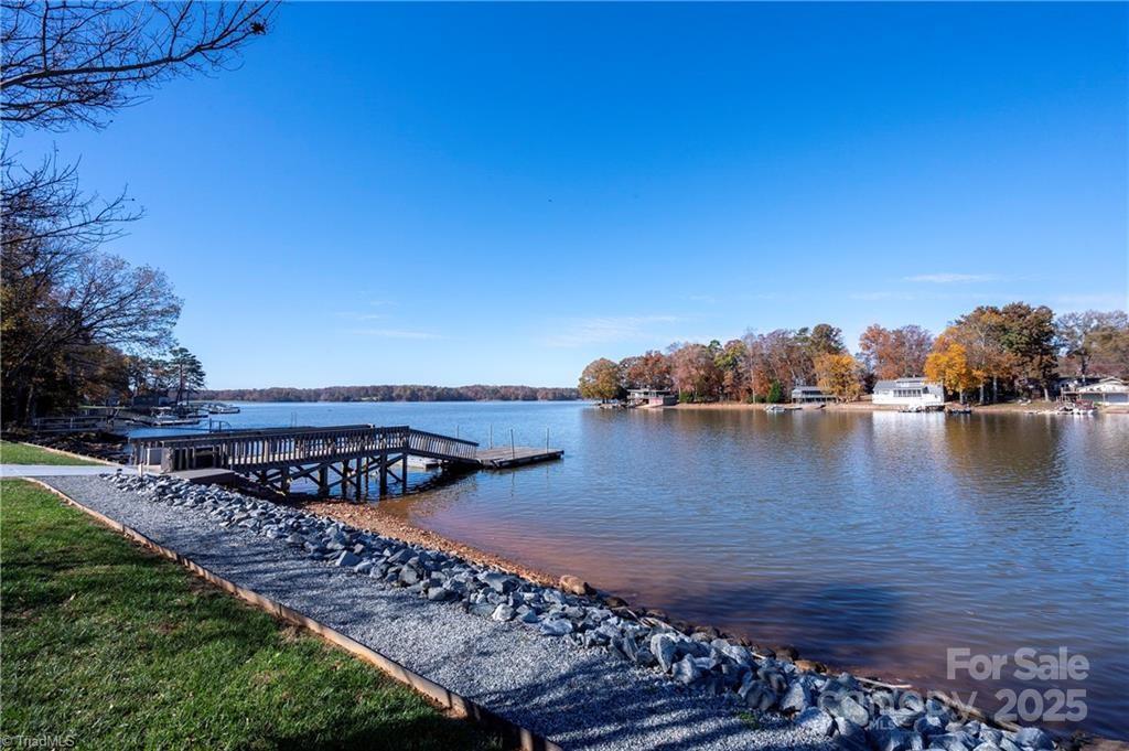 PRICED OVER $160,000 BELOW CERTIFIED APPRAISAL! Custom built LAKEFRONT home in PREMIER WATERFORD POINTE NEIGHBORHOOD ON HIGH ROCK LAKE. This sought after community is located on the main lake channel with no bridges to go under to access the main lake & the two lakefront restaurants. The home features approximately 3500 S/F of sheer elegance w/3 bedrooms, 2.5 baths & extra flex rooms to sleep plenty more lake guests. The home has arguably the one of the nicest and largest CHEF'S KITCHEN of any home on the lake! The PRIMARY BEDROOM IS 21 FT x 15 FT with gorgeous views of the lake & access to the enormous screened deck overlooking what most people would consider "PARADISE". 3 car garage for your cars and your boat. Beautifully finished basement with bedrooms & full bath would please your most discerning guests. The dock is shared with the neighbor so any repairs would be shared also. In short, this one of the nicest homes on the 2nd largest lake in North Carolina w/Gorgeous sunsets.