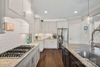 Better than new! This 2021 contemporary farmhouse in desirable Mooresville NC sits on a private 1-acre lot within a quaint single street neighborhood minutes from Lake Norman. Featuring a bright open floor plan with hardwood floors, a chef’s kitchen with gas cooktop, huge granite island, stainless appliances & walk-in pantry. The spacious living room boasts 4-panel sliding doors opening to a covered deck with wooded views. Main-level primary suite includes spa bath with soaking tub, tiled shower, dual sinks & walk-in closet and a secondary bedroom to use as an office or bonus space! Upstairs offers 3 additional bedrooms with ensuite & Jack-and-Jill baths plus 2 bonus walk-in storage areas. Outdoor living shines with landscaped gardens, 3 patios, water features & Breeo fire pit. 3-car garage with storage, drop zone, laundry, office/bedroom, oversized crawlspace, full-house water filtration & irrigation. Minutes to I-77, I-40, shopping, dining & Lake Norman recreation; this Mooresville home blends luxury, privacy & convenience! Pictures coming prior to active date; don't miss the open house!