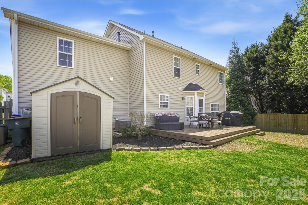 Welcome to this beautifully maintained home in the vibrant Curtis Pond community in Mooresville! Built in 2005 and offering over 2,200 square feet of comfortable living space, this home features 4 spacious bedrooms, 2.5 bathrooms, and a versatile flex space—perfect for a home office, playroom, or additional living area. As well as a separate dining space. Step outside to enjoy the flat, beautifully landscaped, fully fenced backyard, ideal for entertaining, pets, or relaxing evenings on the deck. A storage shed is included and conveys with the property, adding extra convenience. Inside, you’ll appreciate thoughtful updates including an updated HVAC system replaced a few years ago and a beautiful kitchen appliance package. This home is currently under a home warranty for added buyer confidence. Curtis Pond residents enjoy fantastic amenities, neighborhood events and easy access to the greenway—perfect for outdoor enthusiasts. Priced competitively to sell quickly, this home also comes with a 1% lender credit with preferred lender, offering buyers additional savings and flexibility. Don’t miss your chance to call this wonderful home yours!