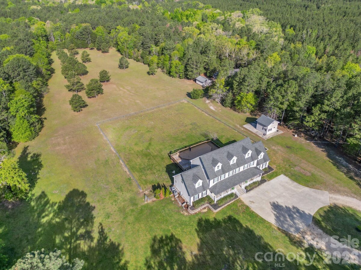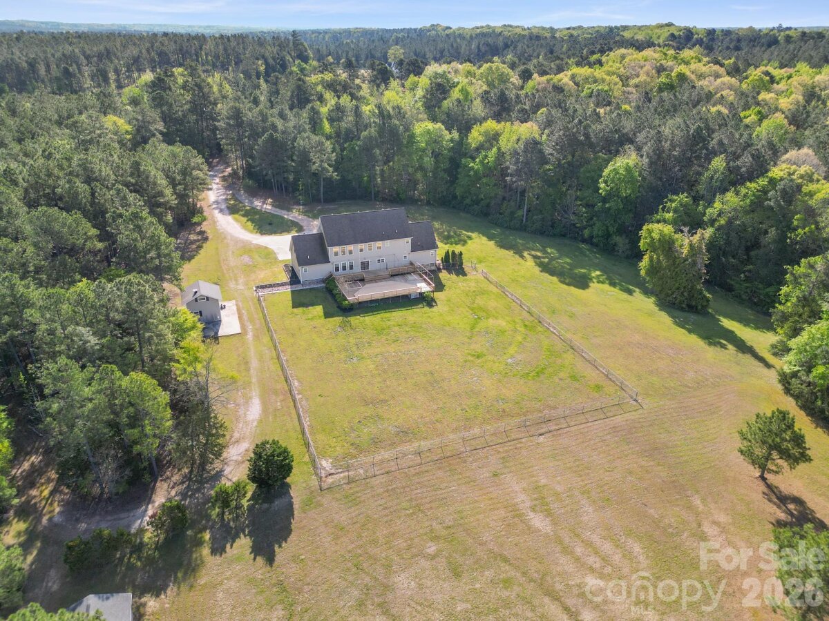 Are you searching for privacy, acreage, and endless possibilities? Whether you’re dreaming of a hobby farm, equestrian property, family compound, or simply a peaceful place to call home—this exceptional property delivers. Situated on 45 acres, this impressive 5,400 sq. ft. home is surrounded by a beautiful blend of hardwoods, pines, and open pasture, with a serene creek along the back of the property—offering both functionality and natural beauty. Step inside to a warm and inviting living room, recently enhanced with a custom-built fireplace/tv unit, creating the perfect focal point for relaxing and gathering. The heart of the home is the expansive kitchen designed for entertaining, featuring a large island, gas cooktop, abundant cabinetry, and a spacious dining area. All kitchen appliances have been recently updated and convey with the home. Just off the kitchen, you’ll find a formal dining room, half bath, and laundry/utility room for added convenience. The main level features hardwood flooring throughout, along with two primary suites enhanced with new LVP flooring—ideal for guests or multigenerational living. Upstairs, the second floor also features hardwood flooring throughout the main living areas, with carpeted bedrooms for added comfort. You’ll find an open loft, three generously sized bedrooms, two full bathrooms, and a dedicated home office. Continue to the third floor where you’ll find a fully finished bonus room—perfect for a media room, playroom, gym, or flex space to suit your needs. Outdoor living is just as impressive with a large, recently rebuilt deck overlooking your private oasis. The outdoor shade system conveys. Enjoy peaceful views, a fenced area for pets, and ample space for entertaining or simply unwinding. Walking paths have also been created throughout the property, allowing you to fully enjoy the beauty and privacy of the land. The property includes three outbuildings, one featuring a lean-to—ideal for equipment storage or future agricultural use. Additional updates include the upstairs HVAC unit replaced in 2015, the downstairs HVAC upgraded to a larger unit in 2023 with a 10-year warranty, and the septic tank pumped in February 2026. This is more than a home—it’s a rare opportunity to own a versatile property where lifestyle, space, and privacy come together.