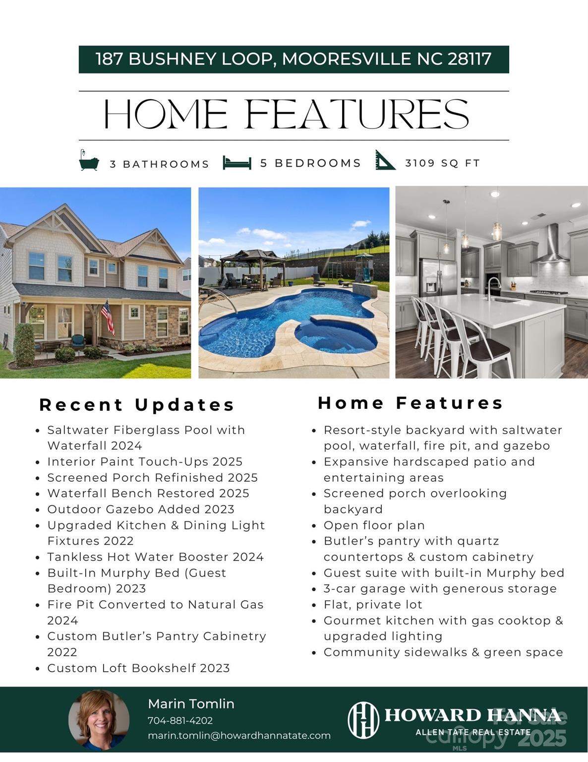 Certified Showstopper! This 5-bed, 3-bath gem with over 3,000 sq ft designed for laid-back living and effortless flow. The kitchen showcases quartz counters, XL island, SS everything, gas cooktop & wall oven. Walk-in pantry is built like a dream — custom shelves, butcher block, bev fridge ready for your drink of choice. Plus a bonus butler’s pantry for your espresso machine or air fryer army. Upstairs offers 4 additional bedrooms, bath, loft for movie nights, laundry room & three walk-in closets w/ built-in cabinets - aka storage dreams. The primary retreat offers a roomy bath complete with dual-sink vanity, soaking tub, tiled shower, and a walk-in closet. Backyard is FULL resort mode - saltwater heated pool + spa, fire pit, screened porch, and patio ready parties or quiet evenings at home. 2-car side garage + utility garage = space for all your gear. Drop zone keeps the chaos contained. This isn’t just a house. It’s a lifestyle and it’s calling your name. This is one you don't want to miss!