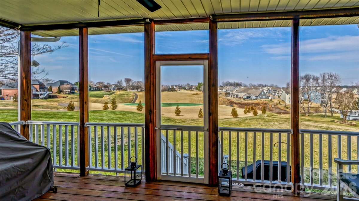 This beautiful 3-bedroom brick ranch is perfectly situated on the 1st green of the 500 Club golf course, offering stunning views of both the green and the fairway from your screened porch! Ideal for entertaining, the spacious kitchen with breakfast area seamlessly flows into the dining room, creating an inviting atmosphere for gatherings. Relax in the vaulted ceiling living room by the gas fireplace or enjoy a peaceful morning coffee on the screened porch, taking in the picturesque views. The primary bedroom features a golf course view, a trey ceiling, an en-suite bathroom and an oversized walk-in closet, offering a perfect personal retreat. Two additional bedrooms share a Jack-and-Jill bath, and a convenient laundry room and half bath complete this well-designed home. Oversized attached two-car garage. Community swimming pool and tennis courts are available for an additional fee.