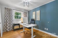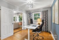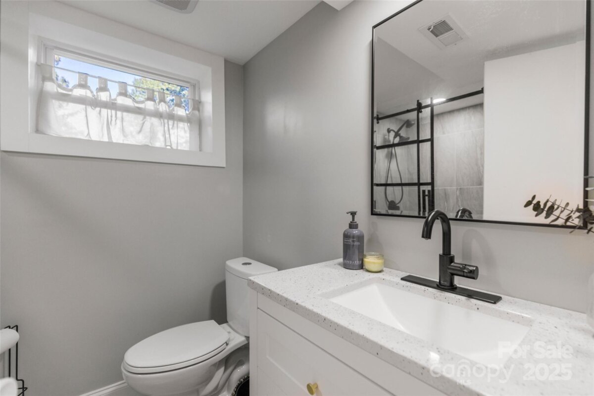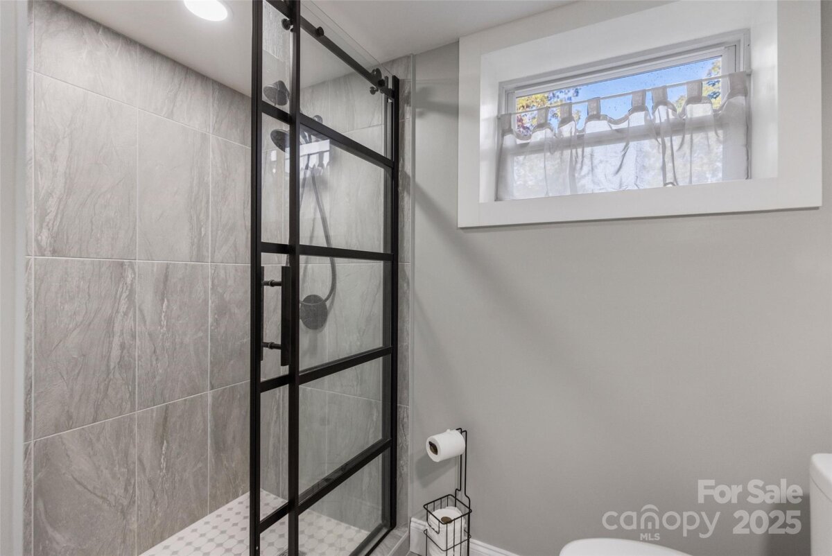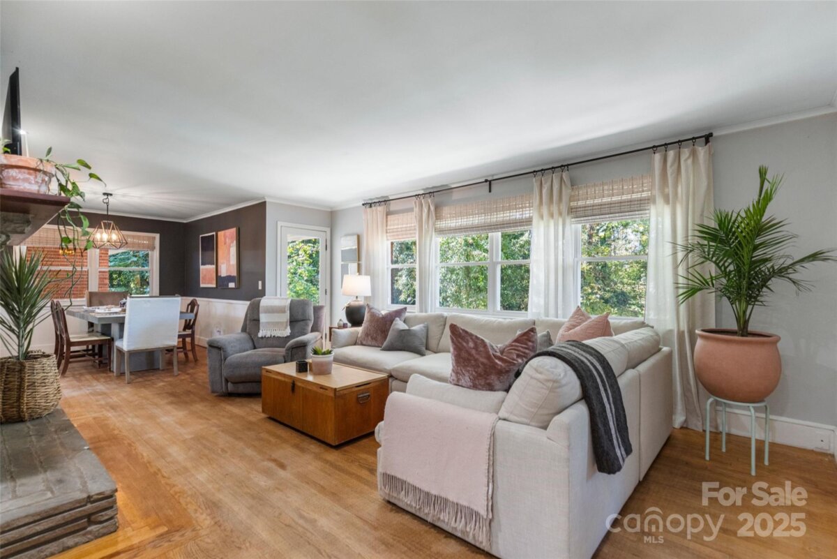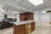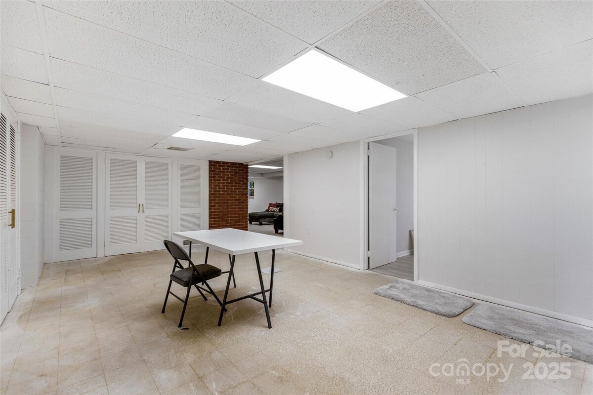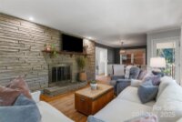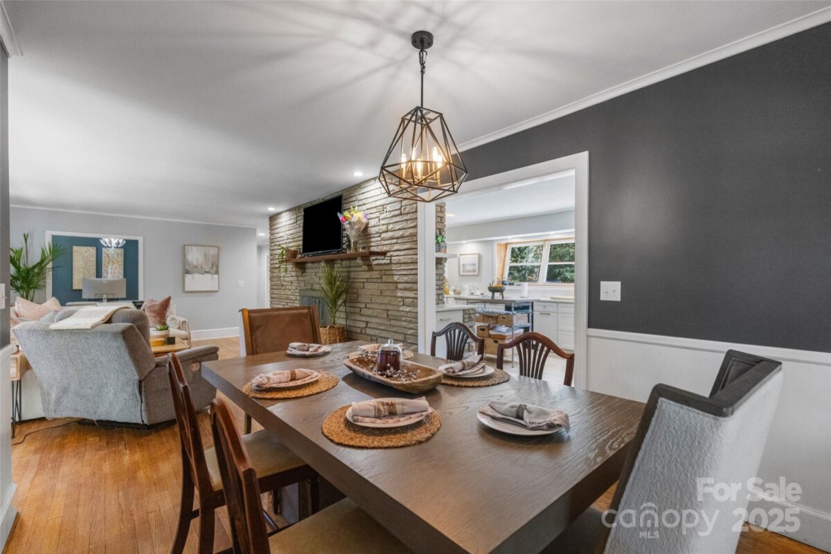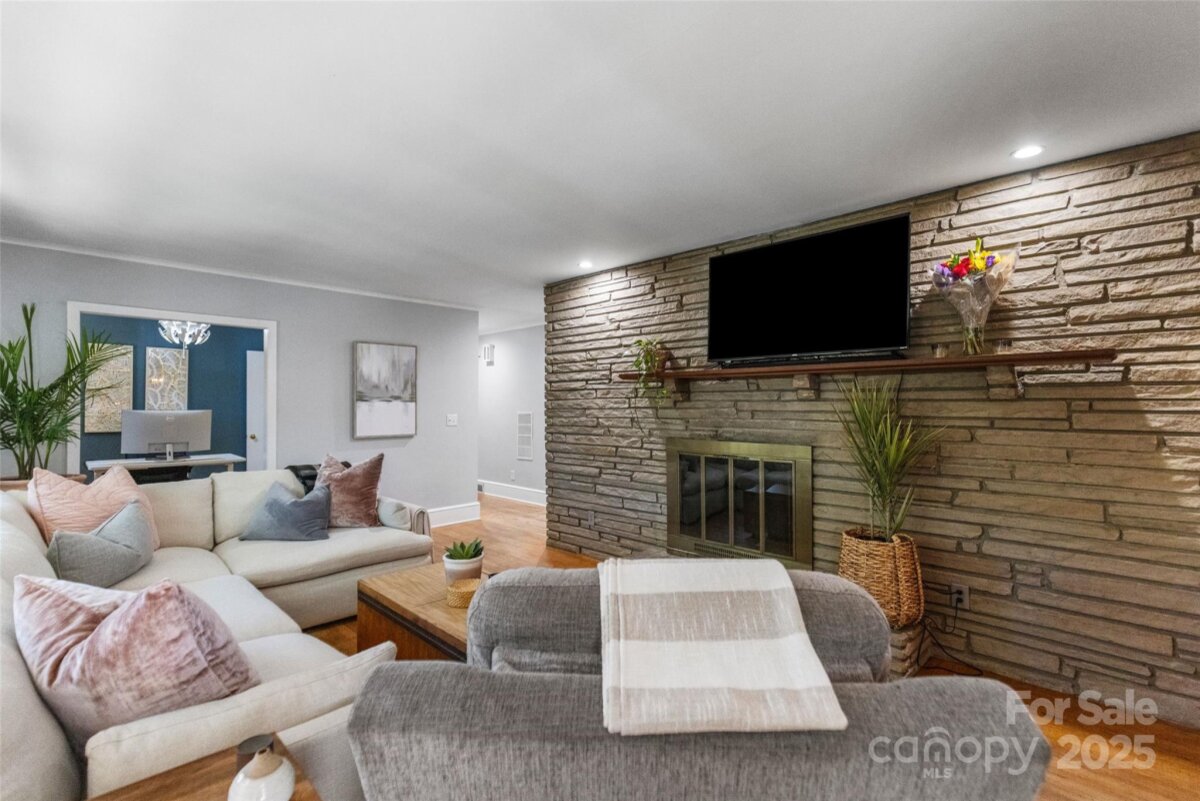 Welcome to this beautifully updated one-story brick home lovingly nicknamed "Brickster" with a full finished basement, ideally located near downtown Forest City. Built in 1956, this mid-century modern home blends timeless charm with modern updates throughout its 3,392 sq. ft. The main floor features three bedrooms and two full baths. One bedroom is currently being used as an office and has double barn doors that open to the living room as well as a door that can be accessed from the hallway. A spacious living room with a stacked stone wood burning fireplace, a formal dining area, and a laundry chute for added convenience. Hardwood floors throughout. The kitchen was fully remodeled in 2025 and showcases granite countertops, new natural gas range, wall oven, pantry, dishwasher, large workstation sink, stainless hood, recessed lighting and LVP flooring — while keeping the home’s original charm with 12 feet of slanted windows overlooking the front yard and a stacked stone accent wall. The finished basement offers an additional living room with a brick wall and wood-burning fireplace (has gas logs but gas has been disconnected) , built-in cabinets and full-size refrigerator. 1 Bedroom, and a remodeled 2024 bathroom, plus a recreation/flex room and laundry room. A walk-out entrance provides easy access to the backyard. There is a small creek at the edge of the property. Set on a .6-acre wooded corner lot, this home offers privacy while being minutes from shops, schools, and restaurants. Enjoy watching as the deer visit the property daily. New central A/C (2025), new gas hot water heater (2021), New roof and windows (2011). A perfect blend of mid-century character and modern living. Furnishings are not included but are negotiable. Owner is Agent / NC Licensed Real Estate Broker