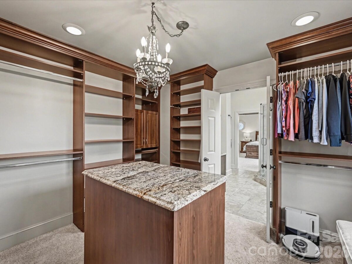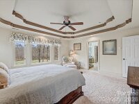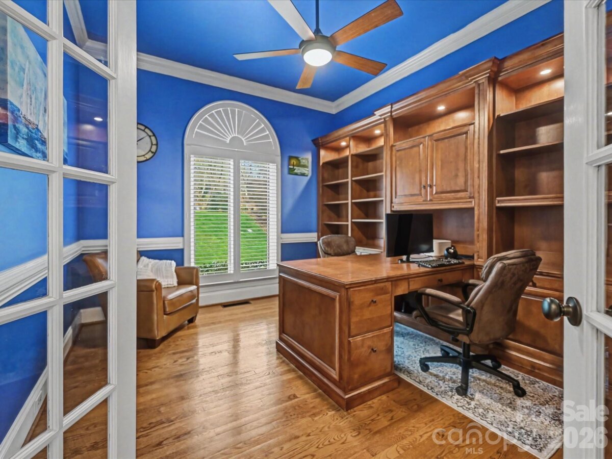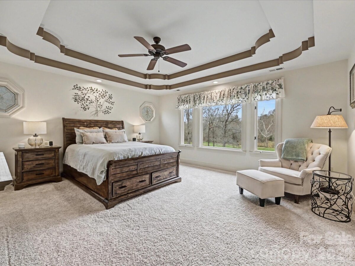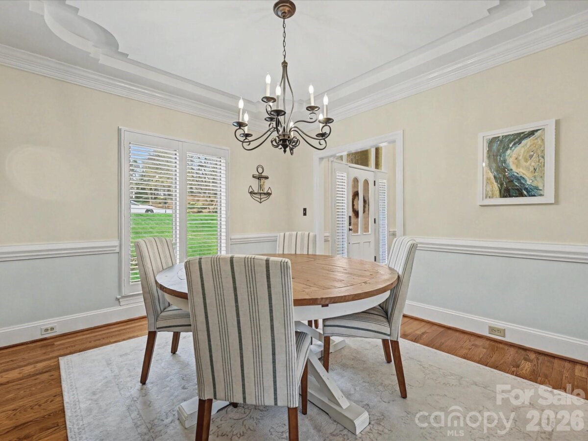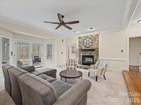 This spacious 4-bedroom home on the 8th Green of River Run offers a seamless blend of luxury, comfort, and flexible living. With a highly functional floor plan, this property is designed to accommodate a variety of lifestyles. Step through the front door into a two-story foyer. To your right, a formal dining room features a tasteful tray ceiling. To your left, a private home office awaits, complete with French doors and custom built-ins. Beautiful hardwood floors and classic plantation shutters flow throughout the main level. The heart of the home is the expansive kitchen, boasting granite countertops, a center island, a one-touch faucet, and a walk-in pantry. It connects smoothly to the spacious living room via a shared, see-through gas fireplace. Upstairs, the primary suite is a true sanctuary featuring a tray ceiling, a stunning custom walk-in closet, and large picture window. The spa-like primary bathroom includes dual granite vanities, a deep soaking tub, and a large frameless glass shower equipped with dual showerheads. Bedrooms two and three each feature en-suite bathrooms. The full walk-out basement provides direct access to the spacious backyard and includes a versatile rec room, flex-space, and a dedicated workshop. It also hosts the fourth bedroom and a full bathroom, making it perfect for guests or flexible living options. Outdoors, enjoy sweeping views of the par-3 green and a beautifully landscaped backyard from the comfort of your enclosed porch, durable Trex deck, or large stone firepit. Standout features include heated floors in all full bathrooms, two separate laundry rooms (both equipped with sinks) and a spacious 3-car side-load garage. Community perks include access to private fishing ponds and scenic nature trails. (River Run Country Club membership is available separately)