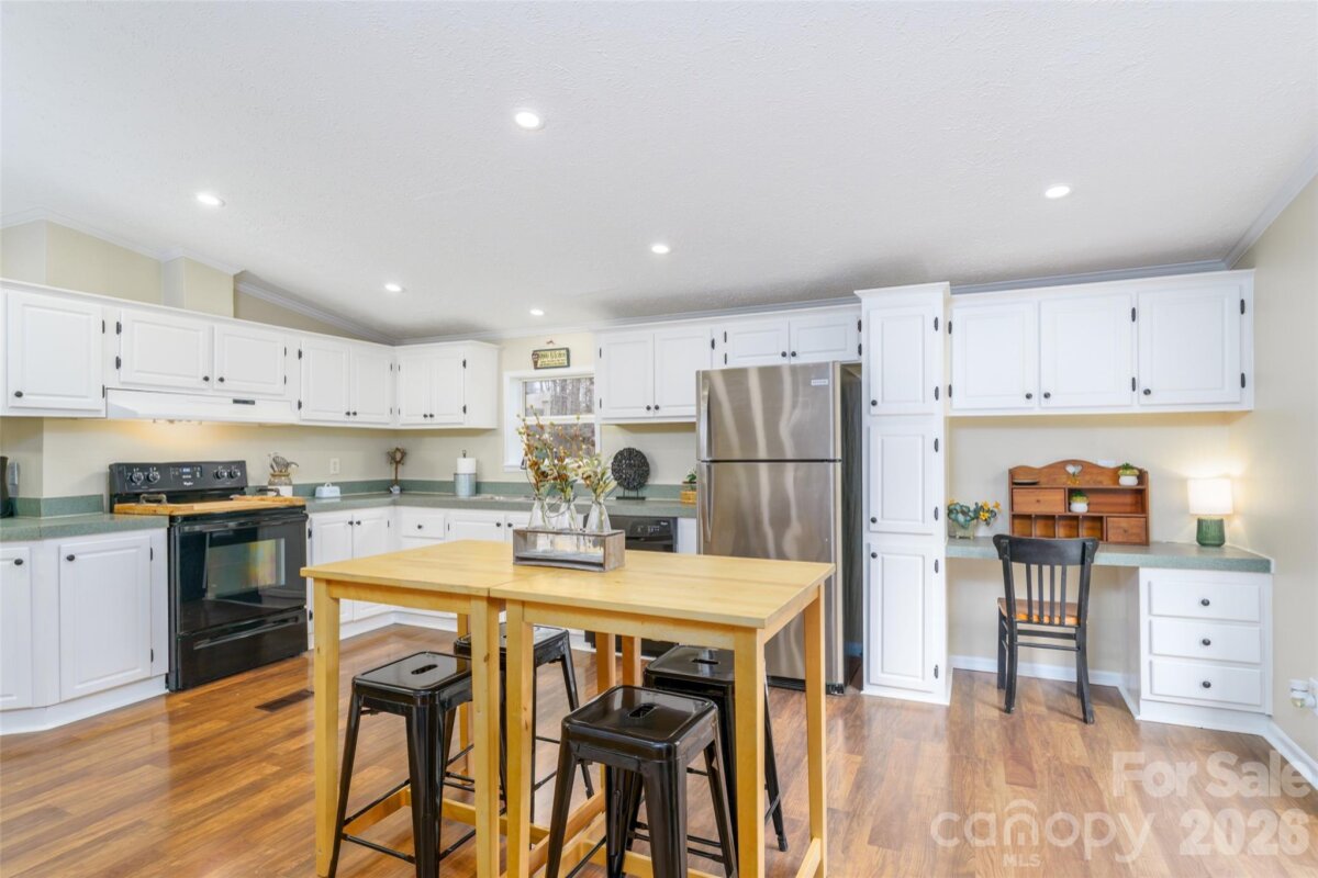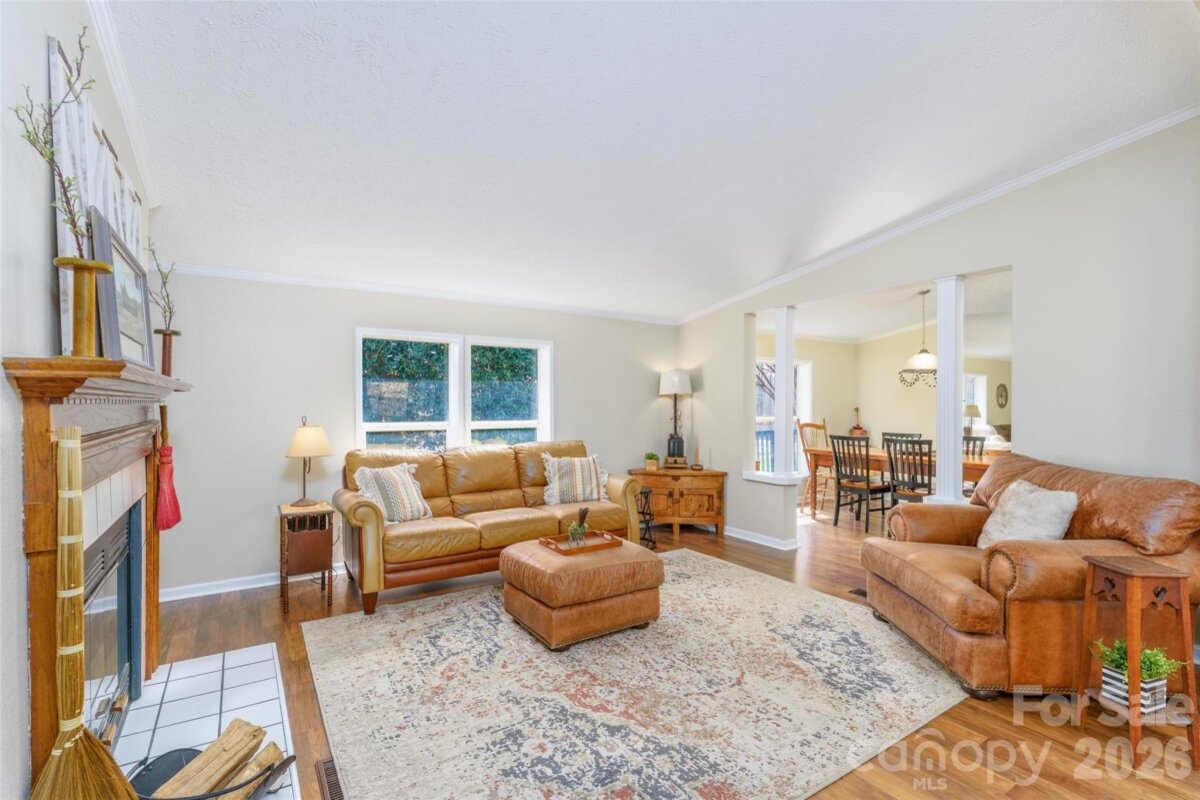This property is located in the tranquil Windward Pointe community, just minutes from I-77 and conveniently accessible to downtown Mooresville. Positioned on a 0.55-acre, partially wooded, flat lot, the residence features 1,836 square feet of thoughtfully designed living space. The kitchen is equipped with generous cabinet and countertop storage, new LED recessed lighting, updated appliances, and refrigerator is included. The family room offers a wood-burning fireplace with an elegant oak mantle, flanked by custom built-in shelving and cabinetry, opening to a spacious dining area. The mud room is furnished with a stackable front-load washer and dryer, utility sink, and provides direct access to the rear deck. The expansive primary suite includes new carpeting, dual walk-in closets, a walk-in shower, and a large soaking tub. There are two sizable secondary bedrooms. Entertaining is made easy with a newly stained, 274-square-foot L-shaped deck featuring a canopy. The rear yard boasts a freshly painted shed and ample space for gardening. The property is conveniently situated near grocery stores, Lowe’s Hardware, Lake Norman, three parks, hiking trails, Carrigan Farms, and more. Recent upgrades include a new architectural shingle roof (installed February 2026), new 6†gutters and downspouts (installed February 2026) and freshly painted kitchen and kitchen cabinets.