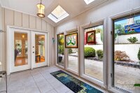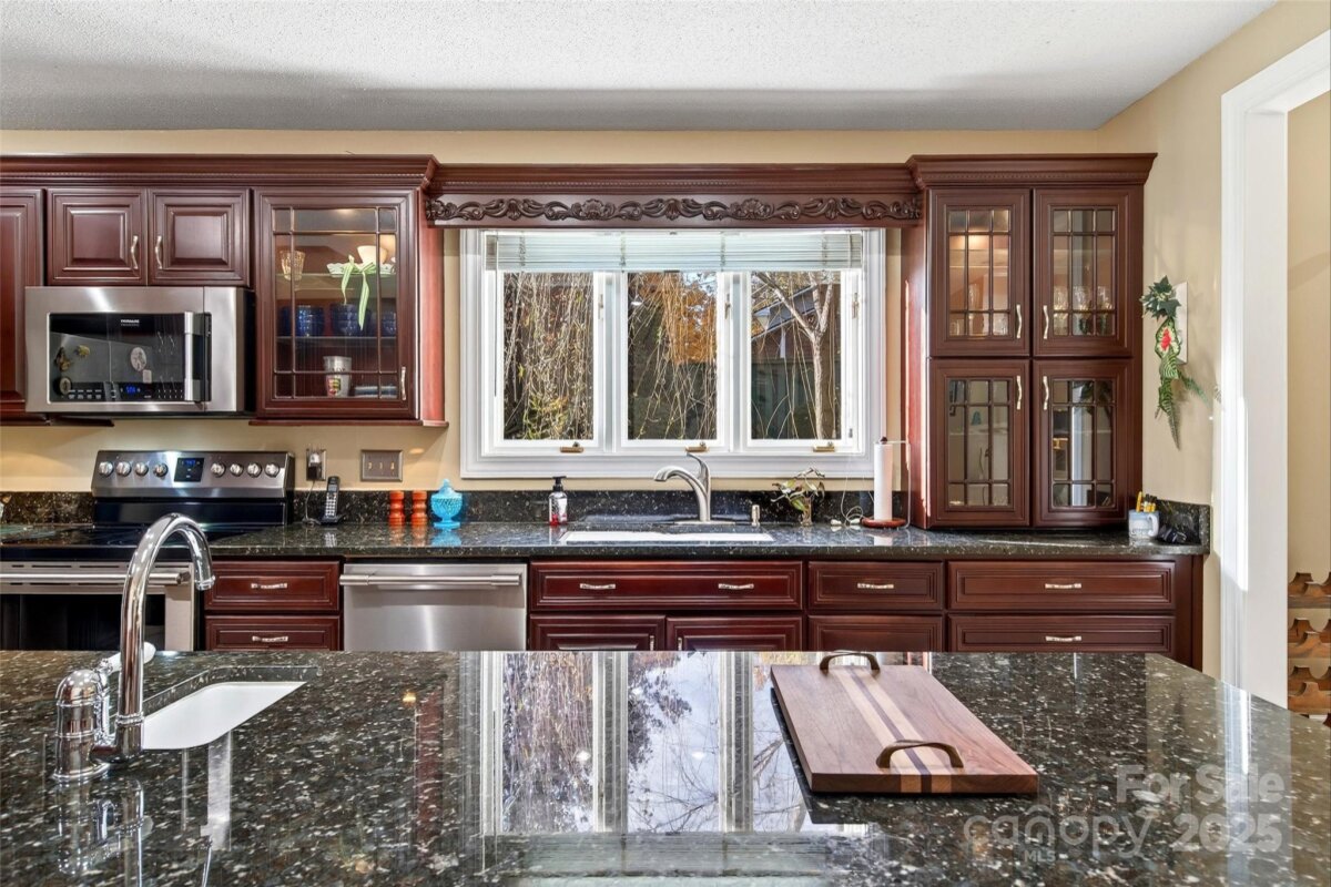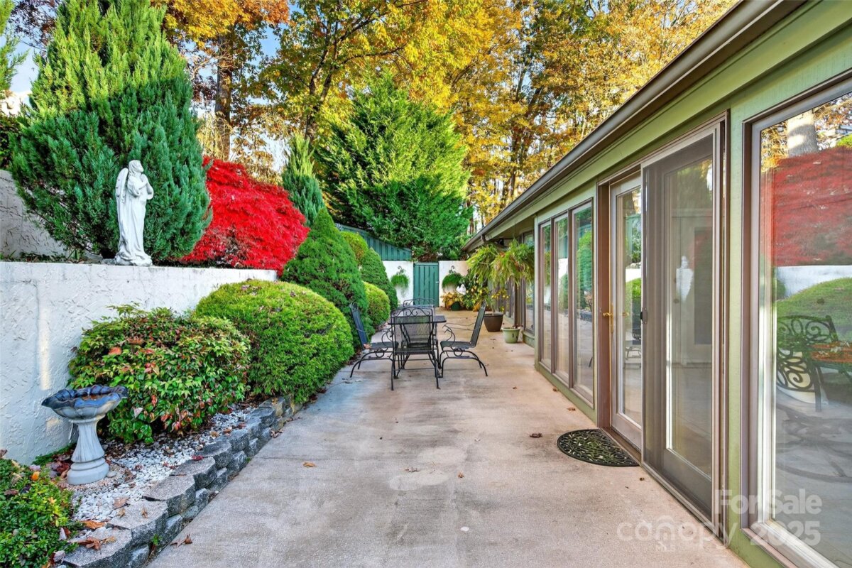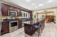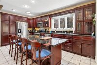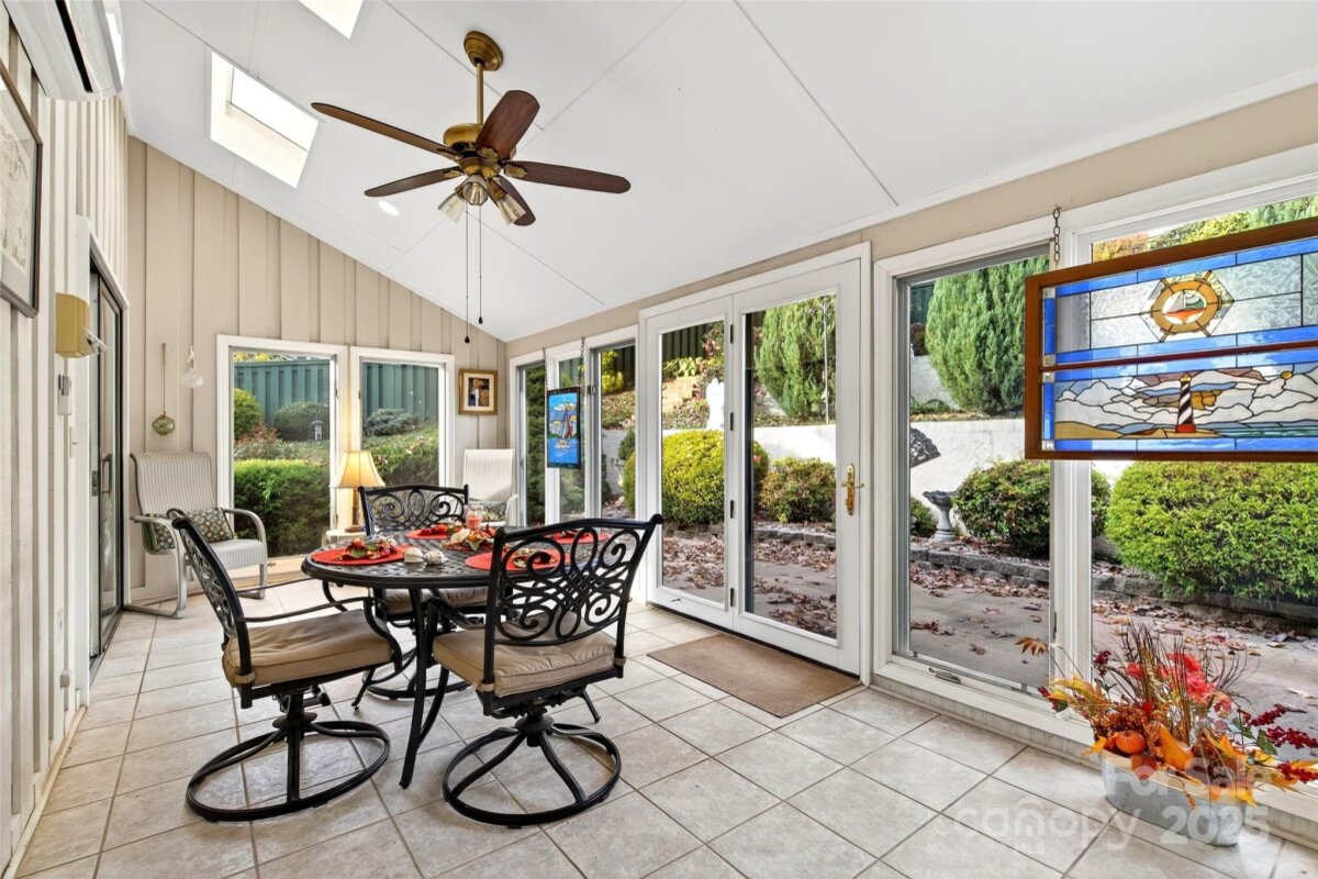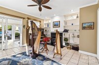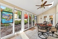 Welcome to this beautifully appointed single-level home in a highly desirable location — an ideal blend of comfort, style, and functionality. As you step through the wide entry, you’ll immediately notice the generous built-ins that enhance both the foyer and the elegant dining area. The formal dining room features a triple window with blinds, allowing abundant natural light to flood the space, and attractive lighting fixtures flow seamlessly throughout the home. The dream kitchen is a true centerpiece: richly-stained cherry cabinets, gleaming granite countertops, and a large window overlooking the deep double sink set the stage for culinary inspiration. The expansive island includes a bar sink and four stools, offering a perfect spot for casual dining or entertaining. Adjacent is a versatile breakfast area/den/study with tile flooring, a vented gas fireplace, and a triple window arrangement — all opening onto an inviting sunroom equipped with its own storage closet and a mini-split system for year-round comfort. Step outside to a fenced patio and a dedicated yard area, perfectly suited for pets or casual outdoor gatherings. The living room features warm wood flooring, a propane gas fireplace with a graceful mantel, and a hand-painted accent wall adding character and charm. A well-located hallway offers a convenient half bath and generous additional closet storage. The primary bedroom boasts plush carpeting, a beautiful chandelier, and ample closet space, along with access to a Jack & Jill bathroom featuring a large tub and separate shower. The second bedroom also offers access to the second full bath, abundant closet space, and a sliding door that leads directly to a sunroom with private courtyard. The oversized two-car garage includes attic storage, an electrical room, and a light-filled workshop space, plus a secondary side door for added convenience. Bonus: This home comes with an assumable VA loan — a tremendous opportunity for eligible buyers.