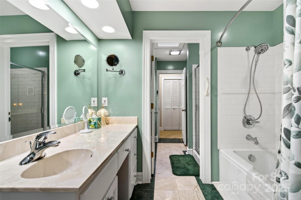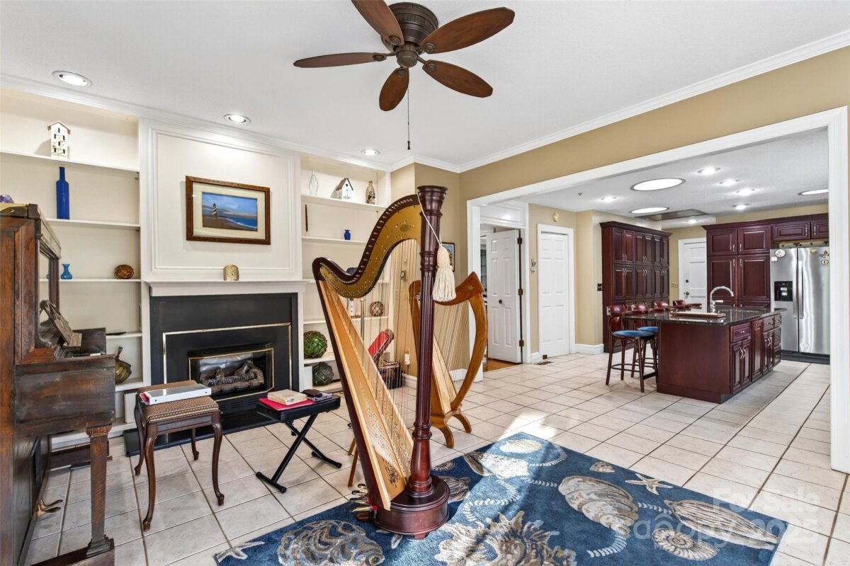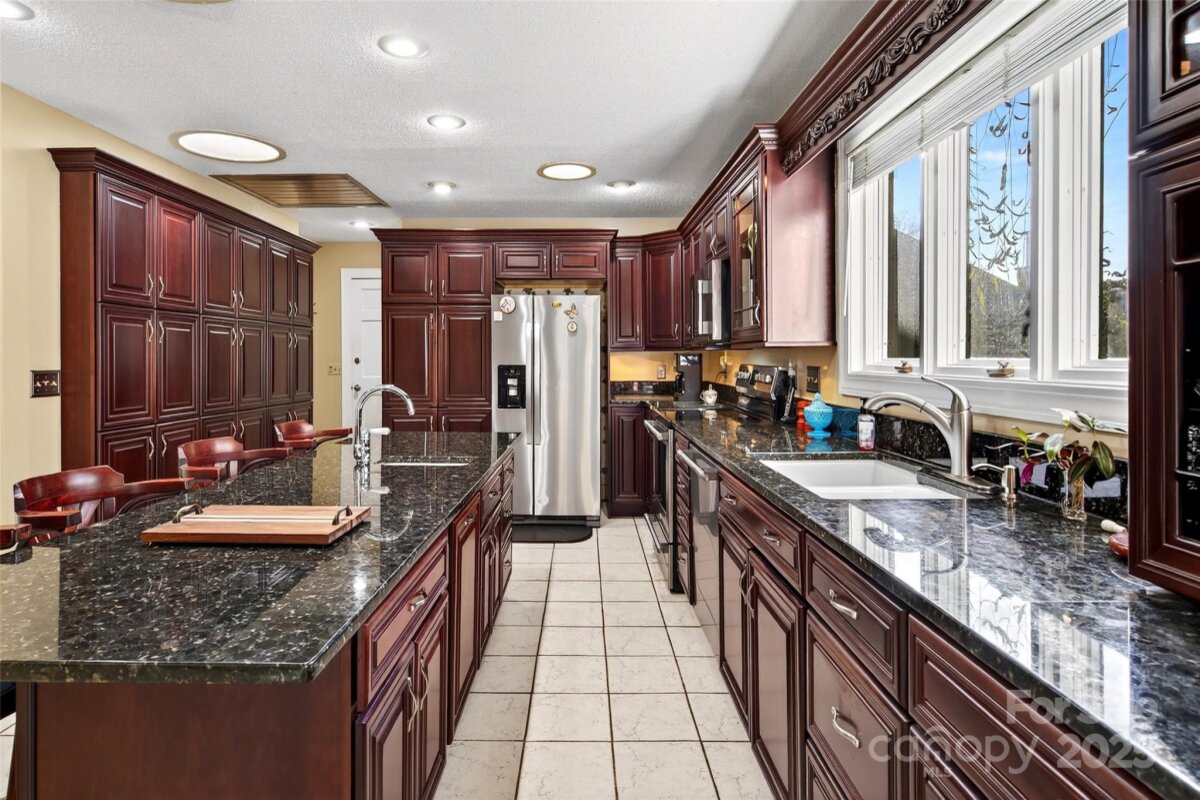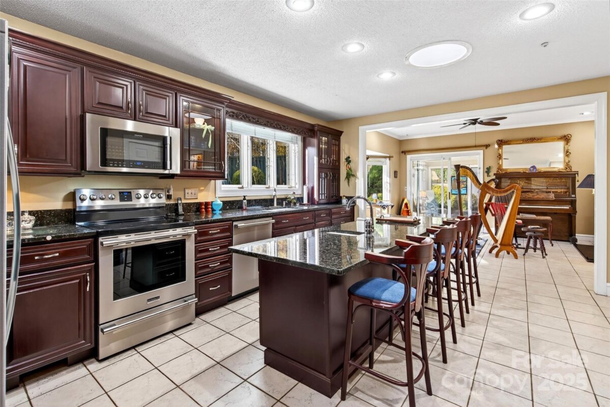 Welcome to this beautifully appointed single-level home in a highly desirable location — an ideal blend of comfort, style, and functionality. As you step through the wide entry, you’ll immediately notice the generous built-ins that enhance both the foyer and the elegant dining area. The formal dining room features a triple window with blinds, allowing abundant natural light to flood the space, and attractive lighting fixtures flow seamlessly throughout the home. The dream kitchen is a true centerpiece: richly-stained cherry cabinets, gleaming granite countertops, and a large window overlooking the deep double sink set the stage for culinary inspiration. The expansive island includes a bar sink and four stools, offering a perfect spot for casual dining or entertaining. Adjacent is a versatile breakfast area/den/study with tile flooring, a vented gas fireplace, and a triple window arrangement — all opening onto an inviting sunroom equipped with its own storage closet and a mini-split system for year-round comfort. Step outside to a fenced patio and a dedicated yard area, perfectly suited for pets or casual outdoor gatherings. The living room features warm wood flooring, a propane gas fireplace with a graceful mantel, and a hand-painted accent wall adding character and charm. A well-located hallway offers a convenient half bath and generous additional closet storage. The primary bedroom boasts plush carpeting, a beautiful chandelier, and ample closet space, along with access to a Jack & Jill bathroom featuring a large tub and separate shower. The second bedroom also offers access to the second full bath, abundant closet space, and a sliding door that leads directly to a sunroom with private courtyard. The oversized two-car garage includes attic storage, an electrical room, and a light-filled workshop space, plus a secondary side door for added convenience. Bonus: This home comes with an assumable VA loan — a tremendous opportunity for eligible buyers.