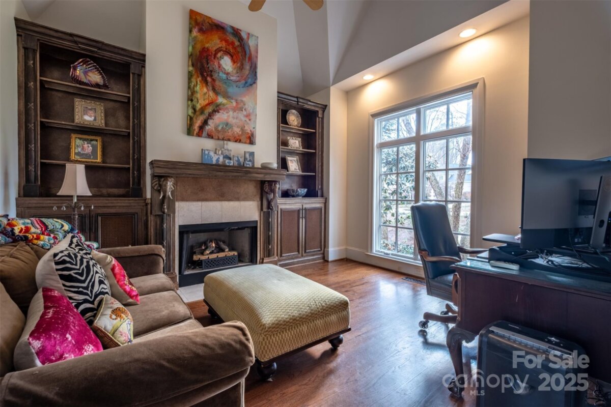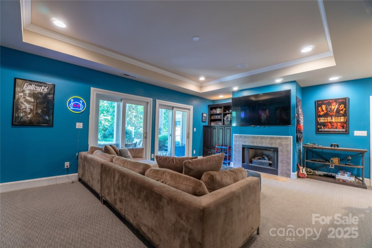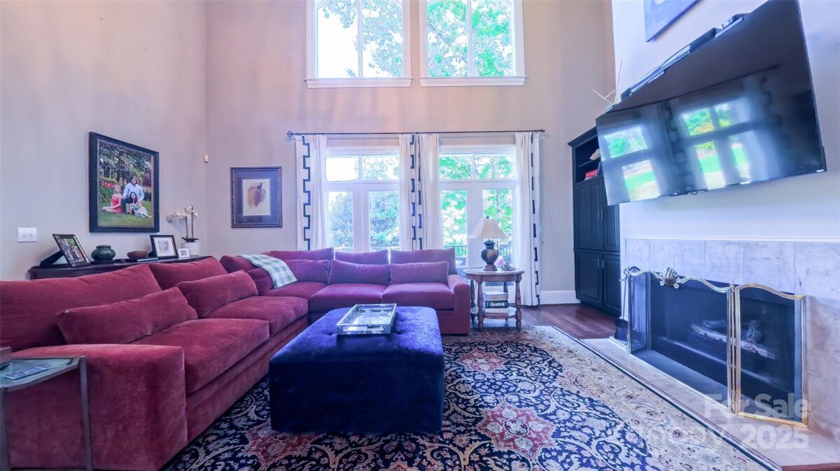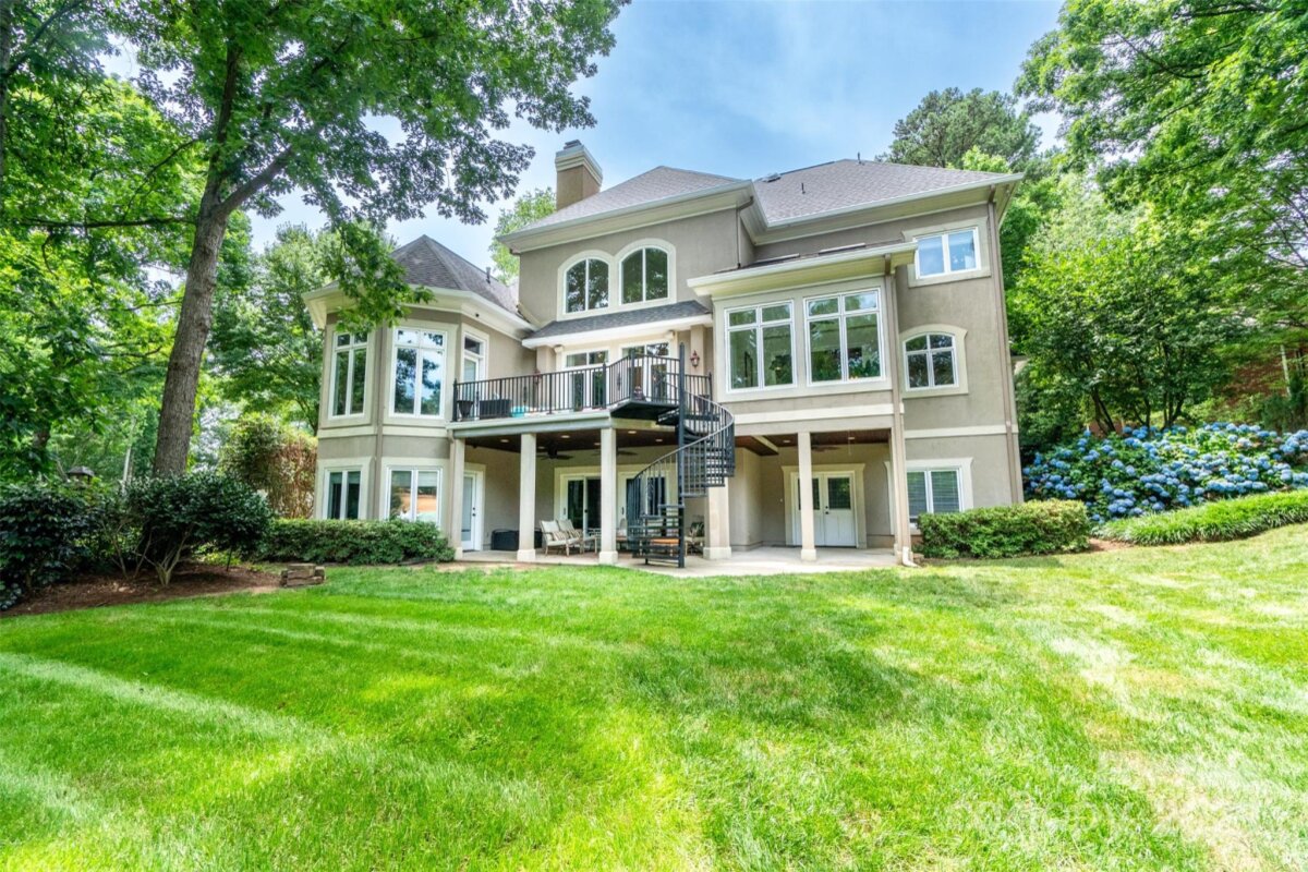 Elegant, family home on gorgeous, private .75 ac, golf course lot in The Peninsula with room for a pool and more. Main floor with primary suite, 2 story living room, vaulted study, formal dining room, big kitchen and inviting sunroom. 10' ceilings on main and basement levels; 9' on second floor. 3 car garage, 3 fireplaces and custom touches throughout. Expansive finished basement with guest suite and large utility area--bring your golf cart! *Updates include: New roof (2024), gutters and gutter guards, bathroom countertops in 1/2 bath and primary, expanded kitchen island, wet bar, bar beverage refrigerators, dishwasher, double ovens, drawer microwave, gas cooktop, undercabinet lighting, new hardwoods in primary bedroom and hall, refinished hardwoods, new carpet throughout second floor and basement, and more!*