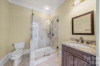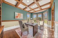 Introducing this exquisite custom-built luxury estate in highly sought-after Providence Downs South, where architectural elegance meets exceptional functionality. This all-brick masterwork offers an unparalleled level of privacy and sophistication. Step through the impressive arched double doors into a spectacular two-story foyer featuring classic travertine tile flooring, intricate wainscoting, and a gracefully curved wrought-iron staircase. Arched passageways lead to the spacious formal dining room, perfect for hosting grand gatherings. French doors open to a prestigious executive office complete with a rich wood coffered ceiling and gorgeous built-in bookshelves. The dramatic, vaulted great room boasts a massive wall of floor-to-ceiling windows and doors, anchored by a beautiful stone fireplace and custom built-ins. Culinary enthusiasts will admire the gourmet kitchen, which features cream-colored stacked cabinetry, a monumental dark wood contrasting center island, gleaming granite countertops, a Viking professional gas range, double ovens, and high-end panel-ready refrigeration. Extend your entertaining outdoors from the main level onto an oversized balcony, offering a serene vantage point overlooking the lush, private backyard. Designed for ultimate privacy and comfort, this home features 5 generous bedrooms plus a 6th bed/bonus room, with EVERY bedroom including its own pristine, dedicated full en-suite bath. An additional 2 elegant half-baths serve guests. Ascend to the versatile third floor, an expansive space perfectly suited for a vibrant game room, home gym, or secluded private retreat. The mudroom/utility room is equally impressive, with high-end cabinetry, granite counters, and a utility sink. The sprawling, finished walk-out basement is a destination in itself. Entertain in style with a dedicated movie theater featuring stadium seating, accompanied by a full professional bar. This level is also perfectly equipped as a private in-law or guest apartment, complete with its own second full kitchen, a spacious living area, and a private bedroom with a full en-suite bath. Step seamlessly from the basement out to a phenomenal paved back patio. This magnificent outdoor living area is built for year-round enjoyment, featuring both a built-in firepit and a stunning outdoor fireplace. Perfectly situated in the quiet elegance of Marvin, NC, this estate is a rare find, combining superior craftsmanship, abundant square footage, and a floor plan optimized for modern, high-end living.