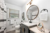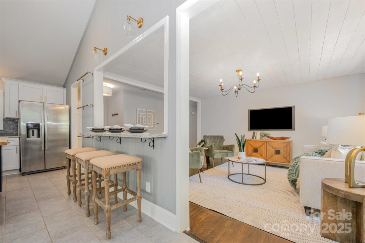 This beautifully updated home offers a perfect blend of character and modern comfort in one of Charlotte’s premier neighborhoods. Hardwood floors flow throughout the bright, open rooms, creating a warm and inviting feel from the moment you step inside. The modern, open-concept layout is designed for today’s lifestyle, featuring an updated kitchen with sleek cabinetry, a large butcher block island, and a sunny dining area with vaulted ceilings. The kitchen seamlessly connects to the spacious living room, where oversized windows fill the space with natural light. A renovated bathroom showcases a modern vanity, stylish fixtures, and a tile-surround shower. The primary bedroom includes a private en suite half bath, offering convenience and comfort. Step outside to your private patio—perfect for outdoor dining or relaxing with friends and family. The tree-lined backyard with a cozy fire pit provides the ideal setting for gatherings year-round. Located just a quick walk from the Sugar Creek Greenway with access to 20+ miles of scenic walking and biking trails, this home offers both outdoor adventure and urban convenience. You’ll enjoy being minutes from SouthPark and Park Road Shopping Center where shopping, dining and entertainment await. A short commute to Uptown Charlotte and Charlotte Douglas International Airport make morning commutes and traveling a breeze. Don't miss this great opportunity to call this your new home!