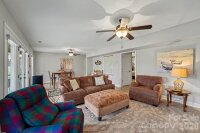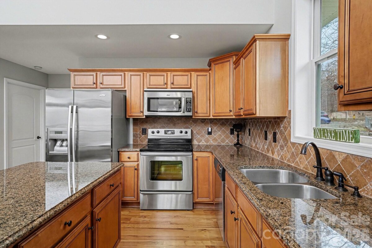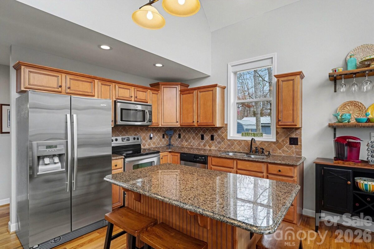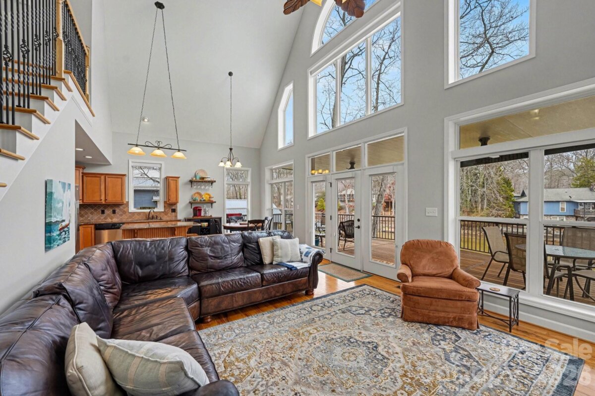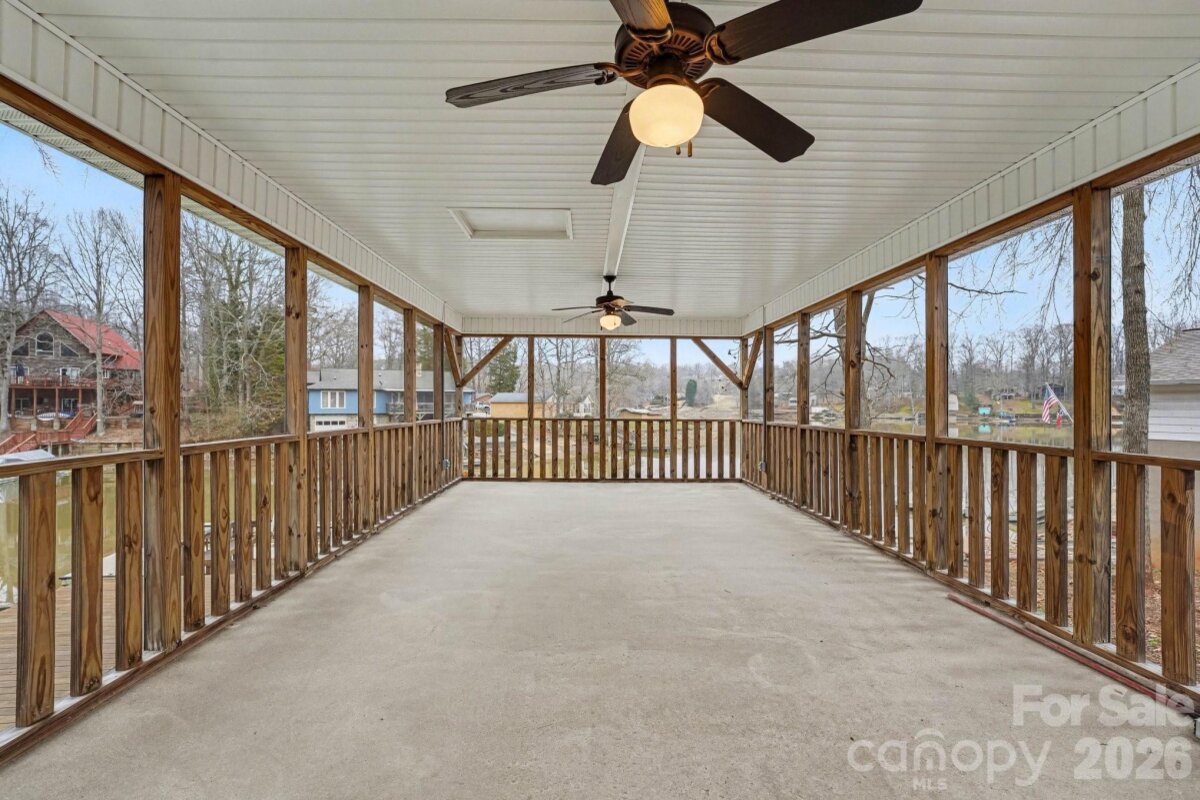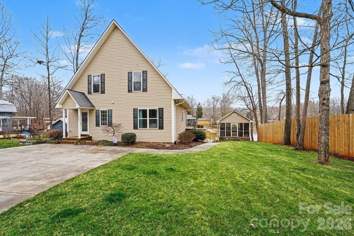 Turnkey waterfront retreat on High Rock Lake offering the perfect blend of relaxation and recreation for full time living or unforgettable weekend escapes. Per septic permit, the home is approved for 2 bedrooms and also features 2 additional flex rooms currently used as bedrooms, along with 3 full bathrooms and a fully finished walkout basement providing exceptional space for hosting family and friends. Wake up to beautiful lake views and enjoy morning coffee on the covered deck overlooking the water. Inside, hardwood floors, granite countertops, and stainless steel appliances create a warm yet refined atmosphere. The level lot allows effortless shoreline access, leading to an aluminum low maintenance dock with boat lift, ready for endless days on the water. The lower level of the boathouse offers convenient storage for all your lake essentials, while the upper level showcases a spacious screened gathering area, an incredible setting for sunset dinners, game days, and summer celebrations. Extra gravel parking adds convenience, select furniture conveys, and a Barletta pontoon boat is negotiable. Move in and start enjoying lake life immediately with minimal maintenance and maximum outdoor living space.