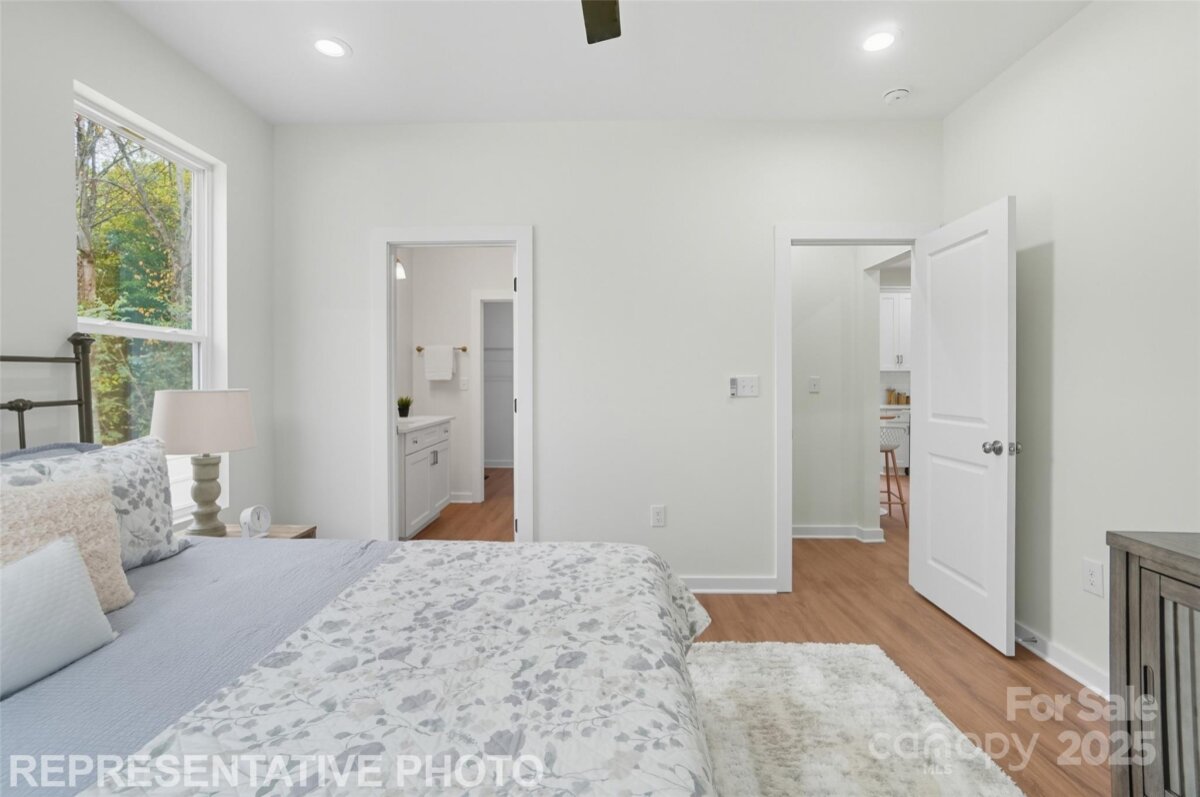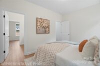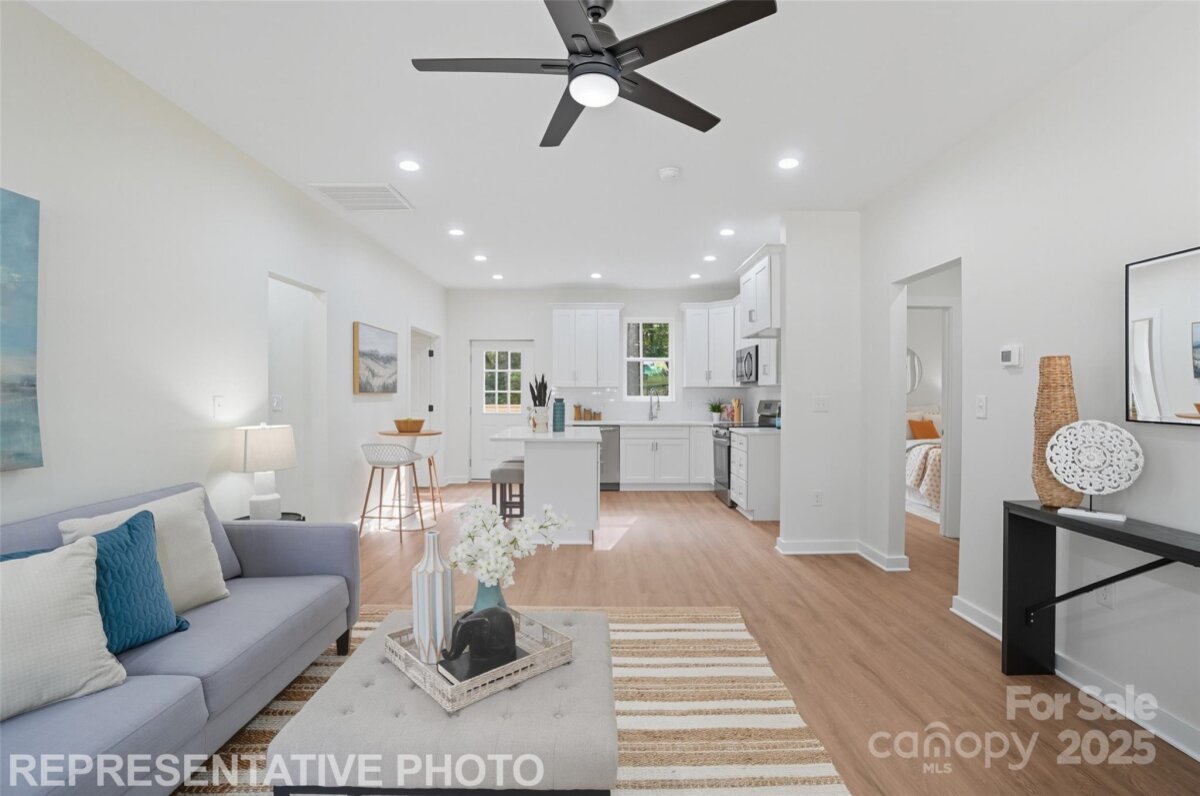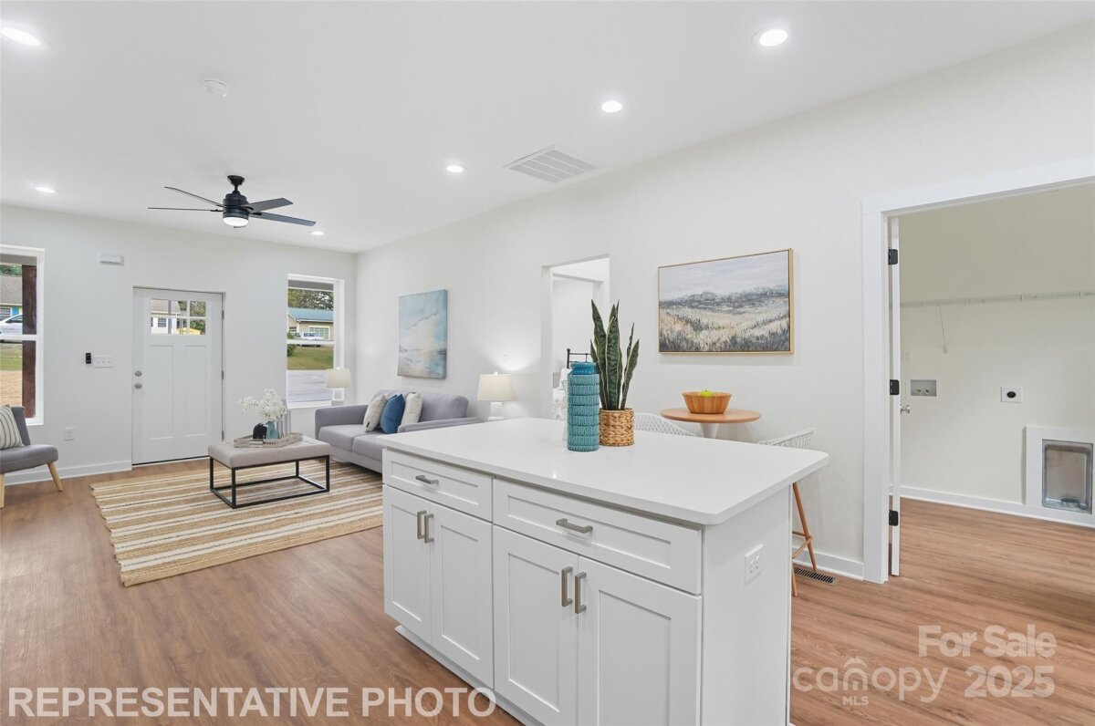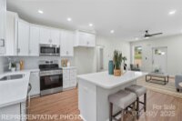 One of two stunning new homes offering the perfect blend of modern design, quality craftsmanship, and everyday comfort. The open-concept floor plan is ideal for both entertaining and daily living, featuring a stylish eat-in kitchen with white shaker cabinetry, granite countertops, a designer tile backsplash, and stainless steel appliances. Soaring 9-foot ceilings and large windows fill the home with natural light, creating a bright and inviting atmosphere throughout. Beautiful details abound—including a premium trim package, sleek hardware, and durable vinyl plank flooring for easy maintenance. The oversized primary suite provides a peaceful retreat with a spacious layout and a private bath. Step outside to enjoy your morning coffee or unwind after a long day on the expansive rear deck overlooking a partially wooded, private backyard. Located just minutes from shopping, dining, and major highways, this home offers both convenience and tranquility—perfect for modern living in the heart of Statesville. Incentives available toward closing costs and rate buy-downs for qualifying buyers when using our preferred lender.