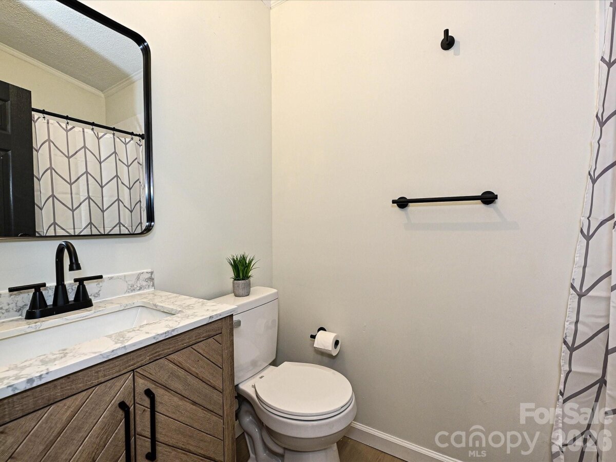 BEST RENOVATED HOME VALUE IN THE AREA (Check Recent Comps & Active Properties)! No HOA! Renovated farmhouse-style 3-bedroom 2-bath ranch set on a peaceful half-acre in the friendly Rocky Creek Cove community. New Architectural Shingled ROOF! New water heater, the open concept layout invites you in with warm designer touches: shiplap and board & batten accent walls, wood barn doors, fresh luxury vinyl plank flooring and plush new carpet underfoot in the bedrooms, and new modern black hardware & fixtures tie the whole look together. The heart of the home—an impressive, entertainer-ready kitchen—shines with brand-new white shaker cabinetry, new white quartz countertops, large island with bar top, and a classic subway tile backsplash. A suite of new stainless appliances, including range, microwave, and dishwasher, makes meal prep effortless while keeping the style on point. The private primary suite offers a calm retreat with an updated en-suite bath featuring new double vanity, countertops, black plumbing fixtures, mirrors, & light fixtures for a clean look. Enjoy a bath in your large garden tub or take a shower in the separate shower. Primary Suite has easy access to walk-in closet. The 2nd and 3rd bedrooms are generously sized and versatile—ideal for guests, a home office, or hobbies. An updated hall bath (new vanity, countertop, commode, fixtures, etc.) continues the home’s polished aesthetic. Big-ticket improvements deliver peace of mind and curb appeal: a new architectural shingle roof, low-maintenance vinyl siding, full concrete driveway, recently serviced septic & well systems are ready to go. Outside, the expansive half-acre lot provides room to play, garden, or simply unwind. The tranquil setting blends the charm of country living with everyday convenience. You’ll love the location—minutes to shopping, dining, and all that the Lake Norman area offers, from waterfront restaurants and parks to boating & weekend adventures. Quick access to Exit 42 at one direction & exit 36 Mooresville shopping in the other keeps commutes and errands easy, while the peaceful community setting makes coming home the best part of your day. No detail left undone. Act fast—this affordable gem won’t last long!