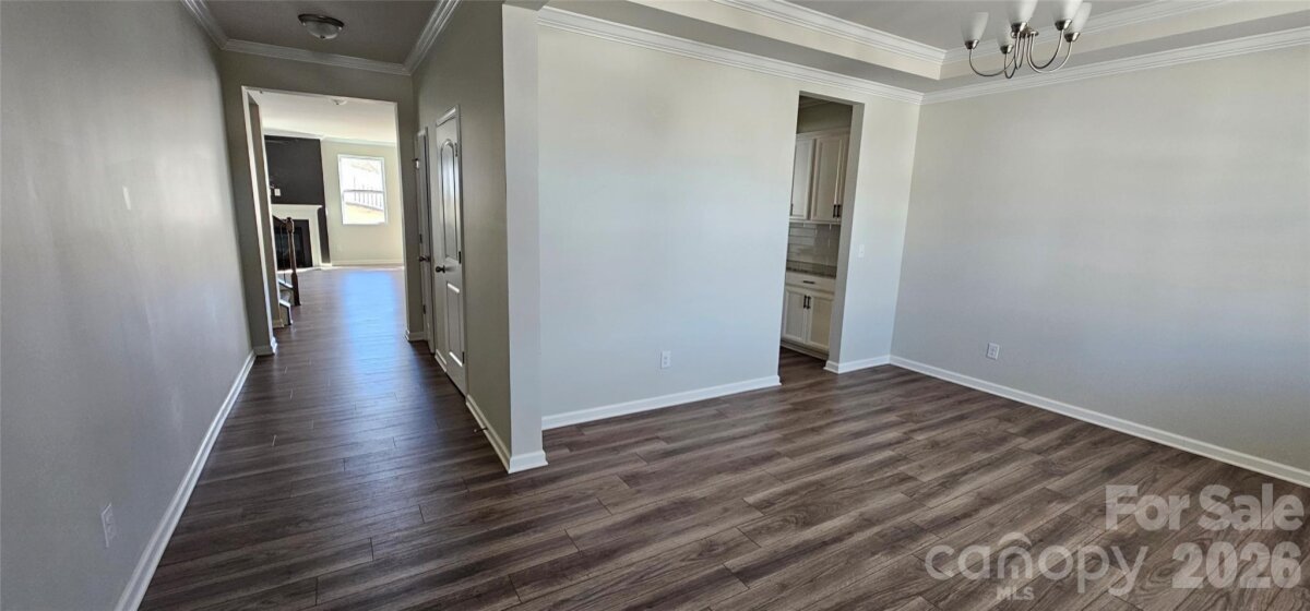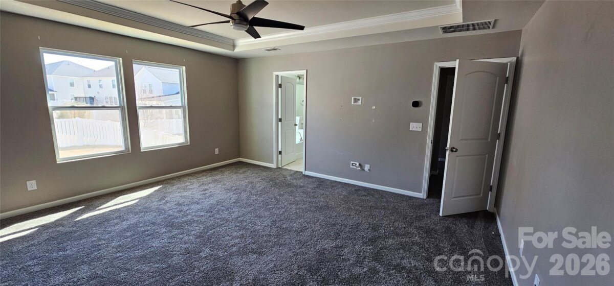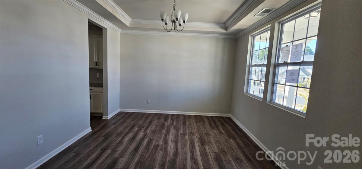 Welcome to this beautifully designed, move-in ready home in one of Charlotte’s most desirable and rapidly growing areas! From the moment you arrive, the charming Tudor-style accents, covered front porch, and inviting curb appeal create a lasting first impression. Inside, you’ll find a bright, open floorplan thoughtfully designed for both everyday living and effortless entertaining. The main level features durable luxury vinyl plank flooring, abundant natural light, and a seamless flow between spaces. A versatile front room with tray ceiling offers the perfect flex space for a formal dining room, home office, or sitting area. The heart of the home is the stunning kitchen, complete with a large center island, granite countertops, white cabinetry, stainless steel appliances, gas range, and stylish pendant lighting. Overlooking the spacious living room with cozy fireplace, this layout is ideal for gatherings or relaxing evenings at home. A built-in drop zone/butler’s area adds both functionality and extra storage. Upstairs, a generously sized loft provides a second living area perfect for a media room, playroom, or workspace. The spacious primary suite offers a true retreat with tray ceiling, abundant natural light, and a well-appointed en-suite bath featuring dual vanities, tile flooring, a glass-enclosed shower, and separate soaking tub. Secondary bedrooms are well-sized and versatile, and the conveniently located upstairs laundry room adds everyday ease. Step outside to a flat, usable backyard with patio and privacy fencing—perfect for entertaining, relaxing, or enjoying outdoor living. Located in a well-maintained community with sidewalks and a welcoming neighborhood feel, this home offers convenient access to shopping, dining, major highways, and everything the Charlotte area has to offer. If you’ve been searching for a home that combines modern style, functional space, and move-in ready convenience—this is it.