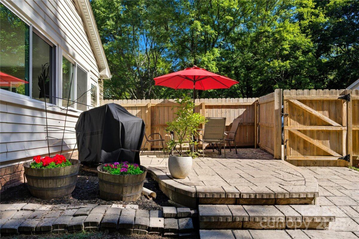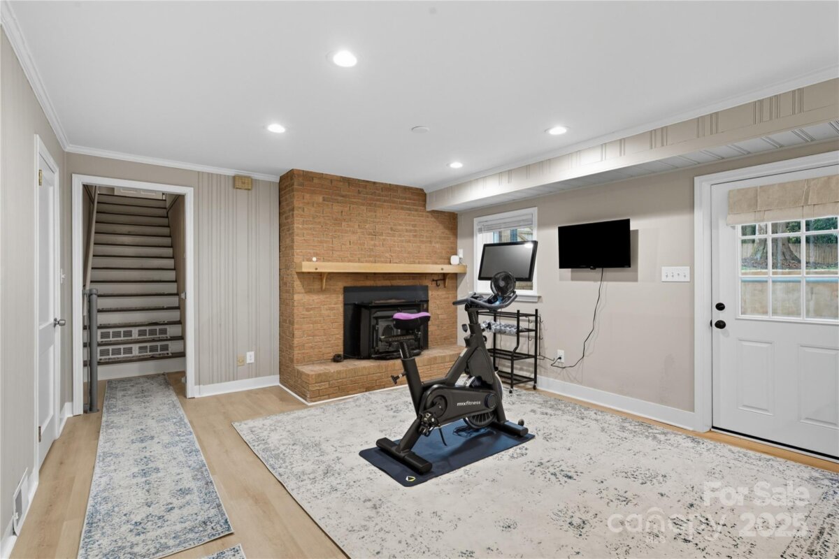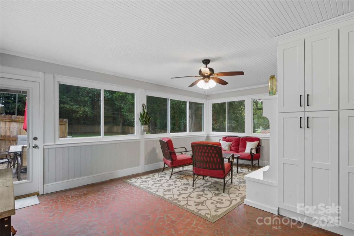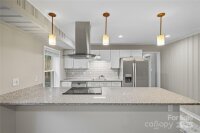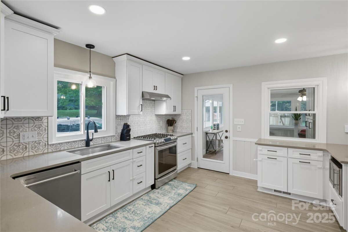 Beautifully updated and exceptionally spacious ranch in sought-after Woodberry Forest! This home offers incredible flexibility for a large family or multi-generational living. With 5 bedroom, 3 full bathrooms, and two complete living areas, this home combines modern updates with a thoughtful layout that provides both comfort and privacy. The main level features 3 bedrooms and 2 updated bathrooms, including a primary suite with a gorgeous tiled shower and double vanities with tons of storage. The updated kitchen includes quartz countertops, stainless appliances, an abundance of cabinetry, and easy flow to the dining and living areas, creating a warm and welcoming space for everyday living and entertaining. Gleaming hardwood floors run throughout the main level, and a large heated and cooled sunroom provides additional living space perfect for relaxing, working, or hosting gatherings year-round. The finished basement functions like a second home. It includes 2 bedrooms, a full bath, and a 2nd kitchen complete with granite countertops, stainless appliances, lots of storage, and is open to the 2nd den with fireplace. This lower level offers a separate entrance for privacy as well as interior access, making it ideal for in-laws, extended family, guests, or rental income. Set on a spacious 0.6 acre lot, the property features a privacy fence, two patios, and plenty of room for pets, outdoor entertaining, gardening, or play. The detached double carport includes two storage rooms and the oversized driveway provides ample parking for multiple vehicles. Located in the desirable Woodberry Forest neighborhood, this home combines size, versatility, and modern updates in a convenient Charlotte location. With its flexible layout, two living areas, and inviting outdoor space, it's perfect for those seeking comfort, functionality, and value. New Trane HVAC in 2024, new retaining wall by driveway in 2024, whole home dehumidifier 2024, new siding and gutters 2024, upstairs bathrooms remodeled in 2024, main level kitchen remodel in 2020, and many more updates. Don't miss this rare opportunity to own a beautifully updated ranch with endless possibilities for multi-family living in one of Charlotte's most popular communities!