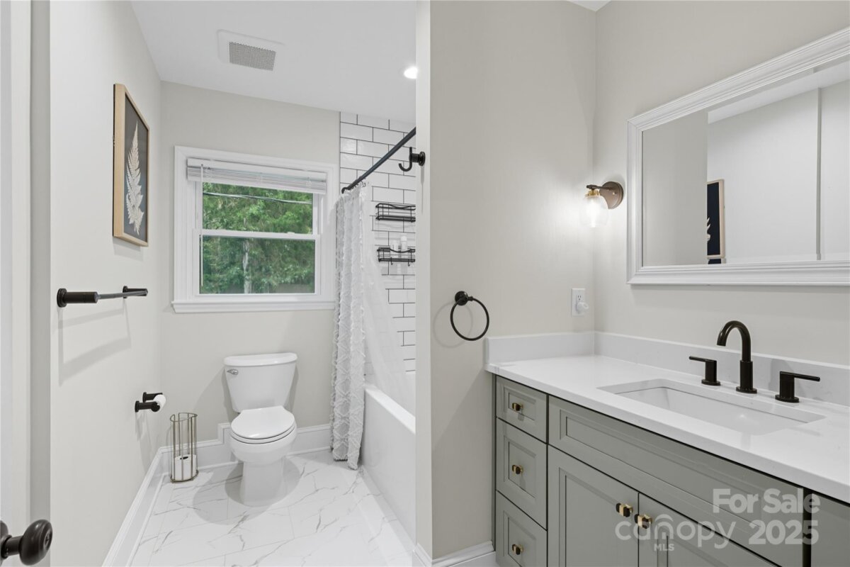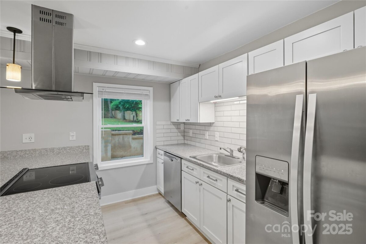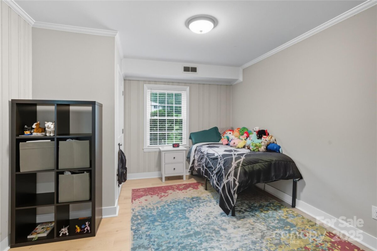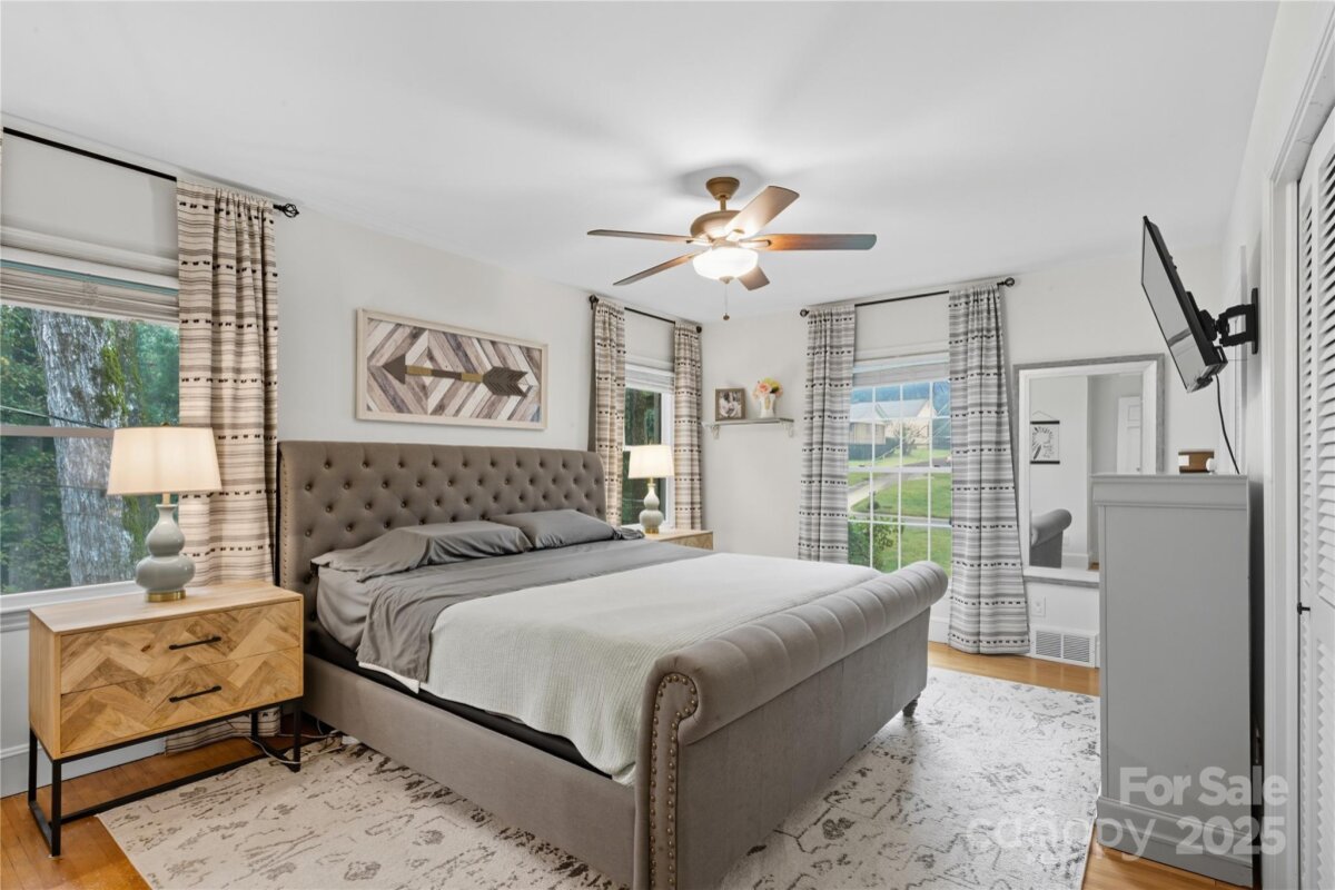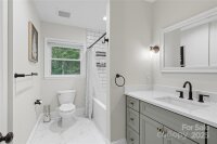 Beautifully updated and exceptionally spacious ranch in sought-after Woodberry Forest! This home offers incredible flexibility for a large family or multi-generational living. With 5 bedroom, 3 full bathrooms, and two complete living areas, this home combines modern updates with a thoughtful layout that provides both comfort and privacy. The main level features 3 bedrooms and 2 updated bathrooms, including a primary suite with a gorgeous tiled shower and double vanities with tons of storage. The updated kitchen includes quartz countertops, stainless appliances, an abundance of cabinetry, and easy flow to the dining and living areas, creating a warm and welcoming space for everyday living and entertaining. Gleaming hardwood floors run throughout the main level, and a large heated and cooled sunroom provides additional living space perfect for relaxing, working, or hosting gatherings year-round. The finished basement functions like a second home. It includes 2 bedrooms, a full bath, and a 2nd kitchen complete with granite countertops, stainless appliances, lots of storage, and is open to the 2nd den with fireplace. This lower level offers a separate entrance for privacy as well as interior access, making it ideal for in-laws, extended family, guests, or rental income. Set on a spacious 0.6 acre lot, the property features a privacy fence, two patios, and plenty of room for pets, outdoor entertaining, gardening, or play. The detached double carport includes two storage rooms and the oversized driveway provides ample parking for multiple vehicles. Located in the desirable Woodberry Forest neighborhood, this home combines size, versatility, and modern updates in a convenient Charlotte location. With its flexible layout, two living areas, and inviting outdoor space, it's perfect for those seeking comfort, functionality, and value. New Trane HVAC in 2024, new retaining wall by driveway in 2024, whole home dehumidifier 2024, new siding and gutters 2024, upstairs bathrooms remodeled in 2024, main level kitchen remodel in 2020, and many more updates. Don't miss this rare opportunity to own a beautifully updated ranch with endless possibilities for multi-family living in one of Charlotte's most popular communities!