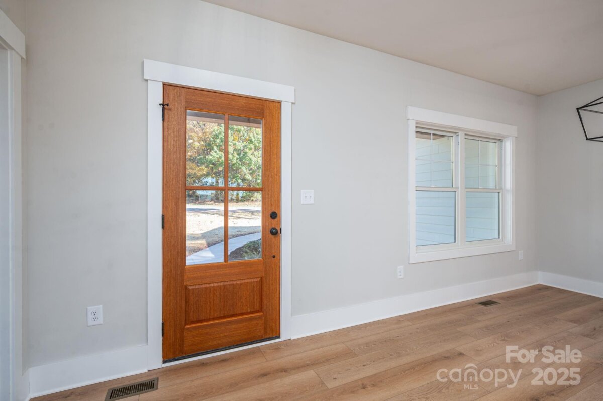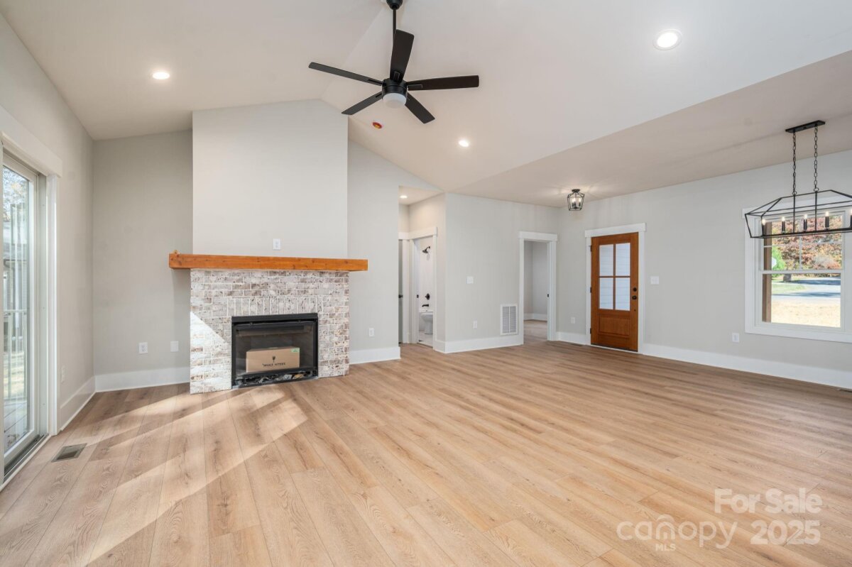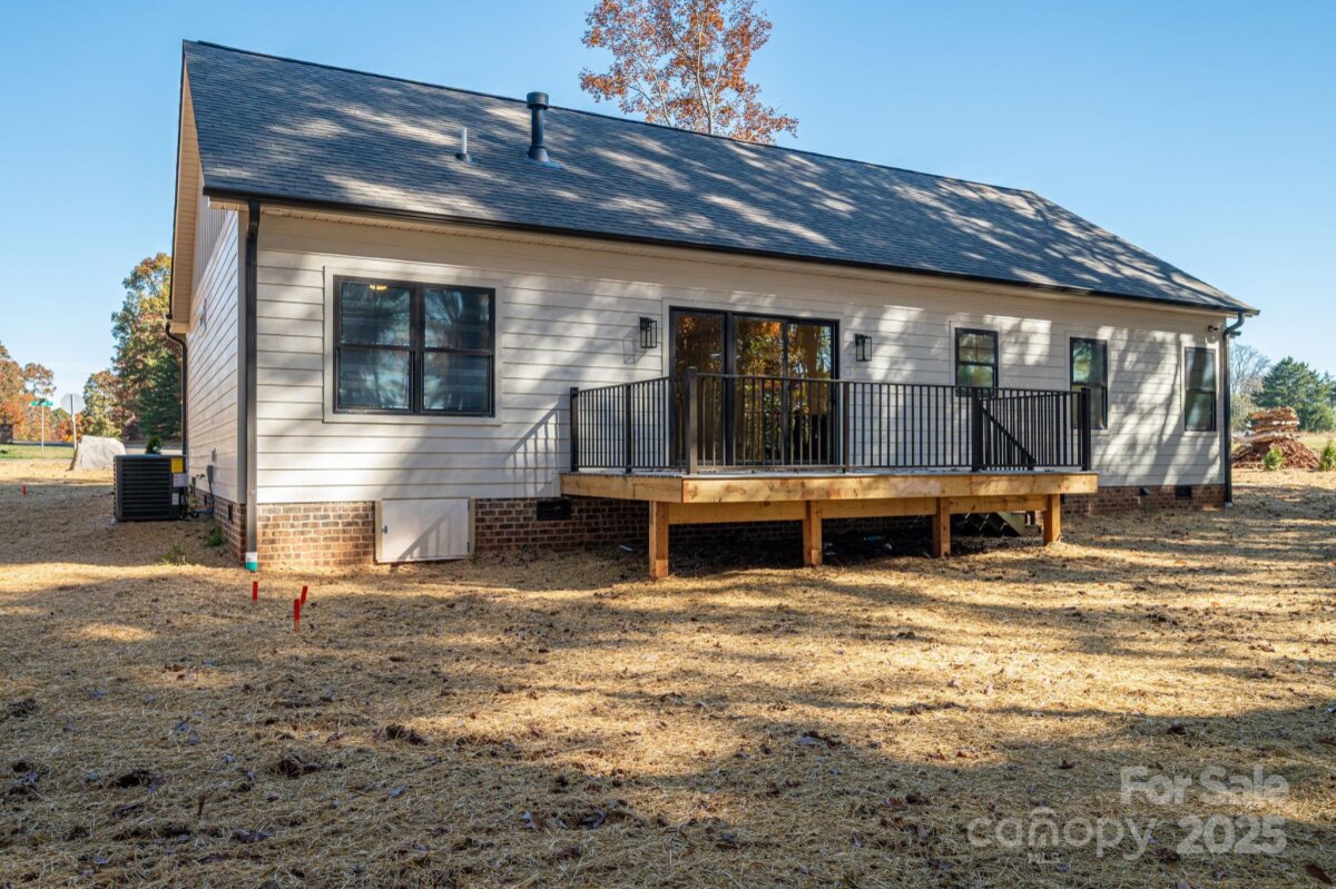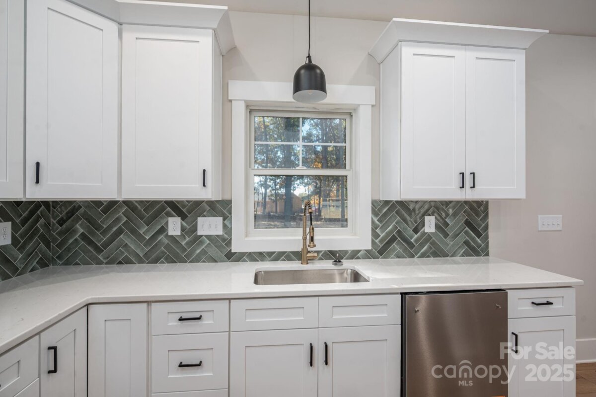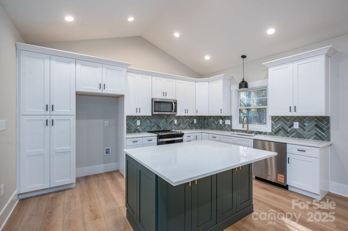 Fall in love with this spacious Custom-built new construction ranch home. You are greeted with a welcoming front porch with cedar accents and a beautiful wood 3/4 glass entry door. This beautiful home offers an open floor plan with split bedrooms. The spacious kitchen has lots of storage with white shaker cabinets on the perimeter and a stunning green colored island, paired with beautiful Quartz countertops and an elegant green herringbone laid backsplash. The floors are durable luxury vinyl in the living areas and bedrooms, and gorgeous tile in both bathrooms. The home offers a mud room/drop zone with built-ins upon entry from the garage and the laundry room conveniently located beside. The Primary Bedroom has a large closet with custom-built closets. The primary bathroom has double sinks and beautiful tile on the walls of the shower. The living room has vaulted ceilings that enhance the size of the room. The windows are upgraded Andersen windows. You will love spending time on the deck which is constructed with composite decking and aluminum railings for low maintenance living. Beautiful landscaping tops this home off as a must see.