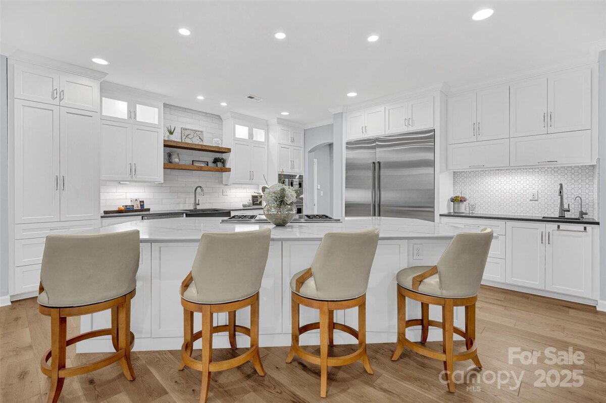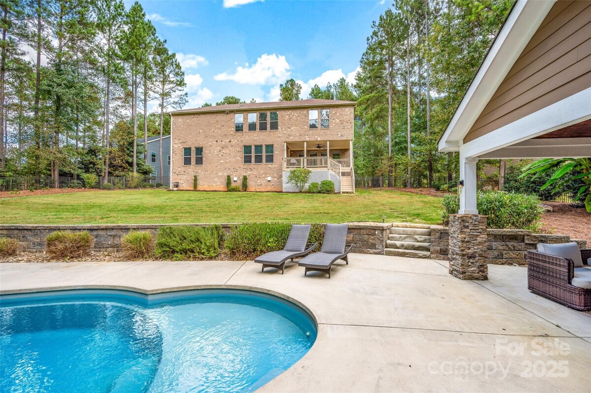 Experience refined elegance and effortless living in this stunning full-brick home accented with timeless stonework, beautifully situated on a 1.2-acre resort-inspired lot with salt water pool! From the welcoming covered porch to the manicured landscaping, every space reflects thoughtful design and sophistication. Inside, rich hardwood floors lead to a showstopping chef’s kitchen featuring crisp white cabinetry, quartz countertops, a Wolf range, Sub-Zero refrigerator and freezer, and an oversized island perfect for entertaining! The main level offers a guest suite or home office with a full bath and nearby laundry, plus a custom drop zone off the garage for everyday convenience. Upstairs, the spacious primary retreat boasts a spa-like bath with soaking tub, oversized tile shower, and dual vanities. A versatile loft with built-ins, three additional bedrooms, two full baths, and a second laundry complete the upper level. Outdoors, a heated saltwater pool anchors the lush, landscaped backyard surrounded by mature trees and vibrant seasonal plantings—creating a private oasis for year-round enjoyment. The covered pool house with outdoor shower and shaded lounge area offers the perfect spot for al fresco dining or quiet relaxation, while the firepit patio invites evenings under the stars. Located in a sought-after community of Bells Crossing with a neighborhood pool, clubhouse, and tennis courts, this home perfectly blends elegance, comfort, and lifestyle—just minutes from Stumpy Creek Lake Access and Lake Norman State Park!
