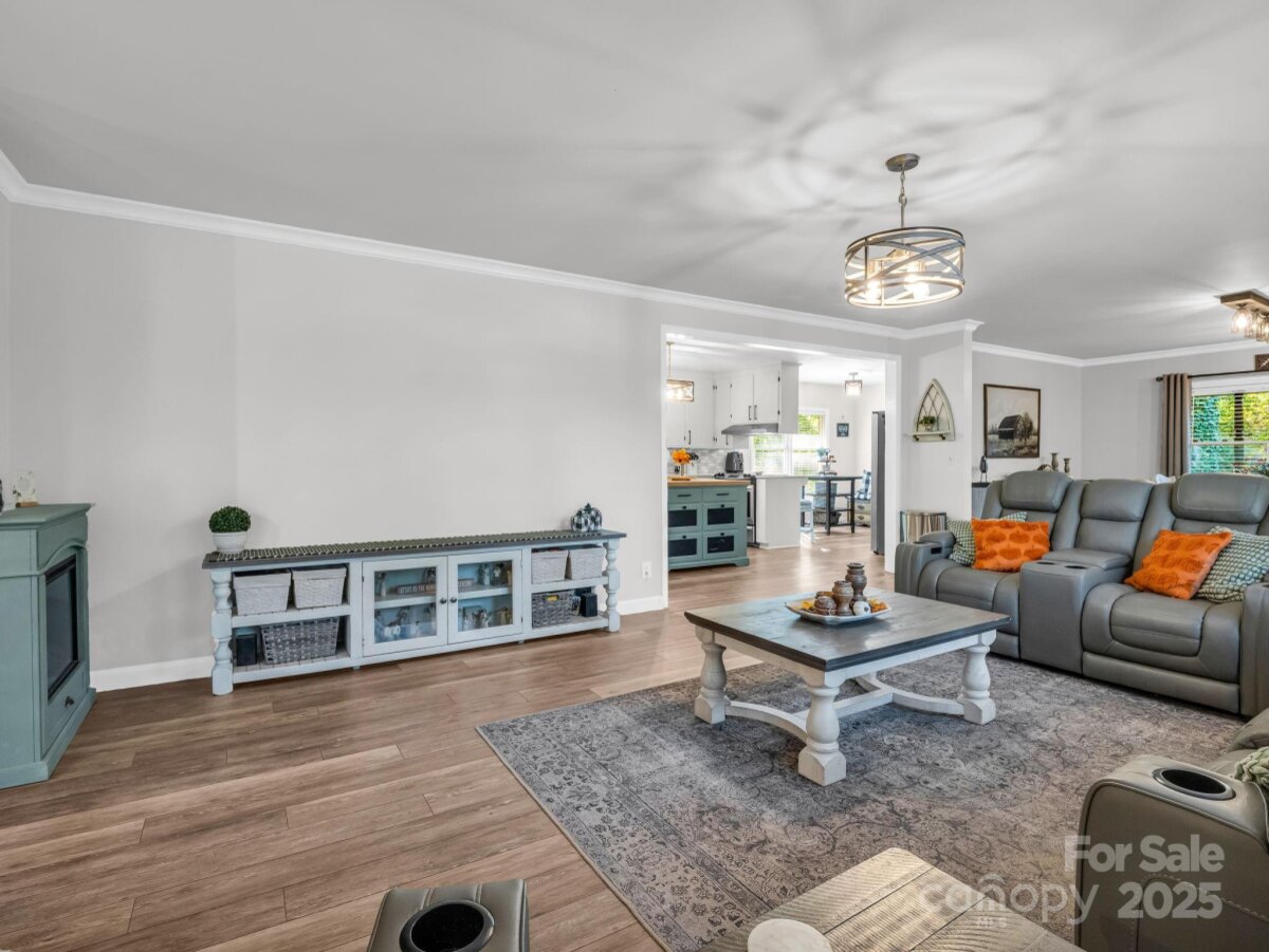 Welcome to your dream retreat — a spacious, all-brick multigenerational ranch nestled on over 6 acres of serene countryside! This beautifully maintained home offers 6 bedrooms, 3 full bathrooms with tile showers with spa-like features , and an abundance of living and storage space, making it perfect for large families or multi-family living. Upstairs features 3 bedrooms and 2 full baths, along with an updated kitchen boasting stunning quartz countertops and modern finishes. A cozy flex room with gas logs offers endless possibilities — use it as a home office, library, playroom, or guest space. Downstairs, the fully finished basement provides even more versatility, with 3 additional bedrooms, a full bath featuring dual vanities, and a second immaculate kitchen that rivals the one upstairs — ideal for in-laws, guests, or rental potential. And there’s more — all appliances stay, making this a true move-in-ready home. Outside, you'll enjoy just over 6 acres of land for privacy, gardening, entertaining, or even small livestock. Whether you're seeking space, flexibility, or peaceful country living, this unique property has it all. Don't miss your chance to own this one-of-a-kind home that checks every box!