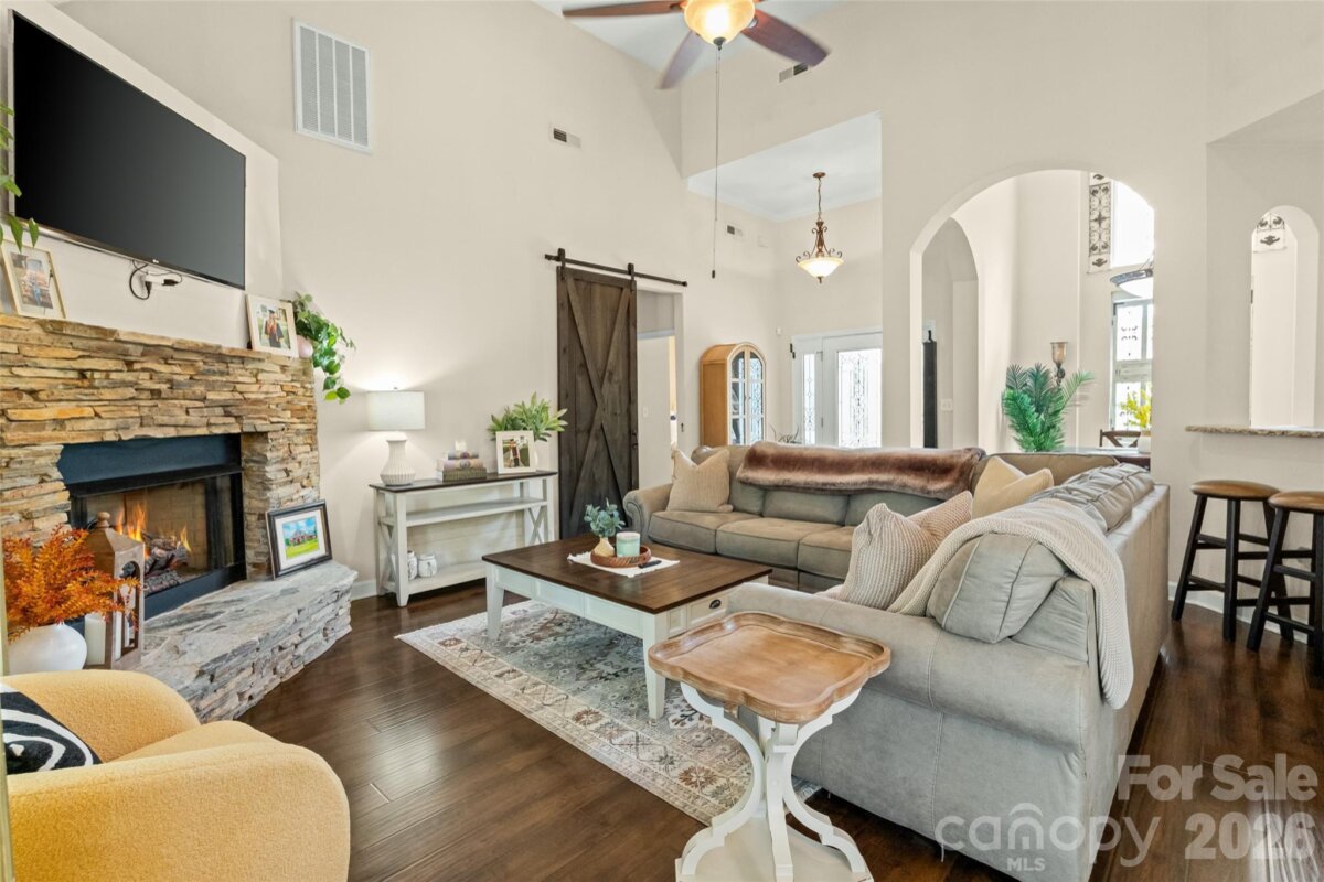 Step into comfort and style with this beautifully designed home featuring 3 bedrooms and 2.5 baths. The inviting living room showcases a stunning stone fireplace, creating the perfect focal point for cozy evenings. A spacious dining area flows seamlessly for everyday living and entertaining. New side by side stainless steel Whirlpool refrigerator and brand new washer and dryer can convery with the home. Upstairs, a versatile loft area offers additional space ideal for a home office, media room, or play area. The double garage provides ample storage and convenience. Enjoy relaxing mornings on the covered front porch, and unwind in the amazing outdoor living space complete with a fireplace and surround sound—perfect for entertaining or quiet nights at home.