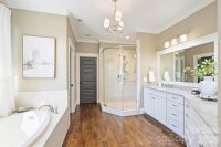 Custom-built by Grandfather Homes and ideally located just off Queens Road in the historic Cherry neighborhood, this stunning home offers quality craftsmanship, thoughtful design, and one of the best in-town locations in Charlotte! An inviting front porch opens to a spacious dining room and expansive main living area with hardwood floors and high ceilings. The chef’s kitchen features an oversized custom butcher block island with seating, Thermador appliances, gas range, farmhouse sink, and abundant prep space. It flows seamlessly into the family room and out to a spacious covered deck overlooking the level backyard fully fenced for privacy. Upstairs, the primary suite features hardwood floors, a decorative ceiling, and a beautifully appointed bath with soaking tub, glass shower, and dual vanities. Three additional bedrooms include generous walk-in closets, one with a private en suite bath and two connected by a Jack-and-Jill bath. The third-floor bonus room offers flexible space for a playroom, office, workout area, or additional storage. The full walk-out basement with 9-foot ceilings is designed for entertaining, complete with a media room, high-top table area, wet bar with beverage fridge, luxury vinyl plank flooring, and a private guest suite with full bath. Just steps to Little Sugar Creek Greenway, enjoy stunning skyline views while walking or biking to Trader Joe’s, The Metropolitan, Kings Drive Farmers Market, Atrium and Novant hospitals, uptown Charlotte, restaurants, and neighboring Myers Park. Easy access to I-277 makes commuting simple. Be a party of history by living in one of Charlotte's oldest neighborhoods! Quality construction. Exceptional location. Move-in ready!