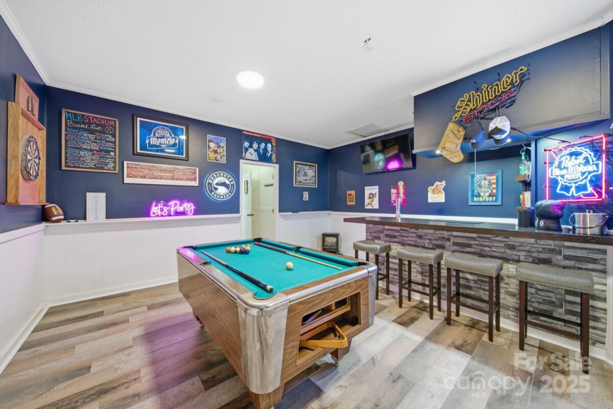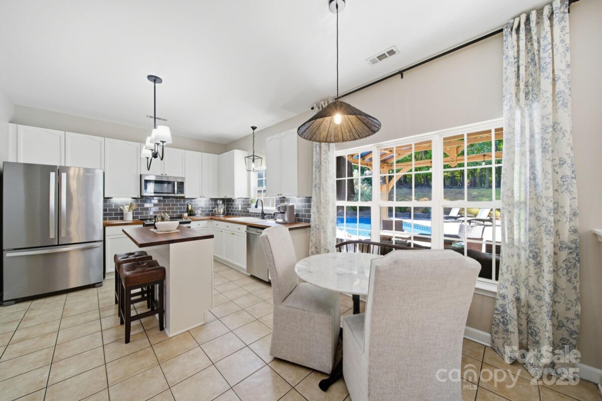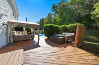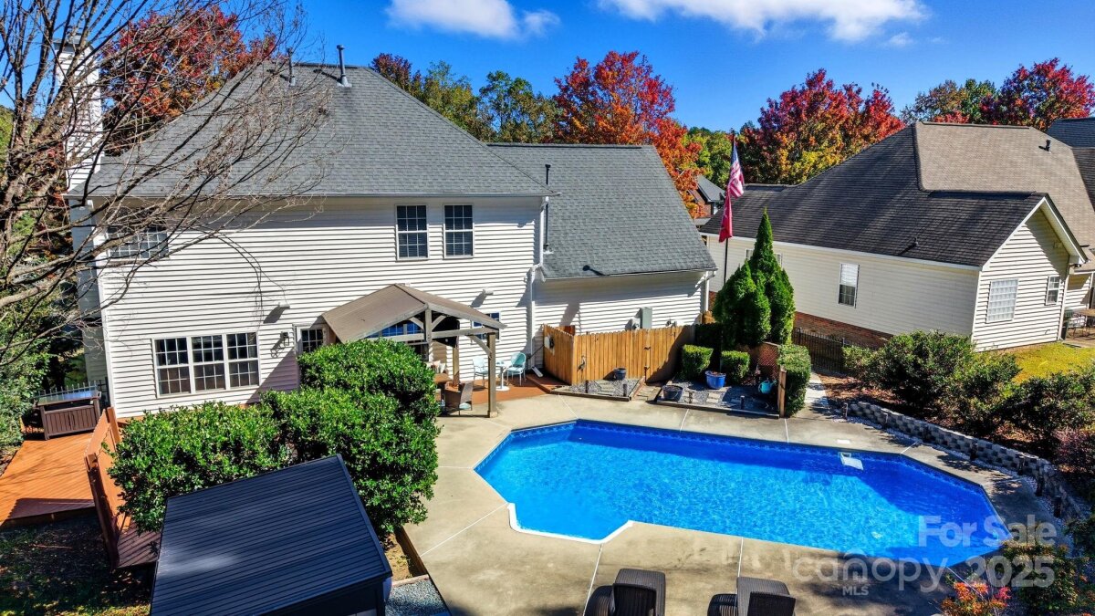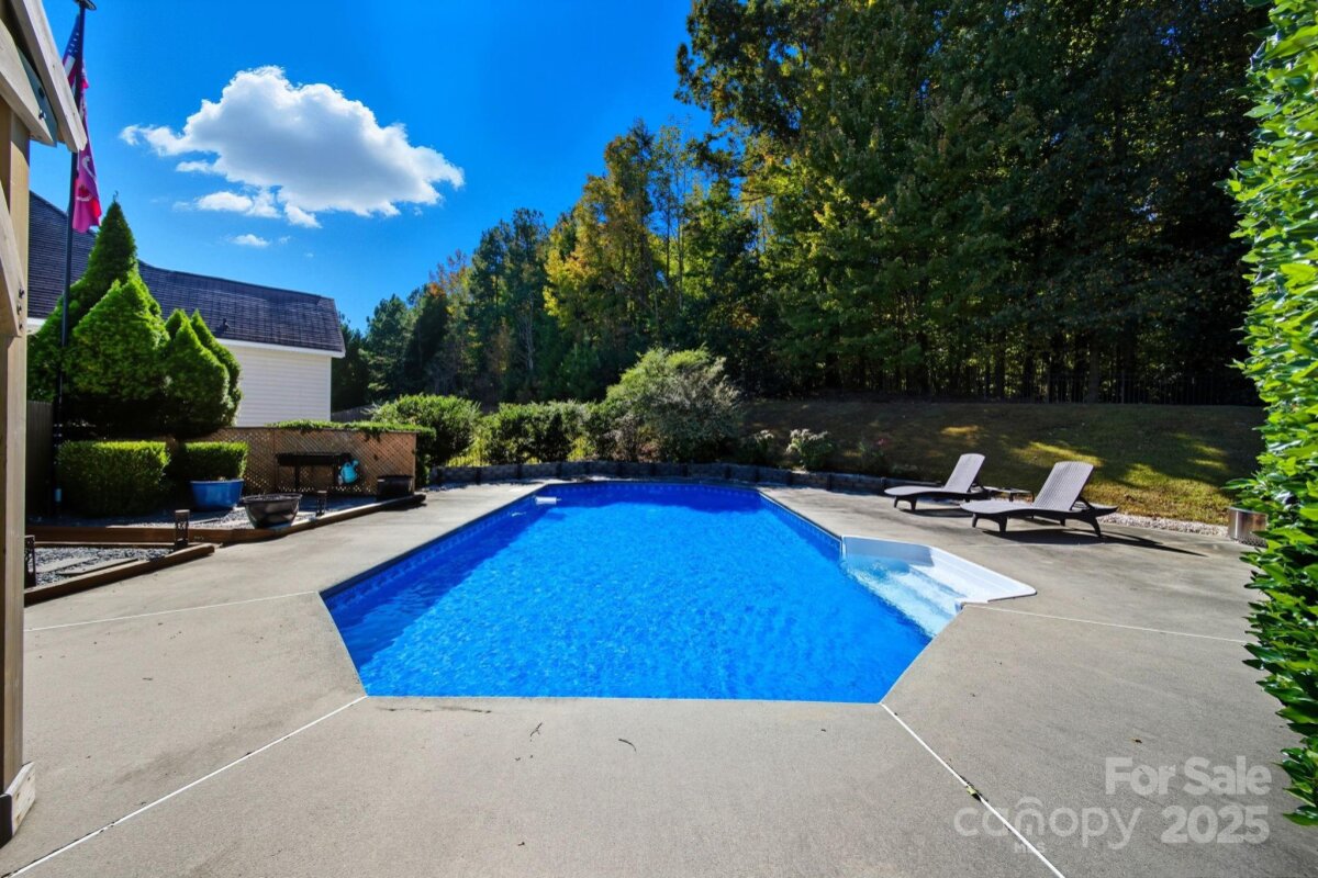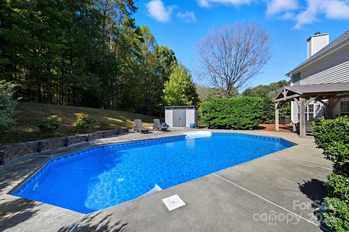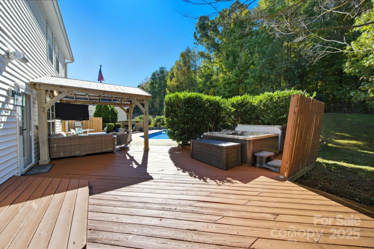 Lovely Matthews home, thoughtfully designed for those who love to entertain! Inviting open floor plan with seamless flow throughout the main level living spaces. The kitchen has been beautifully updated w/ butcher block countertops, a stylish tile backsplash, stainless steel appliances, and modern overhead lighting. Pantry w/appliance shelf & plenty of storage. Brand new flooring & paint on the main level. Family room offers a gas fireplace with mantel. Upstairs, the large primary suite offers a refreshed bathroom with tile, a sleek glass-enclosed shower & a generous walk-in closet. Three additional bedrooms and a bed/bonus room provide plenty of space for everyone. Two of the bedrooms have been combined to create an ideal workspace —perfect for remote work or creative projects. The bed/bonus room is oversized, offering endless possibilities for a playroom, gym, or media room. Step outside and discover the true showpiece of this home—a backyard built for fun and relaxation with privacy! Enjoy the deck with gazebo leading to a sparkling in-ground saltwater pool with a recently updated liner( 2022) and a Wi-Fi-controlled pump system(2024). Unwind in the hot tub (2021), or gather with friends and watch the game on the outdoor TV under the gazebo. You can also move the party to the rec room/entertainment space, complete with multiple TV options and a pool table for the ultimate game-day setup. Home backs to wooded area for added privacy. This home is easily accessible to Downtown Matthews - Squirrel Lake Park located just outside of the neighborhood with access to the greenway trails, pond, disc golf and playground makes this homes location a true gem. This home has been lovingly maintained and offers the perfect combination of comfort, style, and entertainment. Don’t miss your chance to make it yours!