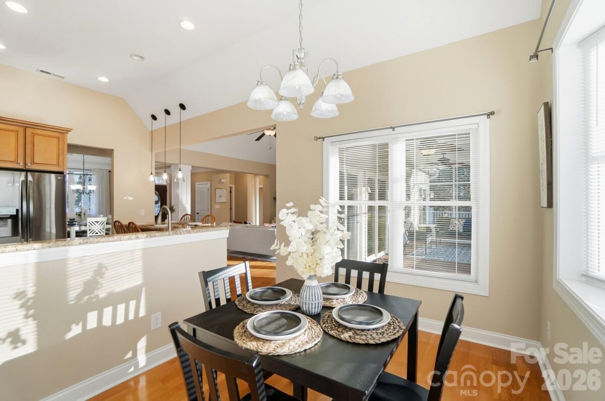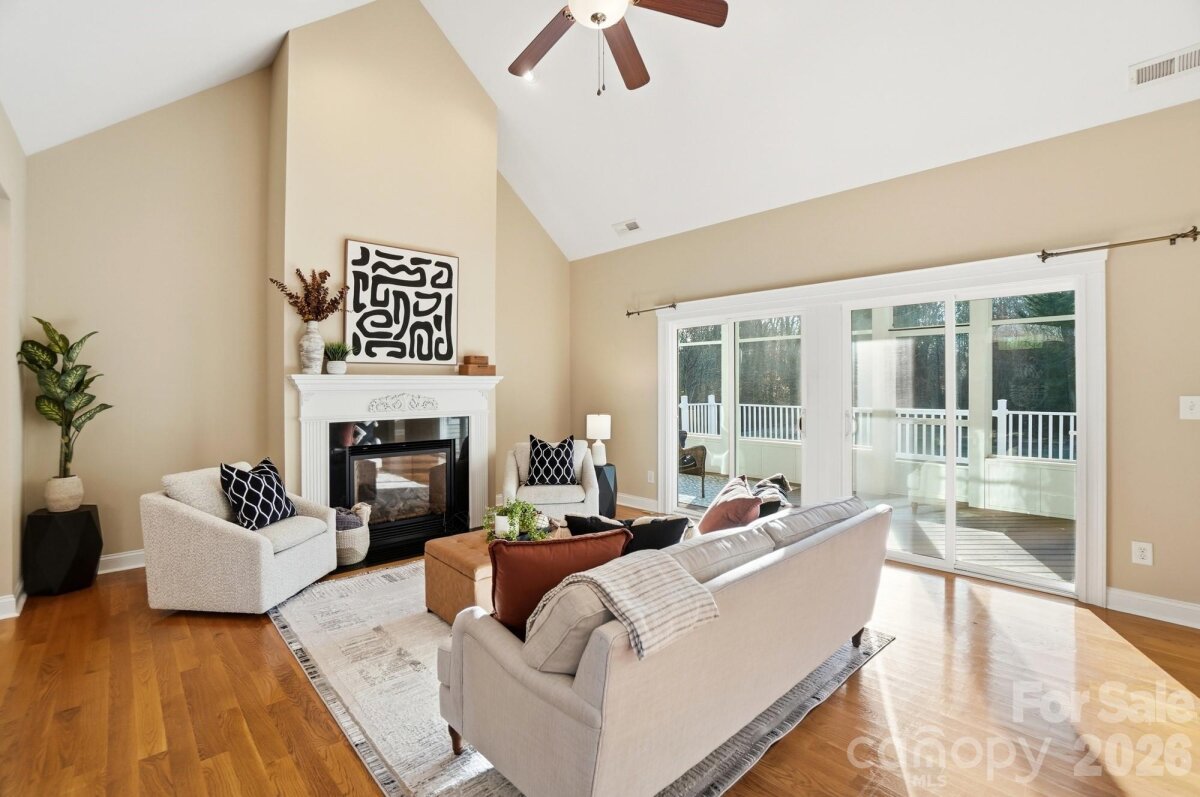 Welcome home to this beautifully maintained 3-bedroom, 2-bath property located on a quiet road in desirable Midland, NC, set on a private and level 2.22-acre lot. Fresh paint throughout highlights the open and inviting layout, perfect for both everyday living and entertaining. The living room features vaulted ceilings, hardwood floors, crown molding, and a propane fireplace (not recently used), creating a warm and welcoming atmosphere. Sliding glass doors lead to a large screened-in back porch overlooking the deck and expansive backyard, offering seamless indoor-outdoor living. The kitchen is thoughtfully designed with granite countertops, a tiled backsplash, ample cabinetry, and a large peninsula with additional storage. A spacious pantry adds convenience, and the kitchen comes equipped with an electric range, microwave, dishwasher, and refrigerator. The adjacent dining room showcases tray ceilings and classic chair railing, ideal for hosting gatherings. The primary bedroom is a peaceful retreat featuring tray ceilings, hardwood floors, and his-and-her closets, along with private access to the deck. The ensuite bathroom is finished with tile flooring. Two additional bedrooms and a second full bath with tile flooring provide comfortable accommodations for family or guests. A main-level flex room offers versatility and would make an excellent home office or guest space. Upstairs, the unheated bonus room provides great potential for additional living or recreational space with the addition of a heat source. Additional features include central vacuum, wiring for a whole-home generator, hardwood floors throughout the main living areas, tile in the bathrooms, and a level, private backyard ideal for relaxing or entertaining. This beautiful property offers space, privacy, and flexibility in a peaceful setting—truly a must-see!