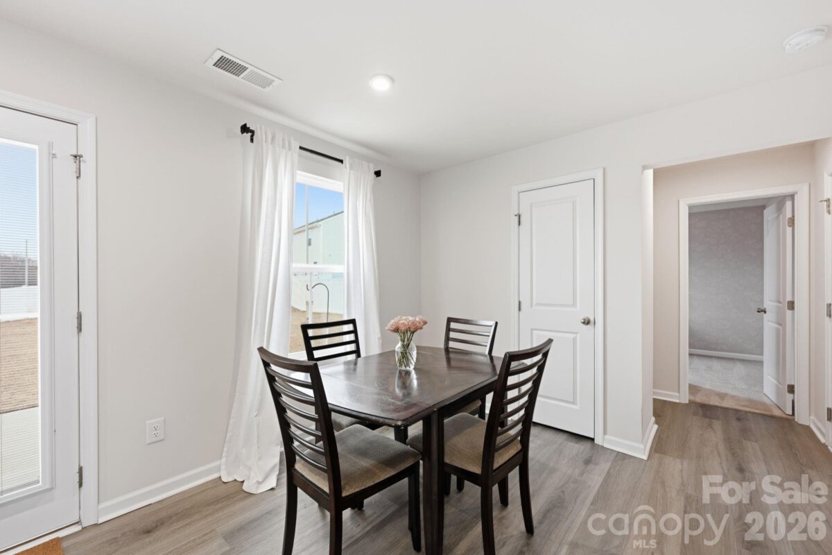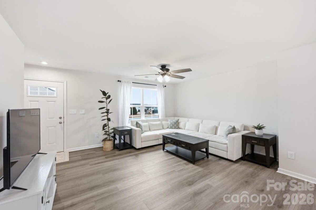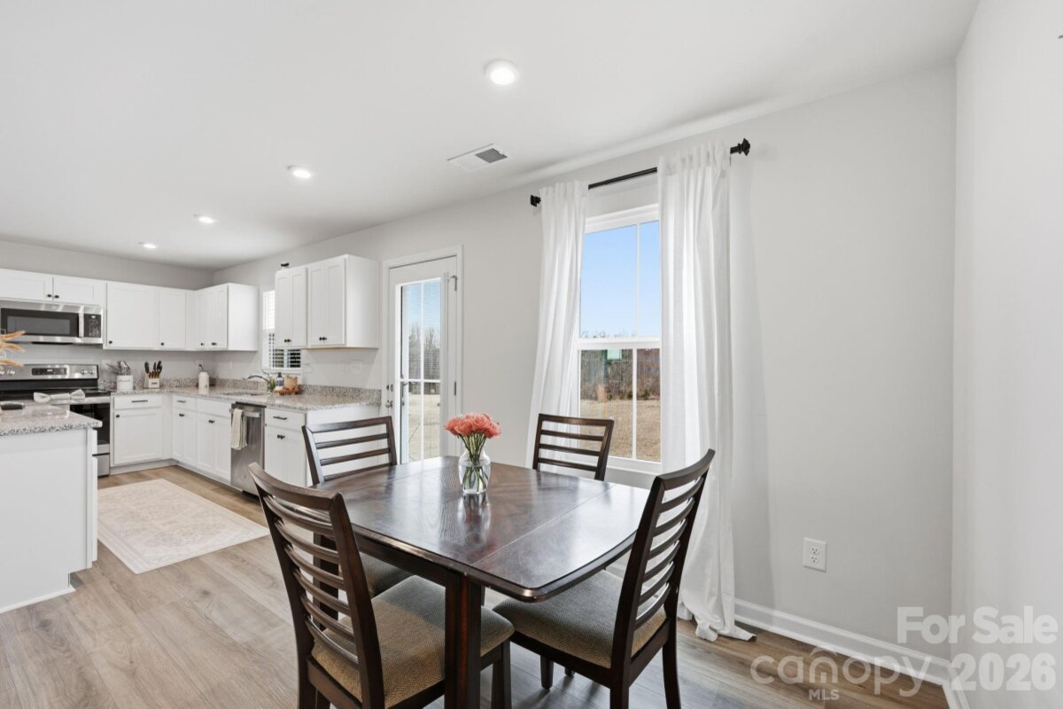 Modern 4-Bedroom Home – Move-In Ready & Full of Upgrades! this very well-kept home offers suburban neighborhood feel combined with prime location walking distance to the brand new food lion right off of exit 42. The main level features great natural lighting, LVP flooring throughout, a spacious living area, and an open-concept layout ideal for everyday living and entertaining. The kitchen boasts high quality cabinets, granite counter tops (with tons of space), a pantry, and an oversized island with room for bar stools-great for entertaining . A flex room or office on the main level provides additional versatility. Upstairs, the primary suite offers a large walk-in closet and private bathroom. Three additional bedrooms—two with walk-in closets—provide plenty of space for family or guests. The upstairs laundry room is conveniently located near the primary for maximum functionality. The spacious-flat backyard features no homes directly behind it. Being almost brand new enables the peace of mind of not having to tend to big ticket items for a long time! Turnkey and move-in ready—this is the perfect blend of comfort, modern design, and long-term value.