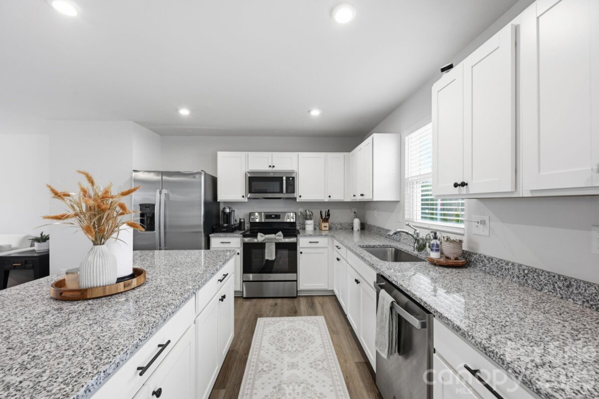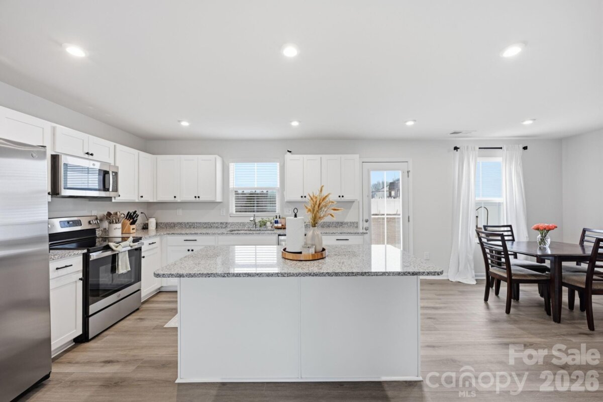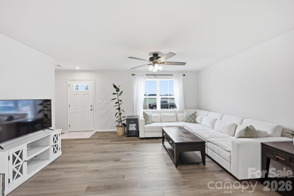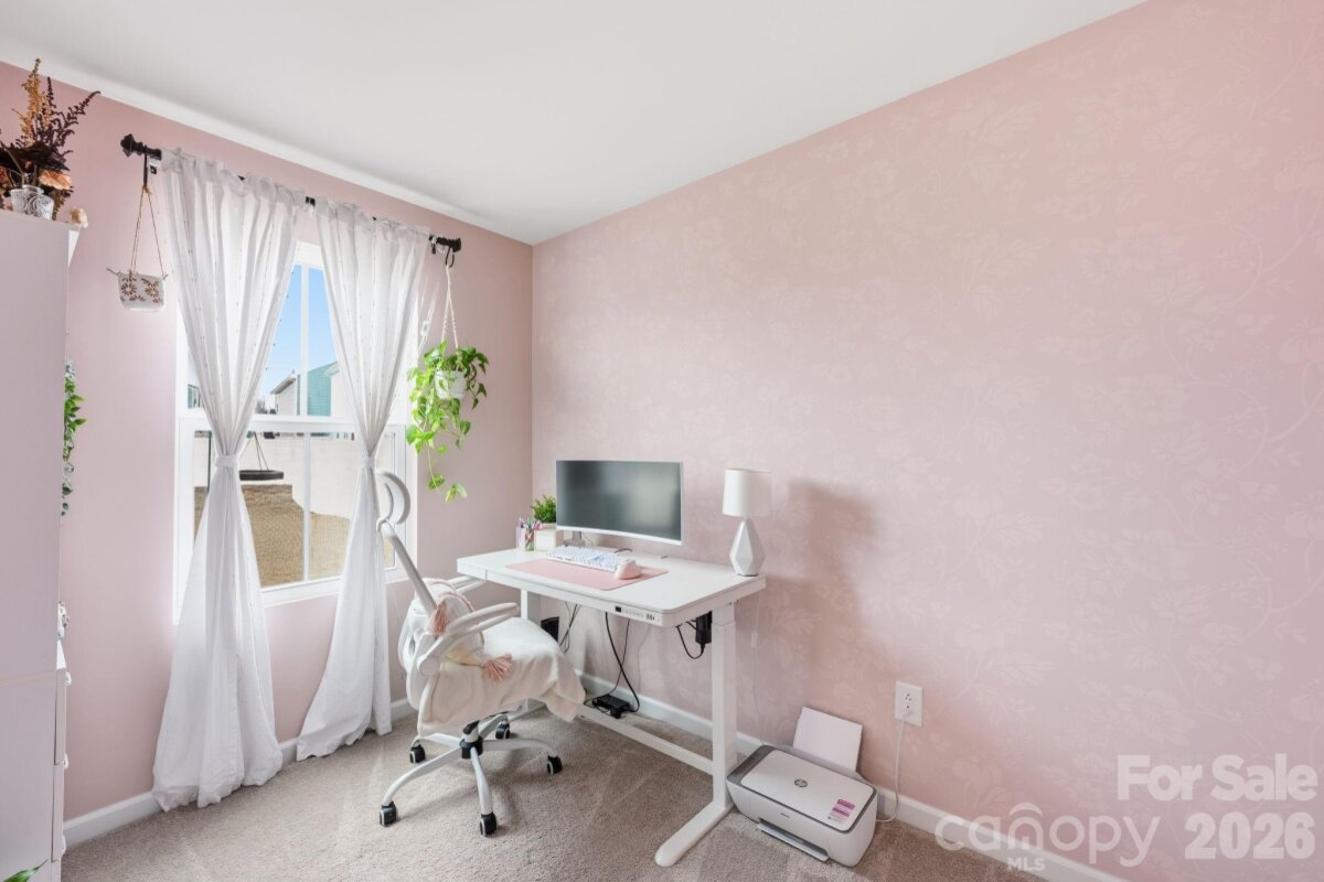 Modern 4-Bedroom Home – Move-In Ready & Full of Upgrades! this very well-kept home offers suburban neighborhood feel combined with prime location walking distance to the brand new food lion right off of exit 42. The main level features great natural lighting, LVP flooring throughout, a spacious living area, and an open-concept layout ideal for everyday living and entertaining. The kitchen boasts high quality cabinets, granite counter tops (with tons of space), a pantry, and an oversized island with room for bar stools-great for entertaining . A flex room or office on the main level provides additional versatility. Upstairs, the primary suite offers a large walk-in closet and private bathroom. Three additional bedrooms—two with walk-in closets—provide plenty of space for family or guests. The upstairs laundry room is conveniently located near the primary for maximum functionality. The spacious-flat backyard features no homes directly behind it. Being almost brand new enables the peace of mind of not having to tend to big ticket items for a long time! Turnkey and move-in ready—this is the perfect blend of comfort, modern design, and long-term value.