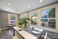 Midcentury split-level home ideally located between NoDa and Plaza Midwood in the popular Country Club Heights neighborhood. The fantastic, partially fenced backyard is a true retreat, featuring thoughtfully cultivated perennial flowers, fruit trees, and Japanese maples, a hot tub, and a charming outdoor entertainment space perfect for relaxing or hosting gatherings. The versatile floor plan offers flexible living options, including the potential for a 4th bedroom with a massive closet or a bonus room and office on the lower level. The fully renovated kitchen showcases glossy white cabinetry, stainless appliances, soft gold hardware and lighting, and a stylish tile backsplash. Enjoy casual meals at the dine-in breakfast bar or entertain through the pass-through to the dining area, which features heated floors and French doors opening to the backyard oasis. The lower level includes a laundry and mudroom with new cabinetry, laundry sink, and convenient folding station. An almost-700 SF detached garage offers pull-down stairs to loft storage, plus a workshop with mini-split HVAC, making it ideal for projects or year-round use. Recent updates and smart features include a new roof and waterproofed decking (2019), encapsulated and conditioned crawlspace, Ecobee thermostat, and Lutron lighting system on the main level.