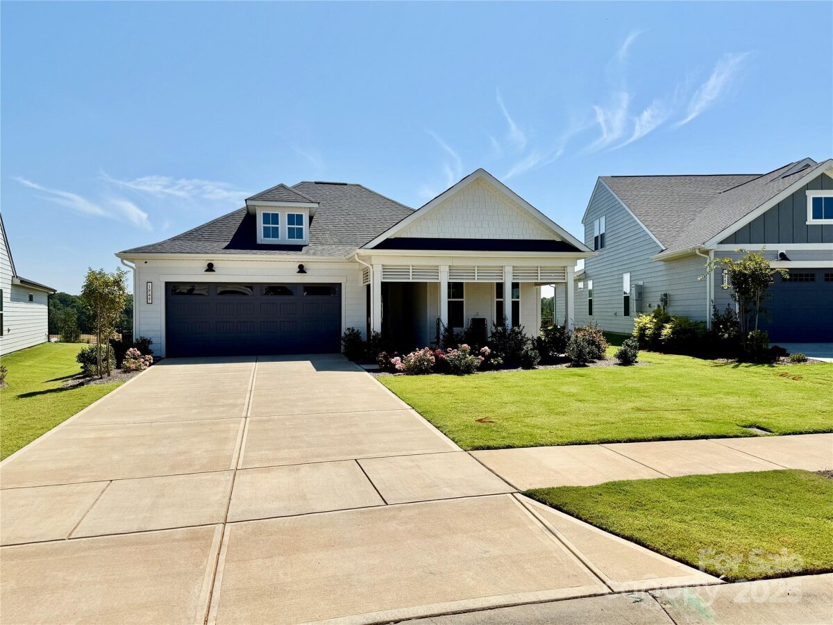 Beautiful ranch home which is not even one year old. Open Concept with gourmet kitchen and huge island and pantry. Since the sellers purchase the upgrades include shiplap in the family room and half bathroom, rear yard being fenced, custom trim work and epoxying the oversized garage. The primary bedroom's bath has a zero entry spa like shower that is amazing. This 2 bedroom 2.5 bathroom has an additional office/flex room with French doors. Off the kitchen relax in your sunroom which opens to a covered porch or step out to your rocking chair covered front porch to relax. This light and bright Prestige Home is one of the larger floor plans in its collection with custom moldings throughout. This lot is approximately .23 acre and is one of the larger lots in its collection. Carolina Riverside is an amazing 55+ community , with a 19,000 square foot clubhouse being constructed with indoor and outdoor pool, pickleball, bocce courts, dog park, pocket parks and walking trails. Nearby quaint downtown Belmont. Close to Charlotte Douglass Airport, Catawba River and more.