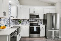 Beautiful single story, 3 bed, 2 bath home located in the desirable Lakeridge neighborhood offering both tranquility and convenience. This home was lovingly renovated with new kitchen cabinetry, stainless appliances, quartz counters, LVP flooring throughout and upgraded bathroom vanities, and fixtures. A gorgeous new shower was just added in the primary bathroom. The secondary bathroom offers a tub / shower combo. This charming ranch home sits on a HUGE .63 acre lot at the end of a cul de sac. The yard backs up to trees and is a nature lover's delight. Enjoy watching birds and wildlife from your back deck. NO HOA restrictions so you can store your boat or RV in the spacious side yard, plant a garden and enjoy the privacy and nature around you. The property also features a long driveway with lots of room for parking and an attached 2-car garage with plenty of storage space. You'll love the split floor plan and all the natural light. Located just a short drive from local restaurants and shopping, this home provides easy access to all the amenities you need while offering a peaceful setting to relax in. Very convenient to both 1-77 and 1-40. New roof in 2024! Move in ready!