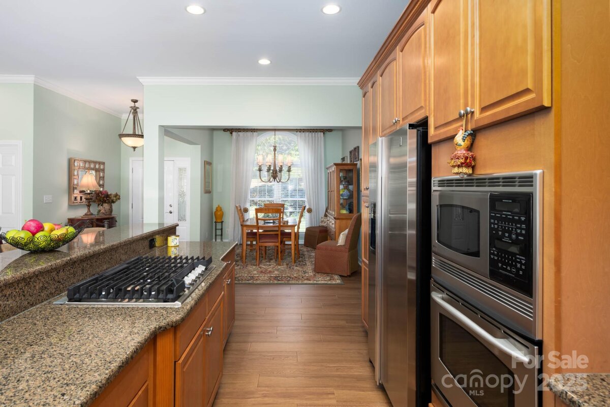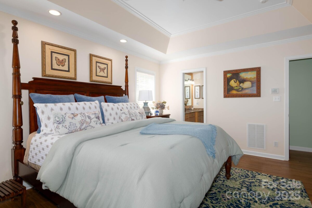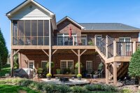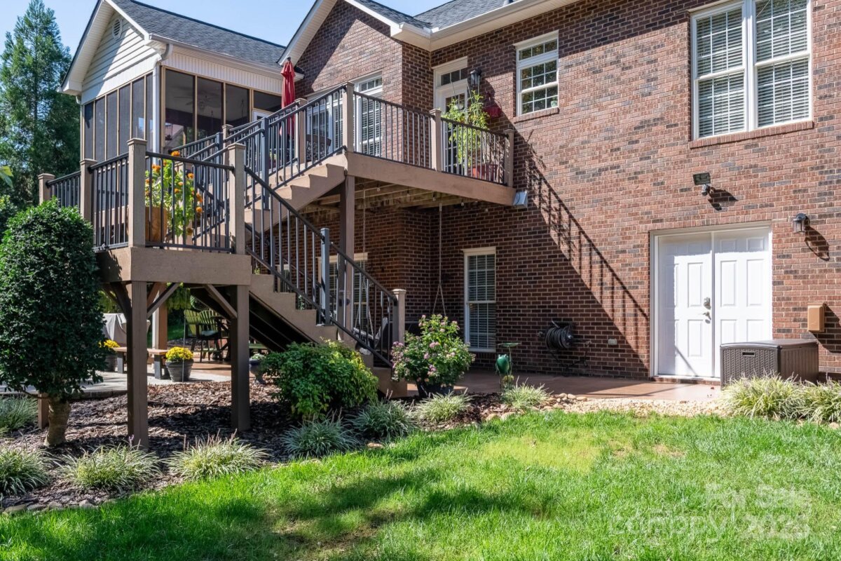 Beautiful custom built brick ranch with full finished basement situated on premium .79acre lot! Featuring an open floor plan and exceptional outdoor living spaces. Kitchen offers granite counters and lots of 42in cabinets, pull out shelves, eat-in large island, gas cooktop & ss appliances including refrigerator; Cozy great room w/gas fp; open dining room; split BR plan; 10ft ceilings; luxury vinyl wood flooring throughout; primary BR has dual sinks, granite, walk-in tile shower and access to screened porch. Full finished basement is a retreat, great for entertaining or can be used as multi generational living....offering a kitchenette, family room, rec room and full bath w/large walk-in tile shower, huge closet, and workshop area. Enjoy the beautifully landscaped yard complete with a Trex deck, patio, and screened porch where you can relax and take in the serene surroundings. Trex bridge over the scenic, dry creek bed to access more of the spacious backyard. Convenient location and access through the neighborhood to the Bellingham Park.