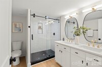 Offered at $799,900, this beautifully renovated 4-bedroom, 4-full-bath home in sought-after Country Club Heights blends modern updates, warm design, and an unbeatable in-town location. Nestled in one of Charlotte’s most desirable close-in neighborhoods, Country Club Heights backs to Charlotte Country Club, widely recognized as the city’s oldest and one of its most coveted private clubs. Often considered a sister neighborhood to Plaza Midwood, the area offers the same beloved sense of character and convenience, with easy access to Center City, nearby shopping, and a wide variety of popular dining, entertainment, and retail destinations. Set on a generous .32-acre lot, this approximately 2,616-square-foot home has been thoughtfully reimagined from the studs in, offering the comfort and peace of mind of extensive recent renovation. Major improvements include a new architectural shingle roof, all new windows, new exterior and interior doors, new plumbing, new electrical, new HVAC, and a tankless water heater. Every detail has been carefully considered to create a home that feels fresh, stylish, cohesive, and truly move-in ready. Inside, natural light pours through large picture windows, enhancing the home’s inviting atmosphere and highlighting the warm, modern finishes throughout. New luxury vinyl wood-look flooring runs seamlessly across both levels, while the living room is anchored by an electric fireplace set against a striking accent wall, creating a comfortable and stylish focal point. Designer-selected finishes are carried beautifully throughout the home, giving each space a cohesive feel while still allowing for special moments that add personality and visual interest. The main level offers an easy, functional flow with living room, dining room, kitchen, three bedrooms, and two full baths. The kitchen has been beautifully renovated with modern shaker-style cabinetry in a warm wood tone, cream quartz countertops, and a custom backsplash, creating a space that feels both clean-lined and welcoming. The main-level primary suite features a private bath with an oversized shower and two closets, offering a comfortable retreat within the home. The fully finished lower level adds exceptional flexibility and expands the home’s appeal even further. Here you’ll find a spacious family room, a large bar area, a separate laundry room, and an open multi-functional space ideal for a media room, home office, fitness area, or playroom. A very large lower-level bedroom with an oversized walk-in closet and a luxurious full bath creates the perfect second primary suite, guest retreat, or private living space. In addition, a separate full bath is located just off the family room and near the French door to the rear yard, making it ideal for a quick shower after working or playing outside. With its spacious and private lower level, the home is especially well-suited for multi-generational living, long-term guests, or those seeking flexible living arrangements. From the dining room, sliding glass doors open to a large deck overlooking a patio and the fenced back yard beyond, creating an easy indoor-outdoor connection for entertaining, relaxing, or everyday enjoyment. A storage building adds additional utility and convenience. Beautifully finished and thoughtfully designed, this is a home where no stone has been left unturned. With its modern yet warm feel, designer style, flexible layout, extensive updates, and prime location in one of Charlotte’s most loved neighborhoods, 2000 Kilbourn Drive offers a rare opportunity to enjoy turnkey living in the heart of the city.