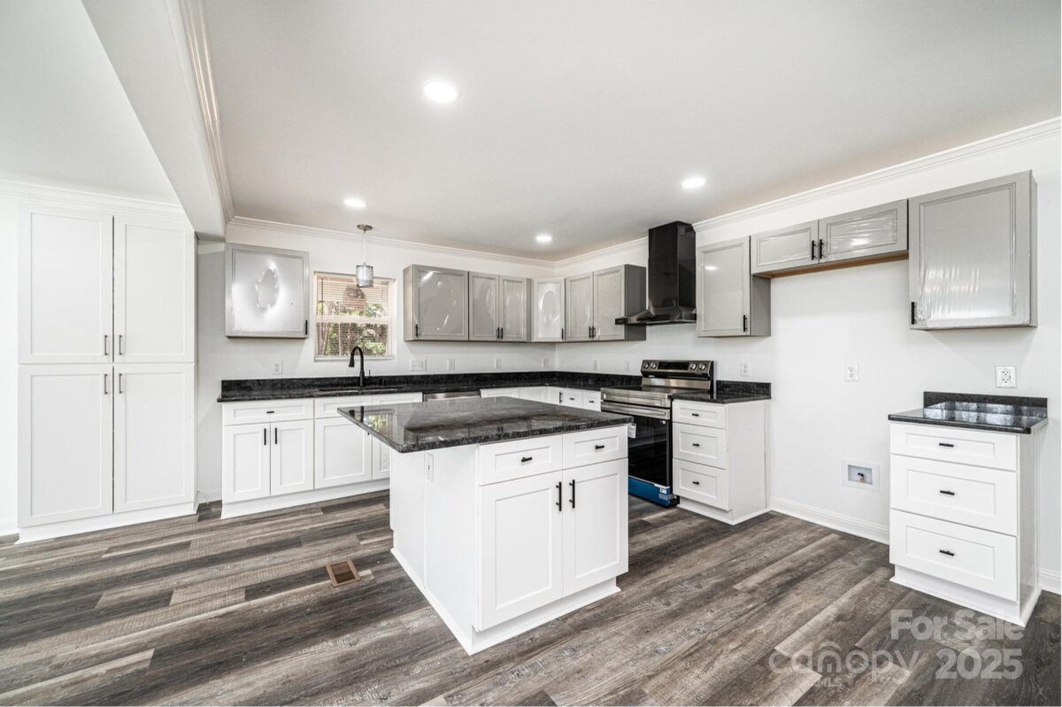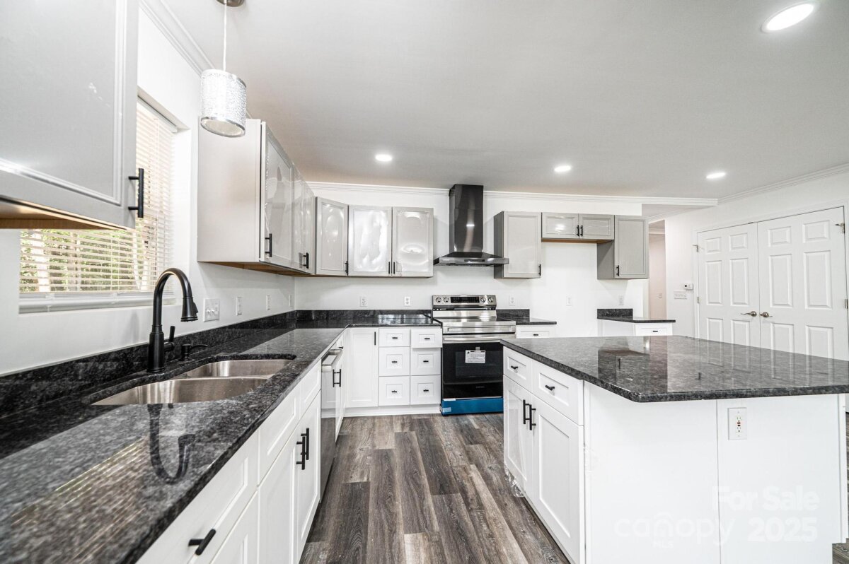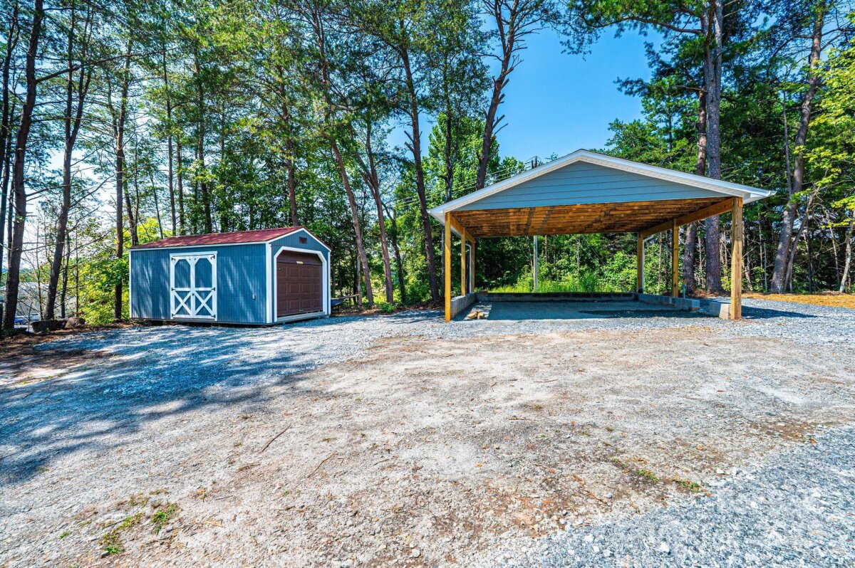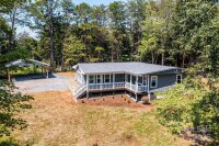 Fall in love with this ADORABLE property! Turnkey mountain ranch home, renovated and expanded to nearly 1,500 sqft without the crazy price! The original structure was updated and a new addition provides a modern, spacious feel. Set on almost two private acres off Hickory Boulevard in Lenoir, this home offers exceptional value. The open great room features new kitchen cabinets, granite countertops, a new electric range, hood and dishwasher, pantry, and laundry closet. The primary suite includes an en suite ceramic tile bath and barn door, while two additional bedrooms share a tiled bathroom. All closets are equipped with closet systems. The home is finished with updated lighting, blinds, crown molding, and laminate flooring throughout. New roof, siding and gutters! Enjoy entertaining on the roomy back porch and ample space for a fire pit. Additional features include an oversized double carport, a new 10 x 20 storage building, new heat pump, security camera system with monitor, and fresh landscaping. (Back on Market no fault of Seller)
