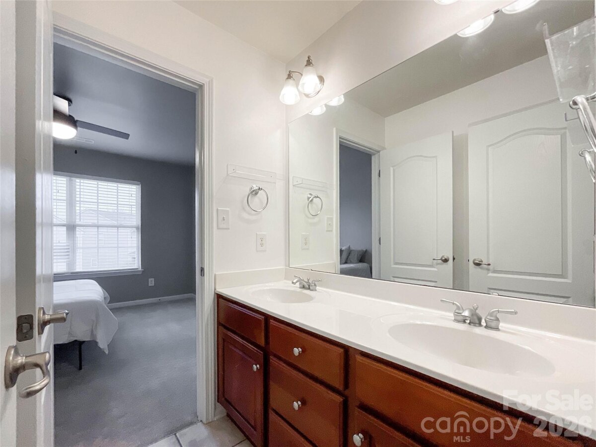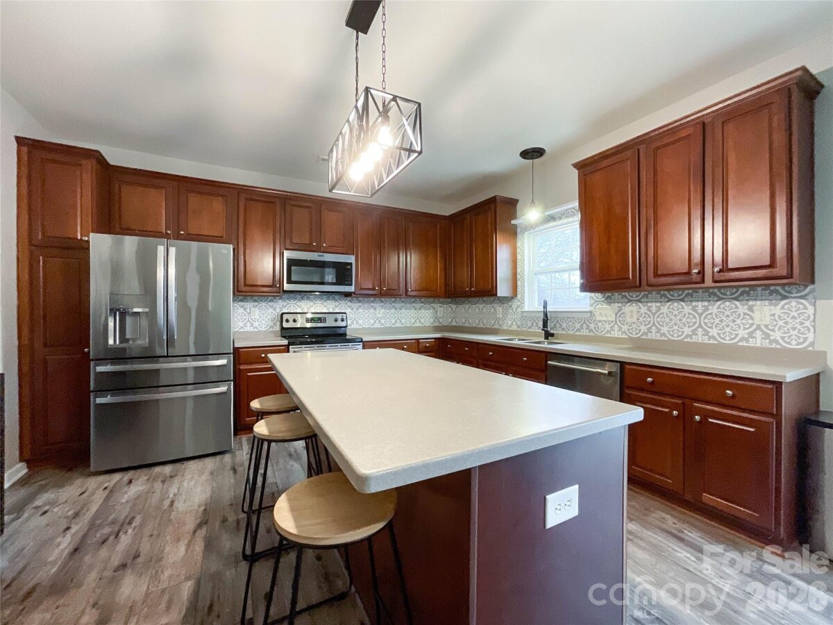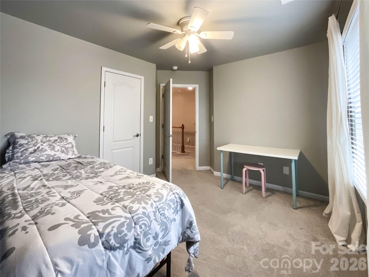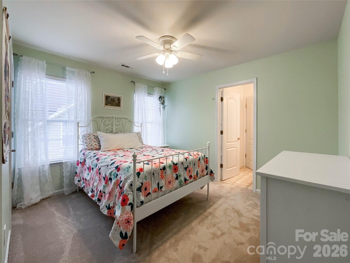 This beautiful two-level home welcomes you with an open front living room or office space that leads into a spacious dining room featuring a tray ceiling. The layout continues into a generous kitchen complete with an island, Corian countertops, and stainless steel appliances. The kitchen opens seamlessly to the breakfast area and great room, highlighted by a cozy gas fireplace. A convenient main-level laundry room adds everyday functionality. Upstairs offers plenty of space for both everyday living and work-from-home needs, with five bedrooms and three full bathrooms. The primary suite features a tray ceiling, two walk-in closets, and an ensuite bath with a garden tub, separate shower, and dual vanity. Two secondary bedrooms share a Jack-and-Jill bath, while the fifth bedroom—complete with a closet—can easily serve as a bonus room, home office, or playroom. Located in a community with great amenities like a pool and playground, and just minutes from I-485 and shopping, this home is ideally situated in the fast-growing Stallings area