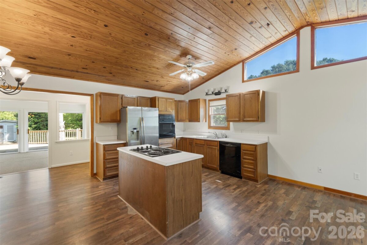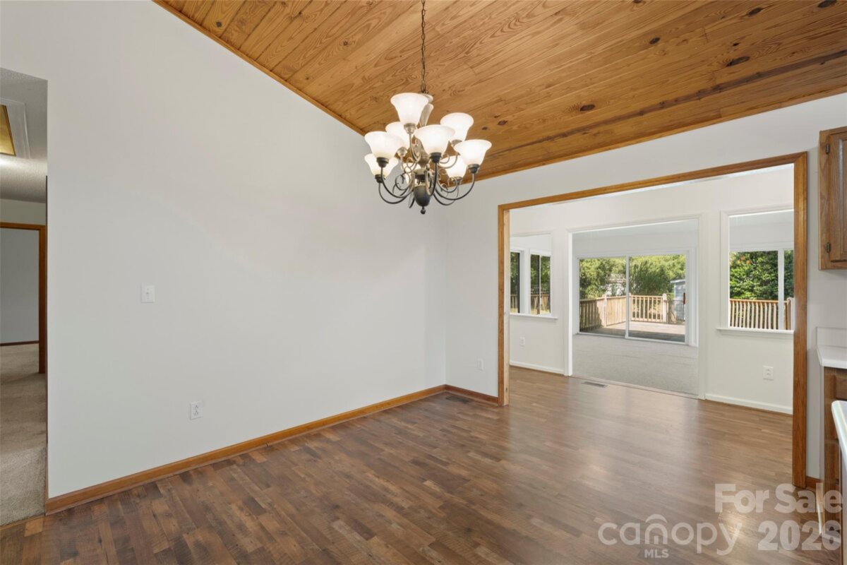 Welcome home to this charming 3-bedroom, 2-bath ranch in Denver's beloved Country Valley community! The moment you walk through the door, soaring vaulted ceilings finished in rich, warm hardwood stop you in your tracks — a dramatic architectural statement rarely found at this price point. Hardwood floors flow throughout, complemented by fresh interior paint and updated bathroom flooring, giving the home a clean, elevated feel. The enclosed sunroom with new sliding doors is your year-round retreat — morning coffee, evening wine, or weekend entertaining without the heat or pollen. Step outside to a large front porch made for rocking chairs, and an expansive back porch overlooking a fully fenced backyard perfect for pets, play, and gatherings. Located minutes from Lake Norman, shopping, dining, and Lincoln County schools. Sold as-is — inspections welcome. Priced to reflect condition and opportunity, with room to add your personal touch. Buyer to verify all information including permits. This one has the bones, the charm, and the location — come see it!