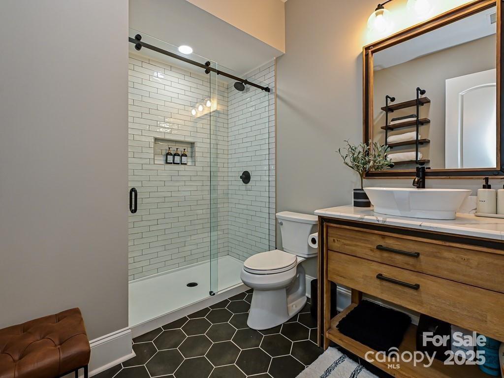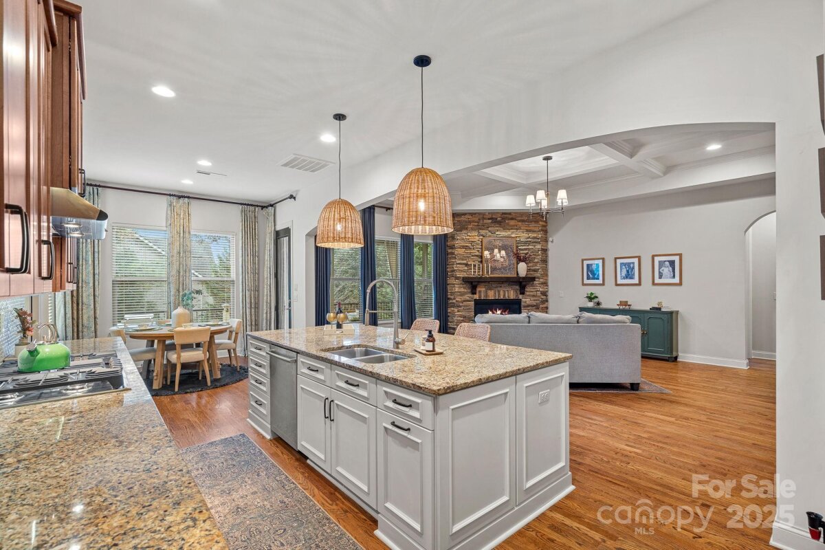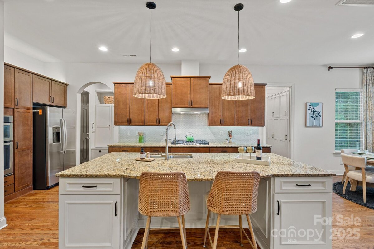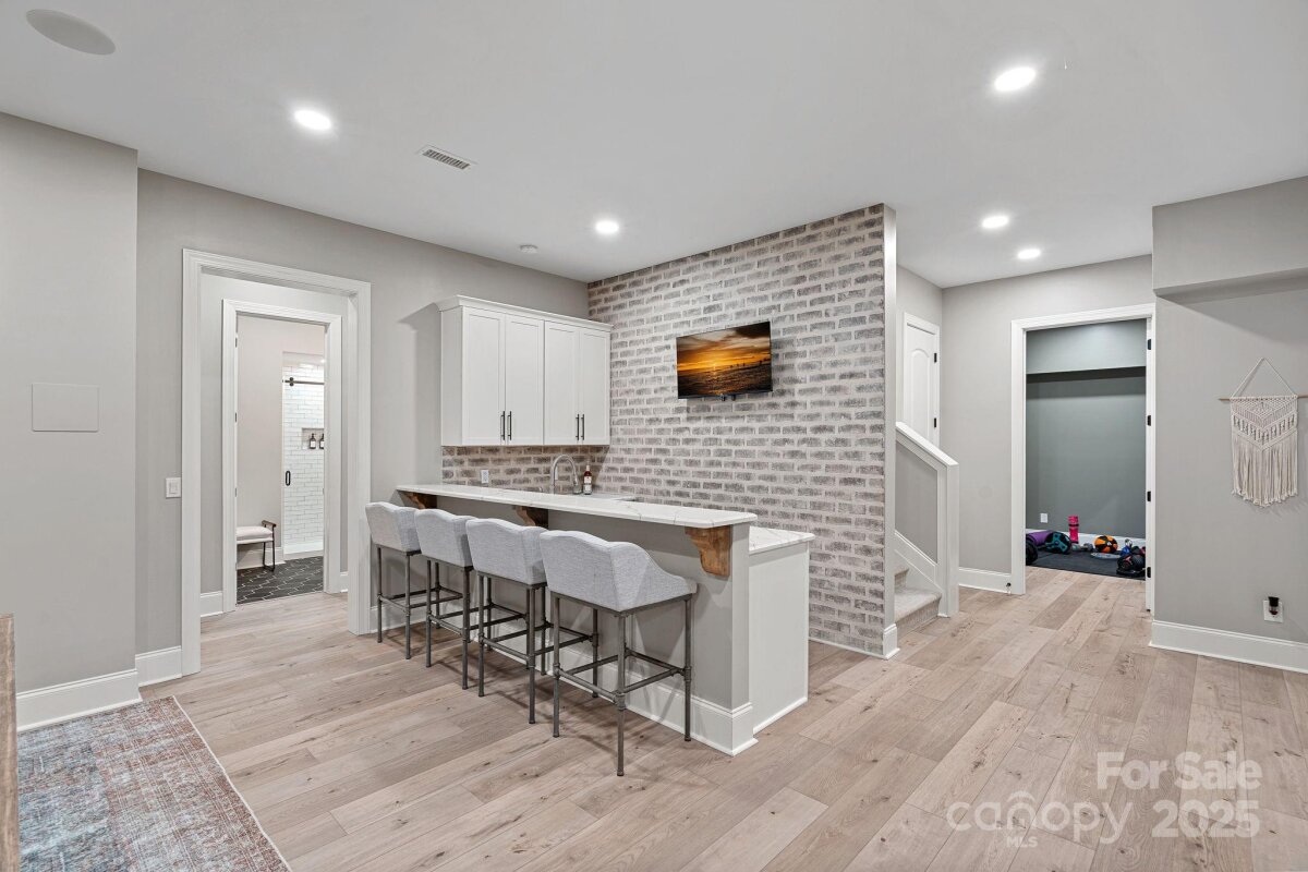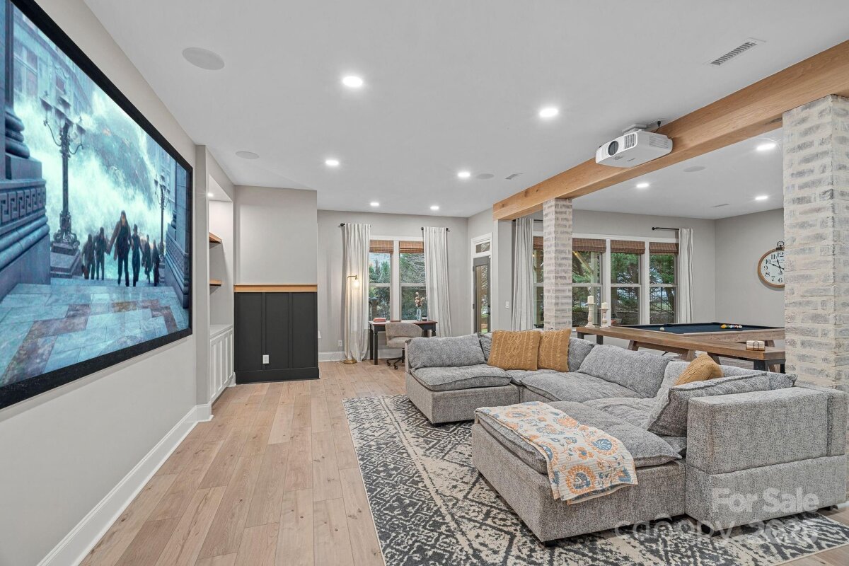 Welcome to 2009 Barber Rock Blvd, a refined luxury residence perfectly positioned in highly coveted northern Indian Land, in one of the most sought after neighborhoods on the state line—offering exceptional convenience with a 6-minute drive to Ballantyne while enjoying the serenity of a premier community. This expansive home showcases over 5,000 sq ft, thoughtfully designed with architectural elegance and upgraded finishes throughout. From the moment you enter, you’ll notice the soaring ceilings, tall doorways, extensive crown moldings, and dramatic coffered ceilings that elevate each living space with timeless sophistication. The main living room is truly a showpiece, featuring a stunning stacked-stone fireplace, abundant natural light, and an open layout perfect for both everyday living and effortless entertaining. At the heart of the home is a gourmet kitchen with the essential brand-new chef's appliances, paired with a true luxury scullery—a second prep and storage area ideal for keeping counters clear, staging meals, entertaining seamlessly, and housing appliances that keep the main kitchen pristine. This rare feature makes the kitchen function like one found in a high-end custom estate, perfect for chefs and entertainers alike. Enjoy the comfort of a main-floor primary suite complete with a spacious layout, walk-in closet, and spa-inspired bath. The separation from upstairs bedrooms makes this ideal for multigenerational living, long-term comfort, and effortless daily flow. Daily living is enhanced by a beautifully designed mudroom and laundry suite. Custom cabinetry, a built-in drop zone, shiplap accents, patterned wallpaper, and upgraded counters transform these functional spaces into ones of beauty and efficiency—an organizational hub every busy household appreciates. Upstairs, the bedrooms are spacious and private, including a serene primary suite with spa-inspired finishes. The lower-level full bath echoes the home’s elevated design with a boutique-hotel aesthetic: a walk-in tile shower, frameless glass, matte-black fixtures, hexagon flooring, warm wood vanity, and a vessel sink. Perfect for guests or multigenerational living, it brings true luxury to everyday comfort. The fully finished walk-out basement is a remarkable extension of the home’s luxurious living space. Wide-open recreation areas, custom brickwork, and a full bar with seating create an unforgettable setting for gatherings, movie nights, and game-day celebrations. Multiple zones offer space for a theatre room, home gym, private office, or safe-room conversion. A spacious bedroom, full bath, walk-out storage, and even a whimsical Harry Potter-style cupboard under the stairs adds charm and exceptional flexibility. Outdoor living is equally inviting. Step outside to the private, tree-lined expansive screened-in porch that lives like an outdoor living room with vaulted ceilings, a ceiling fan, and room for both lounging and dining, this porch offers year-round enjoyment and becomes a true extension of the home’s living spaces. Upper deck—ideal for grilling, outdoor dining, or morning coffee. Surrounded by mature evergreens, it feels peaceful and secluded while offering ample space for multiple seating or cooking areas. this porch offers year-round enjoyment and becomes a true extension of the home’s living spaces. In addition, you'll have even more options for relaxation on the covered porch that is a walk out from the basement level! This is THE home for the outdoor enthusiast. Situated in a community offering amenities such as a pool, playground, and walking trails, this home provides a rare blend of luxury, space, convenience, and lifestyle—all just minutes from Ballantyne’s premier shopping, dining, and corporate centers. 2009 Barber Rock Blvd is a standout property for buyers seeking upscale finishes, thoughtful design, and an unbeatable location.