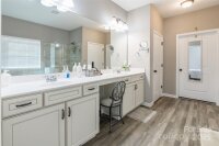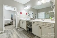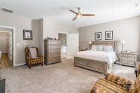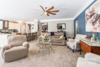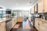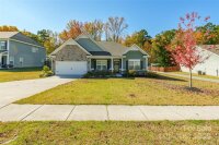Stunning one level ranch style home with a spacious floor plan and modern updates will be your favorite. 9' ceilings & lots of natural light give the feeling of openness and space. Perfectly located near the culdesac with scenic walking trails. When you enter from the front porch, you will find yourself ready to gather in the large kitchen which opens to the family room. The kitchen features a large island, pantry, freestanding hood over gas range, and tile backsplash and breakfast eating area. Choose if you want to use the dining area for extra dining or currently used as an office. Each large bedroom has its own bathroom, and the primary suite includes a luxury primary bathroom with tile shower, large soaking tub, & walk in closet with custom shelving. Drop zone & laundry room gives convenience from the garage. Doesn't stop there, the back yard is where you will want to be all four seasons. Large flat yard & fenced for privacy in the back with the extended patio and gazebo to relax and entertain. Additional features of the home include leaf gutter protection installed in 2021 & whole home water filtration system. Murphy bed in the front bedroom conveys. Close to the neighborhood clubhouse and pool, playground, and neighborhood offers sidewalks & streetlights and walking trails.