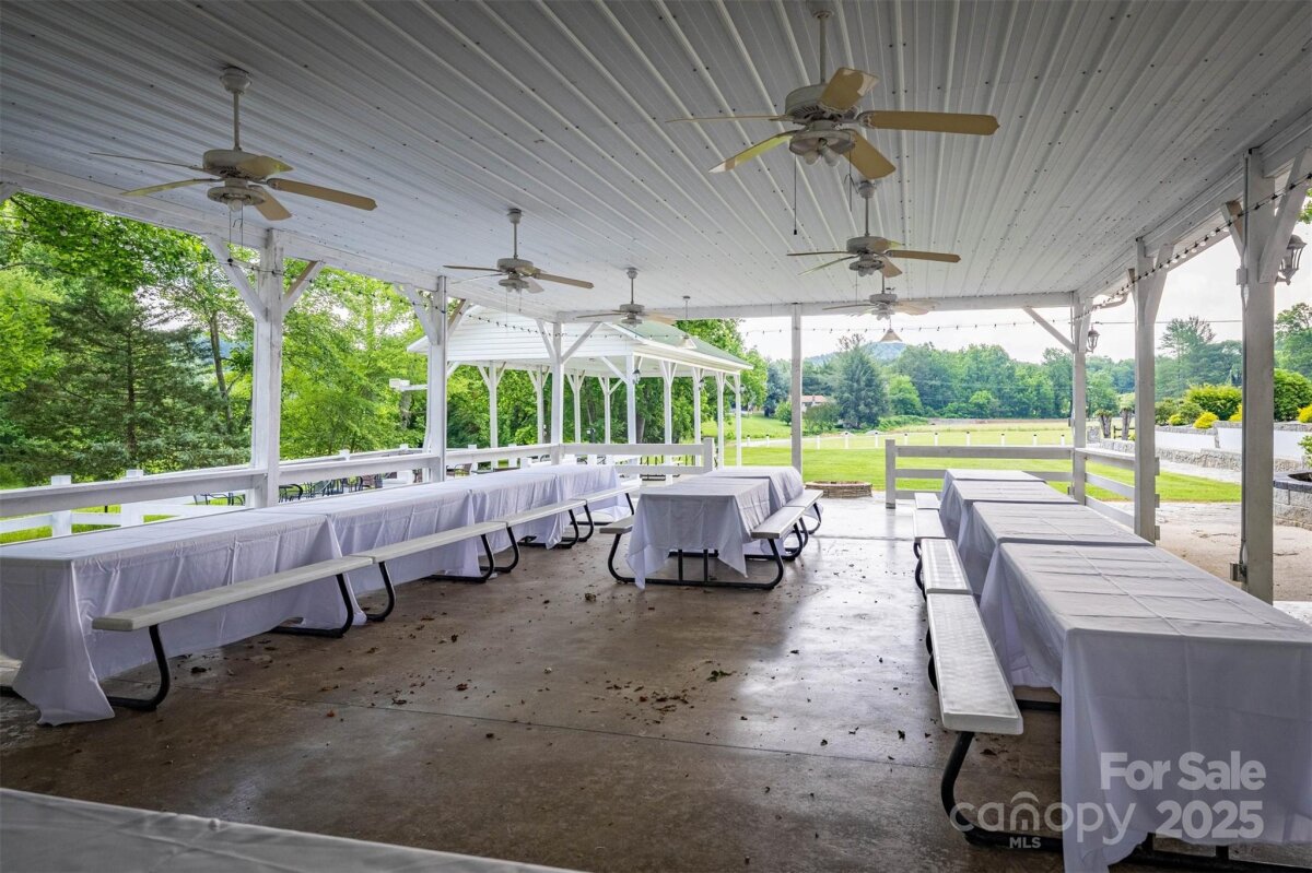 The Court Yard at Little Acres, a luxury estate nestled in the foothills of WNC. This extraordinary property doubles as a renowned wedding venue perfect for your dream lifestyle or business venture. The main floor has 3 bedrooms, 3 bathrooms, 2 dining rooms, an office, 2 dens, sunroom & a climate controlled 3-car garage. With 2 kitchens and 2 laundry rooms, this home provides ultimate convenience for entertaining guests. Above the garage- a charming studio apartment with its own entrance—perfect for rental income. The lower level offers a completely separate living space with 2 bedrooms, 2 bathrooms, den, 3 bonus rooms, wet bar, full kitchen & laundry room! The property's true magic extends beyond its walls - Imagine strolling alongside the creek, pausing by the waterfall, or enjoying gatherings under 3 pavilions. Hosting made easy with the bandstand, wet bar, restrooms & commercial kitchen. Some might say it's not just a property-it's a ready-made paradise waiting for its next chapter