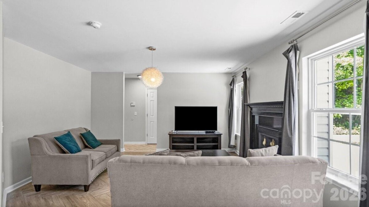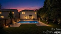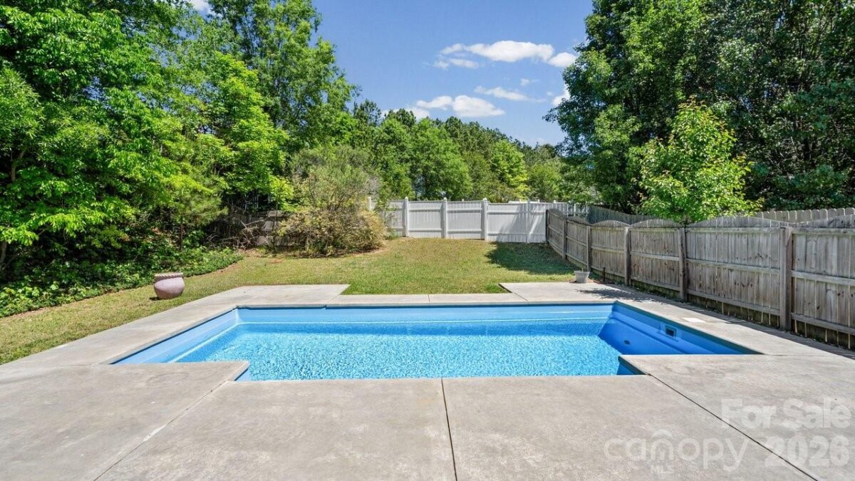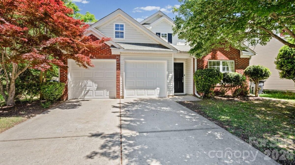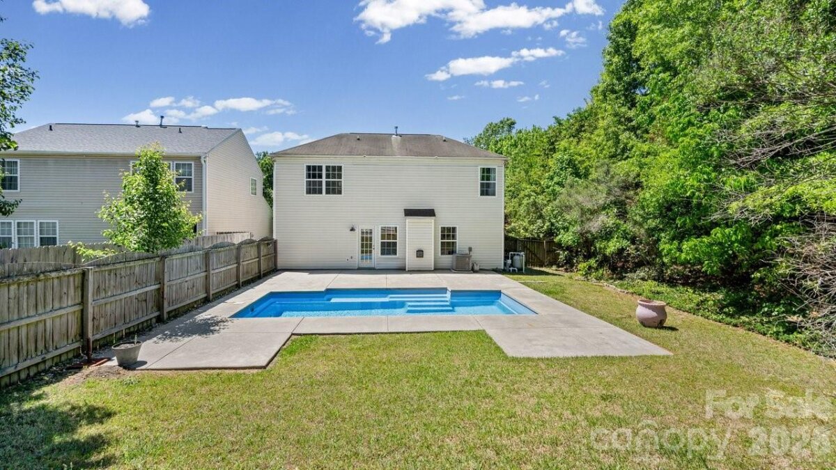 Welcome home to Back Creek Chase! This beautifully updated home sits on a private cul-de-sac lot and is perfectly positioned minutes from I-485, the Lynx Blue Line, Concord Mills, and PNC Music Pavilion. The main level features durable tile flooring and a semi-open floor plan designed for effortless flow. Bright and airy, the front sitting room with elegant chair railing leads into a spacious dining area perfect for entertaining. The kitchen boasts matching black appliances, ample storage, and a raised breakfast bar overlooking the cozy living room with a gas fireplace. Upstairs, you’ll find fresh paint, unique fixtures, and stylish pre-finished laminate wood flooring. The primary suite is a true retreat with tile accents and a dual-sink vanity. The outdoor space is a private oasis! The fenced backyard is lined with mature trees and features a low-maintenance pool with a brand-new pump—perfect for summer relaxation. Additional highlights include a two-car garage with brand-new doors. This move-in-ready gem offers the perfect blend of comfort and convenience!