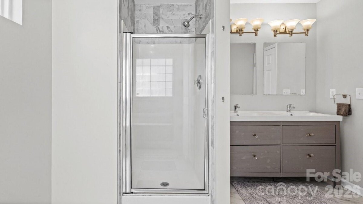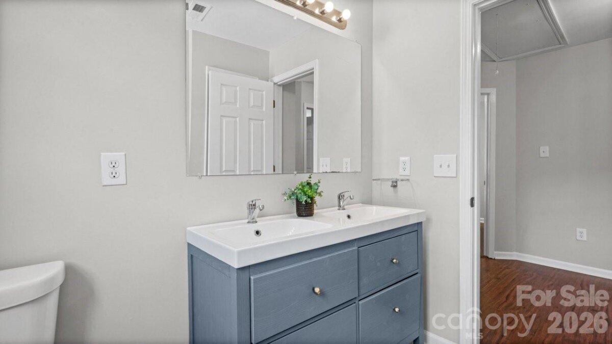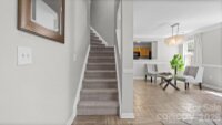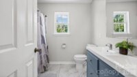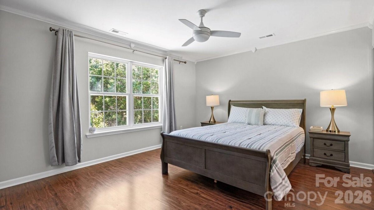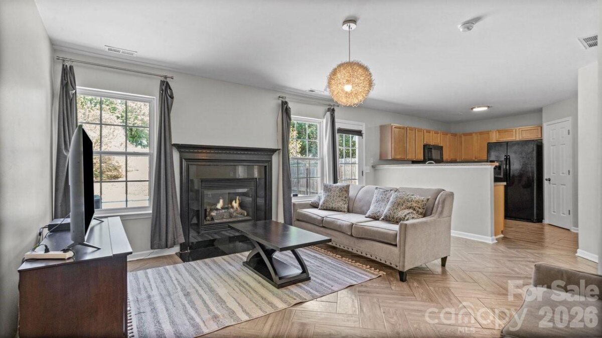 Welcome home to Back Creek Chase! This beautifully updated home sits on a private cul-de-sac lot and is perfectly positioned minutes from I-485, the Lynx Blue Line, Concord Mills, and PNC Music Pavilion. The main level features durable tile flooring and a semi-open floor plan designed for effortless flow. Bright and airy, the front sitting room with elegant chair railing leads into a spacious dining area perfect for entertaining. The kitchen boasts matching black appliances, ample storage, and a raised breakfast bar overlooking the cozy living room with a gas fireplace. Upstairs, you’ll find fresh paint, unique fixtures, and stylish pre-finished laminate wood flooring. The primary suite is a true retreat with tile accents and a dual-sink vanity. The outdoor space is a private oasis! The fenced backyard is lined with mature trees and features a low-maintenance pool with a brand-new pump—perfect for summer relaxation. Additional highlights include a two-car garage with brand-new doors. This move-in-ready gem offers the perfect blend of comfort and convenience!